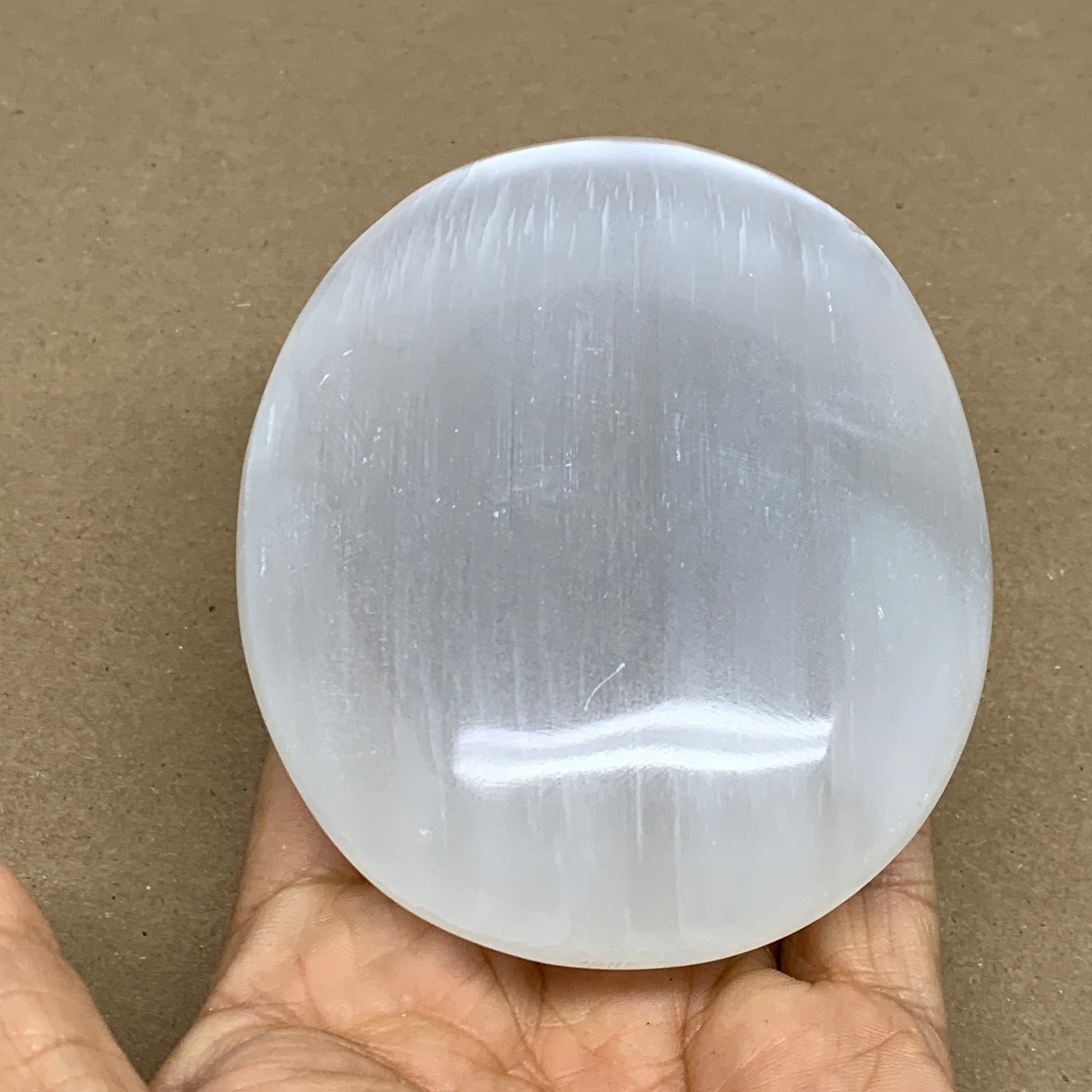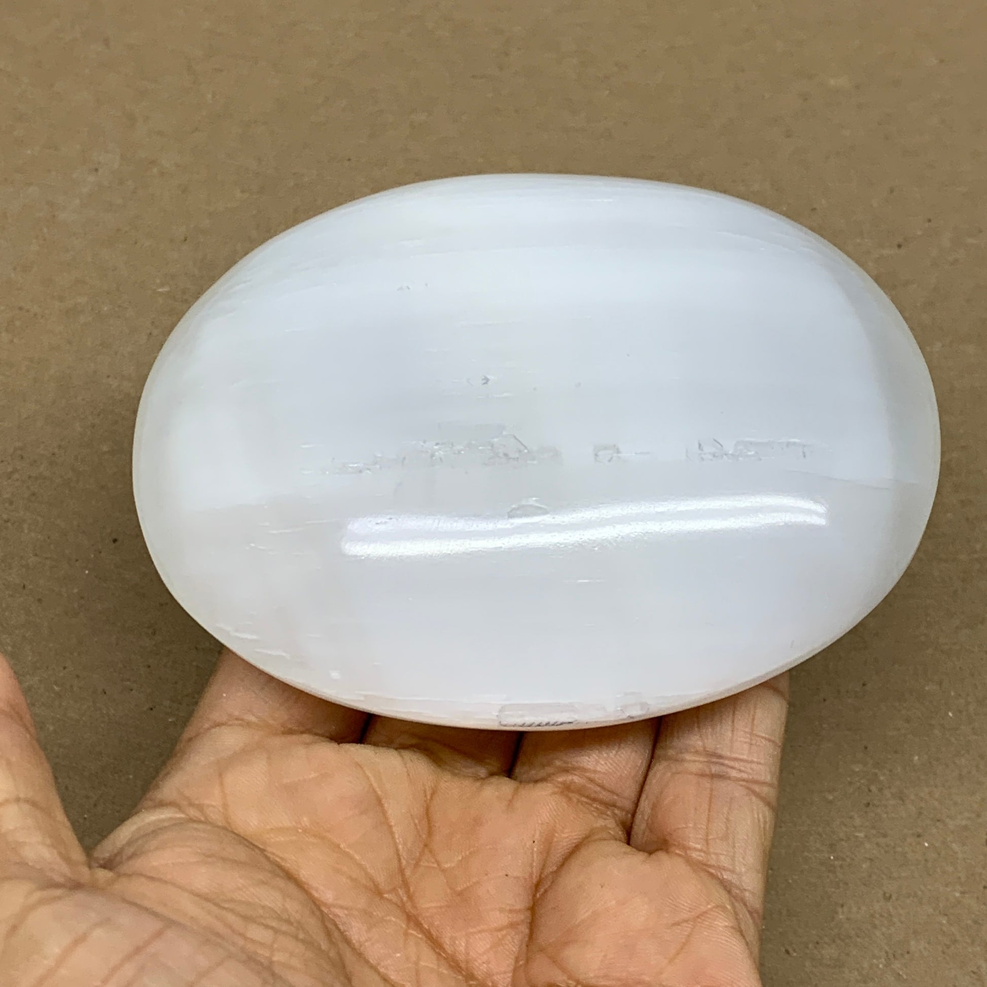 0.7 lbs, 4"x3.2"x1.3", White Selenite Palmstone Crystal Pillow Reiki, B36143