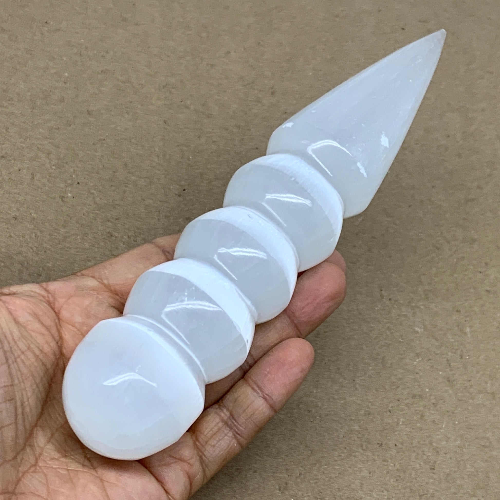 0.70 1lbs.,7.5"x1.5", Large White Selenite Spiral Wand Crystal Point, B36585
