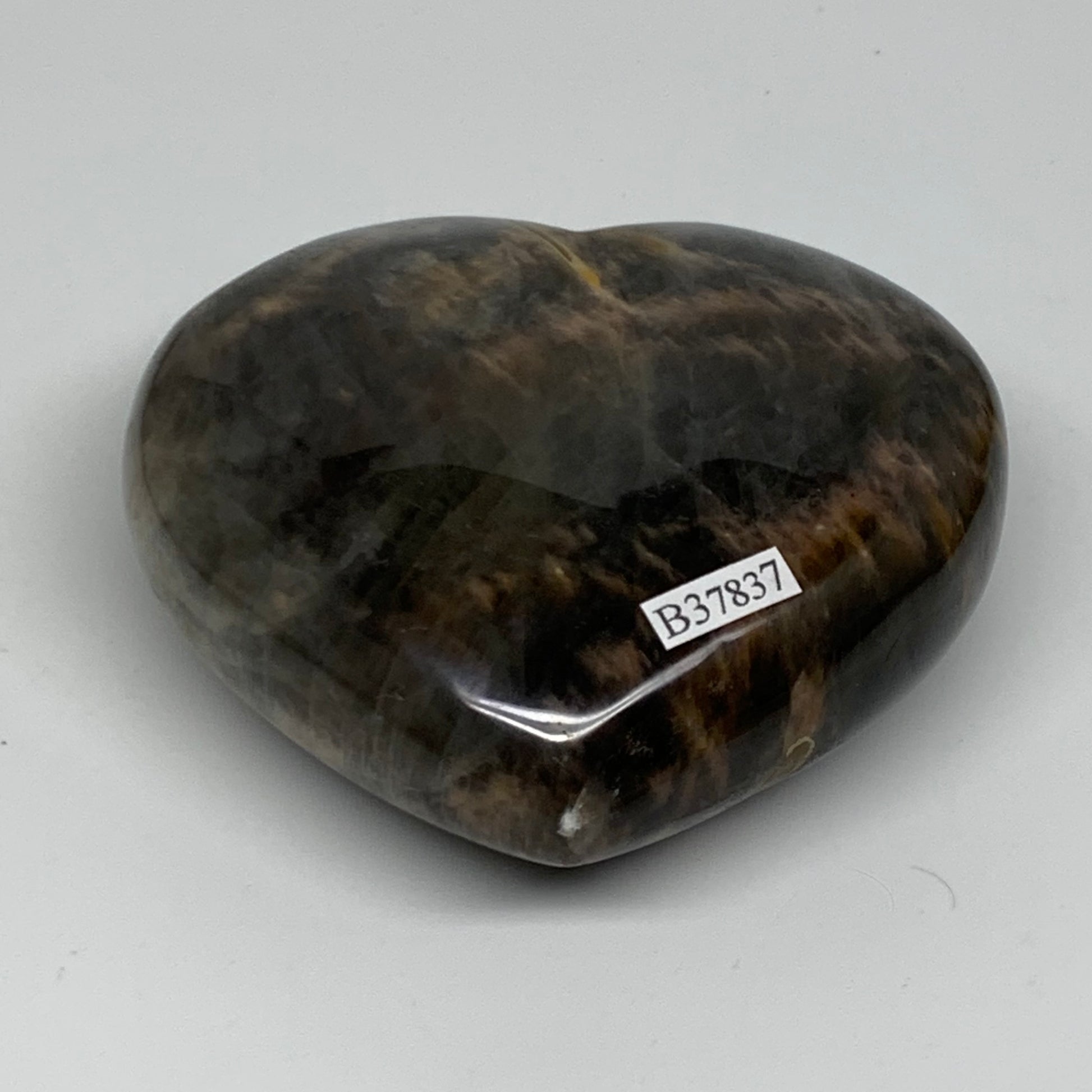 0.70 lbs, 3.1"x3.3"x1.3", Black Moonstone Heart Polished Crystal Decor, B37837