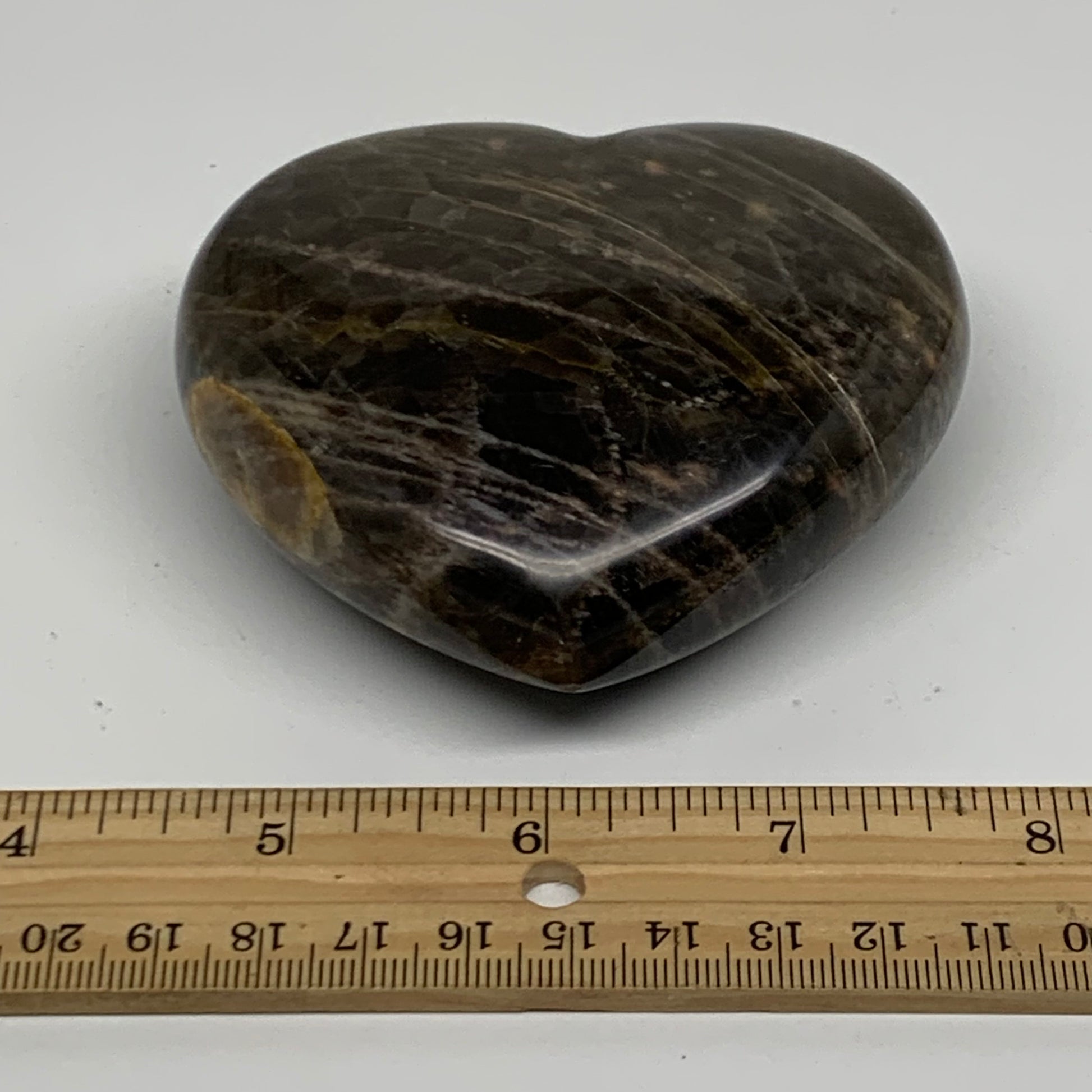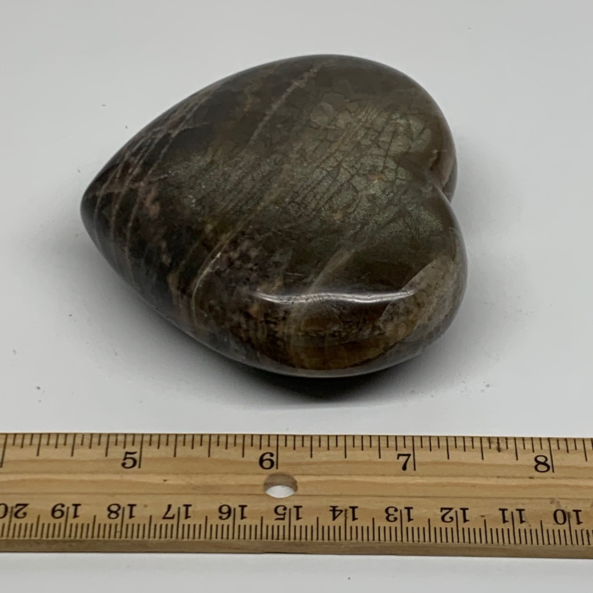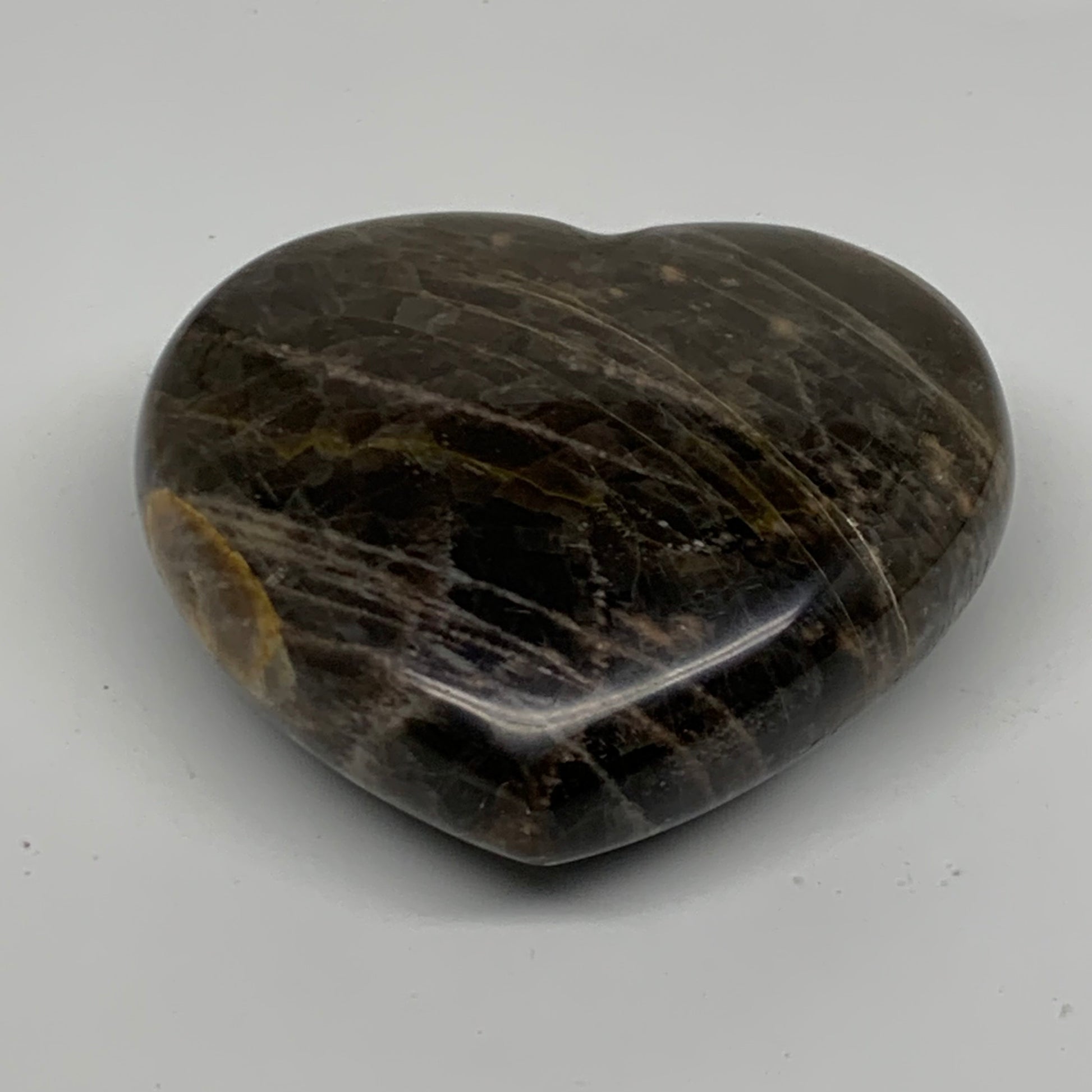 0.70 lbs, 3.1"x3.4"x1.3", Black Moonstone Heart Polished Crystal Decor, B37898
