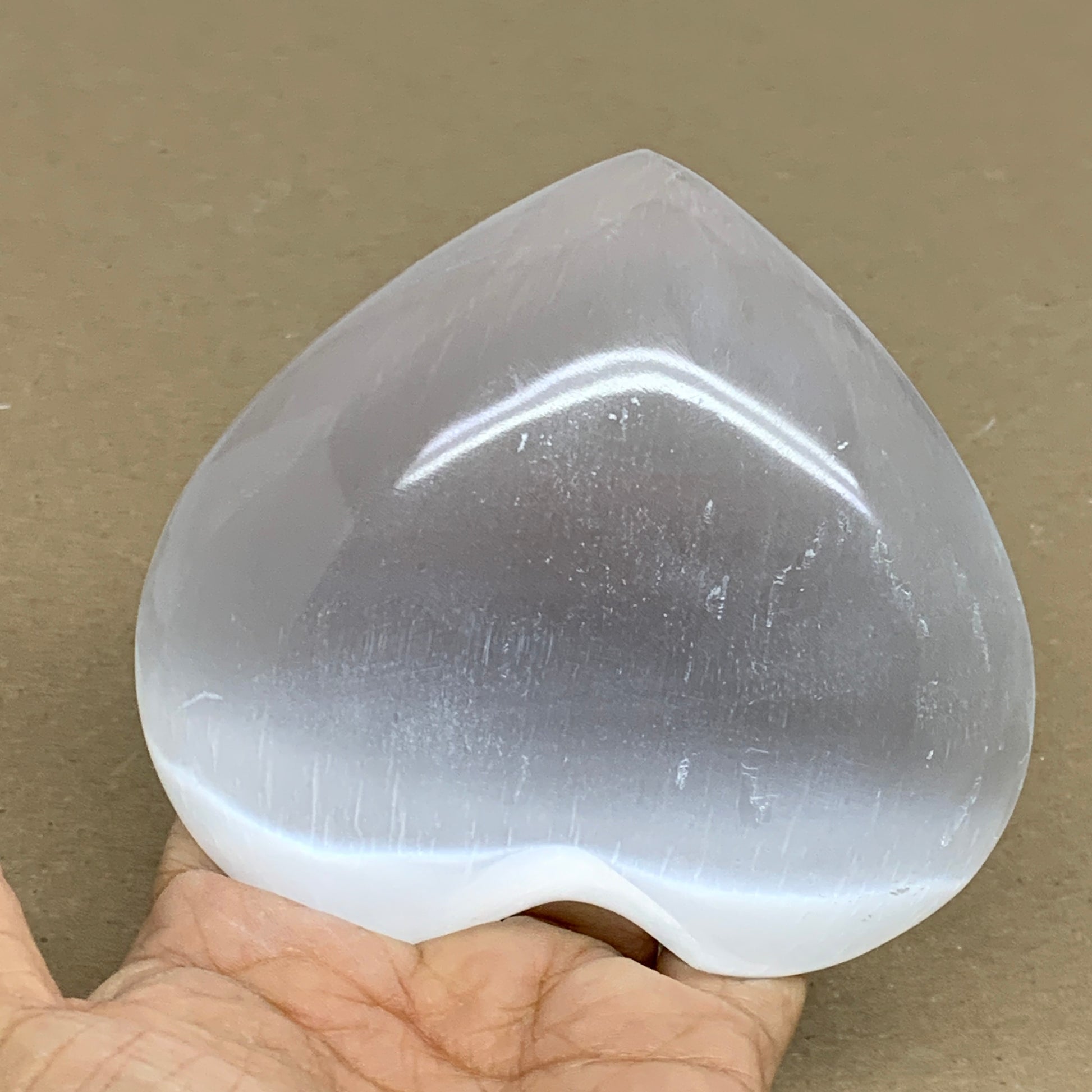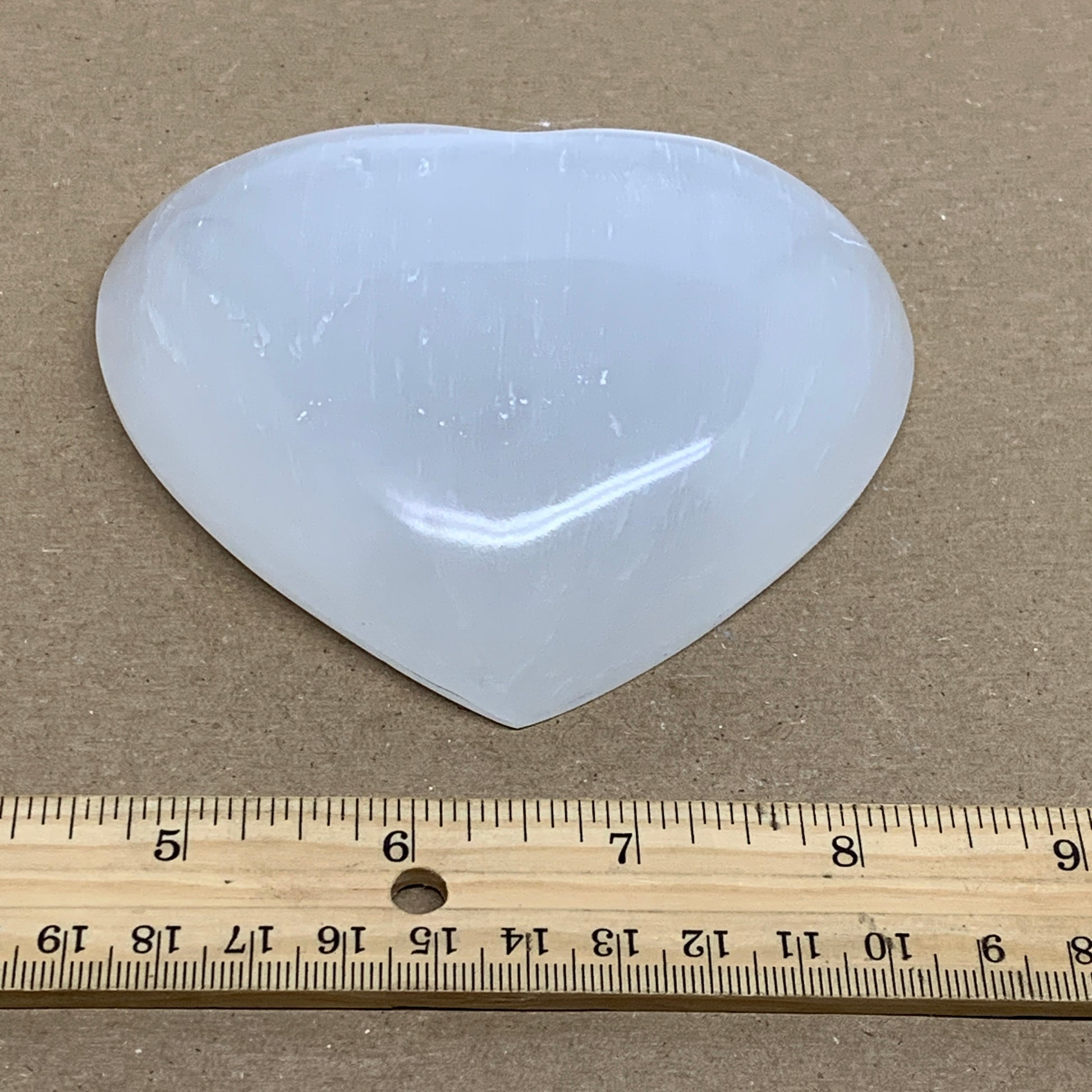 0.71 lbs, 4"x4.2"x1", Selenite Half Puffy Heart Crystals, Satin Spar, B36261