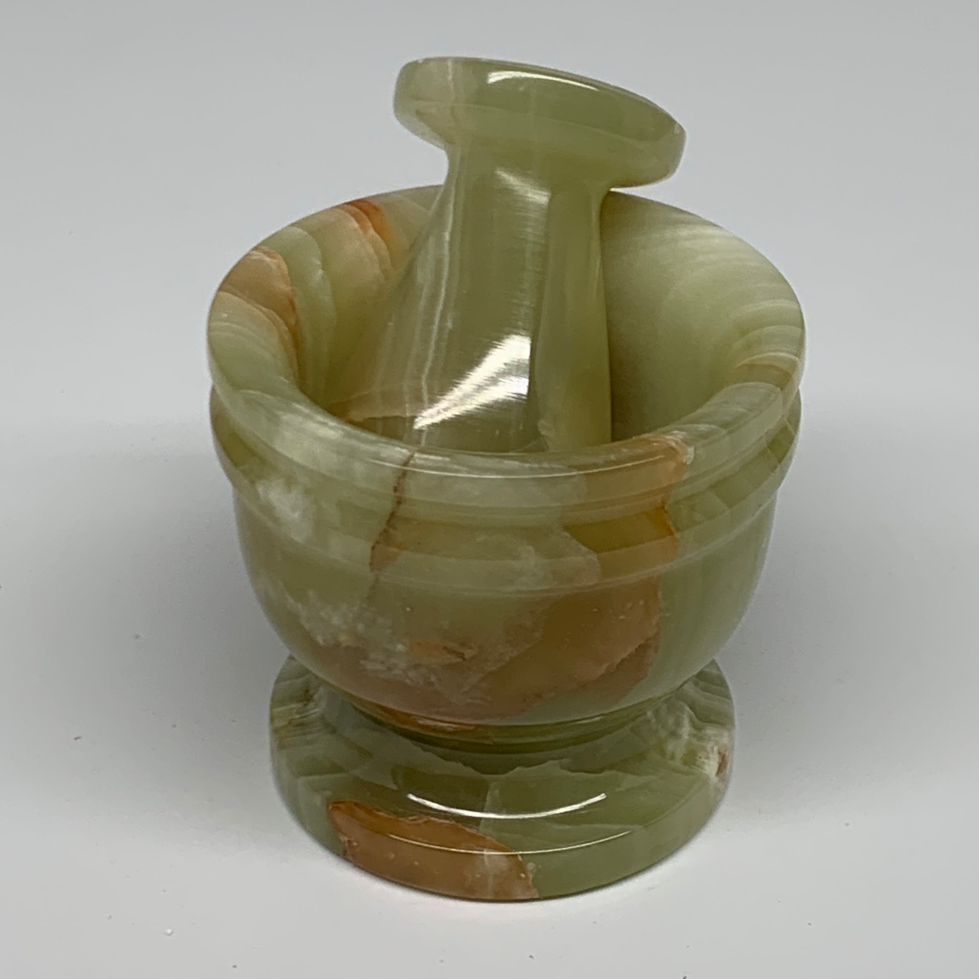 0.72 lbs, 2.3"x2.5", Natural Green Onyx Crystal Pestle and Mortar Handmade, B32581