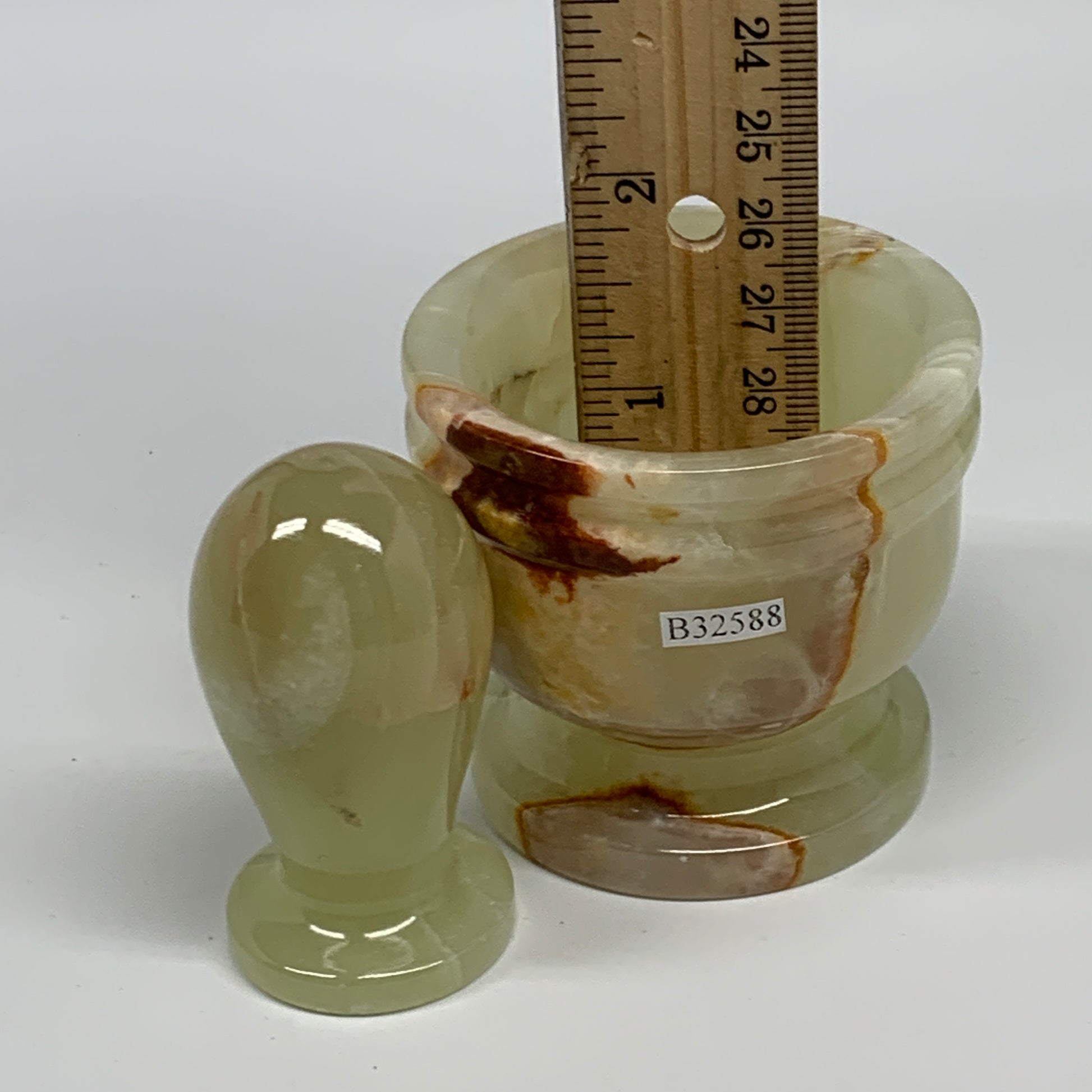 0.72 lbs, 2.3"x2.5", Natural Green Onyx Crystal Pestle and Mortar Handmade, B32588