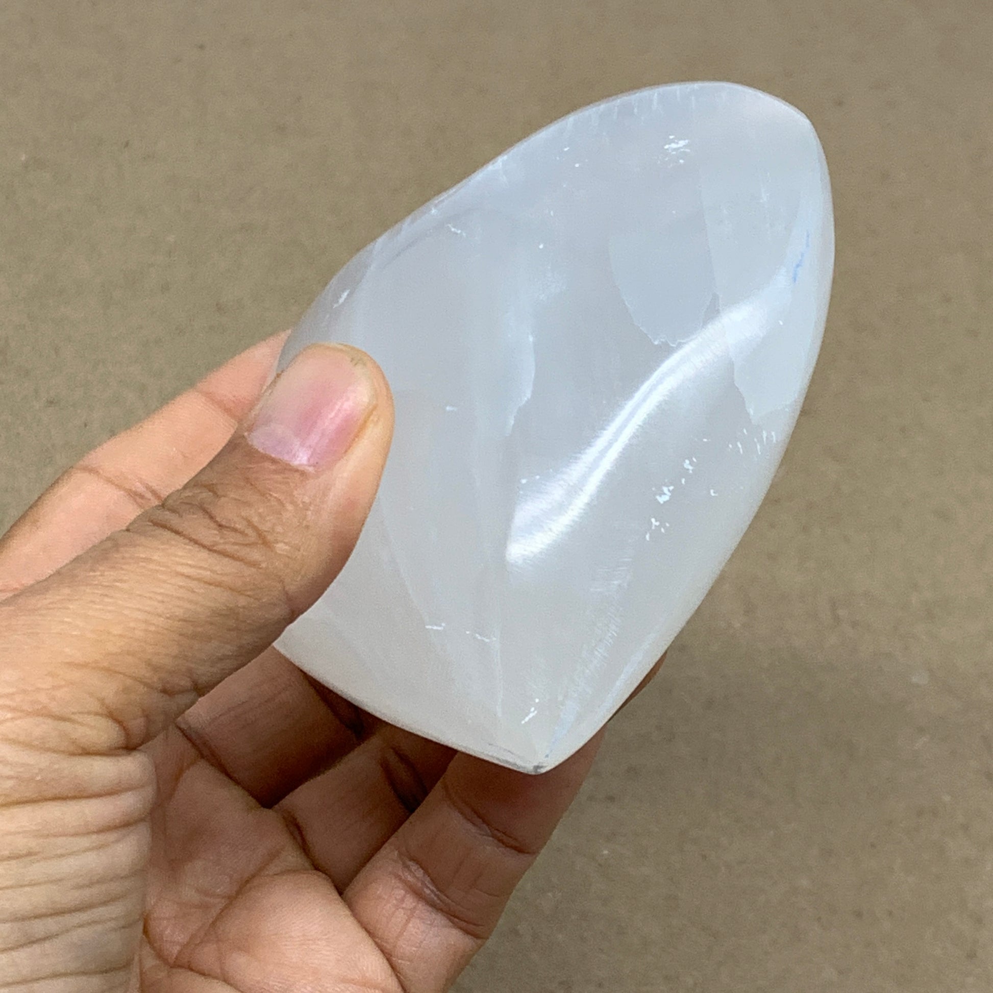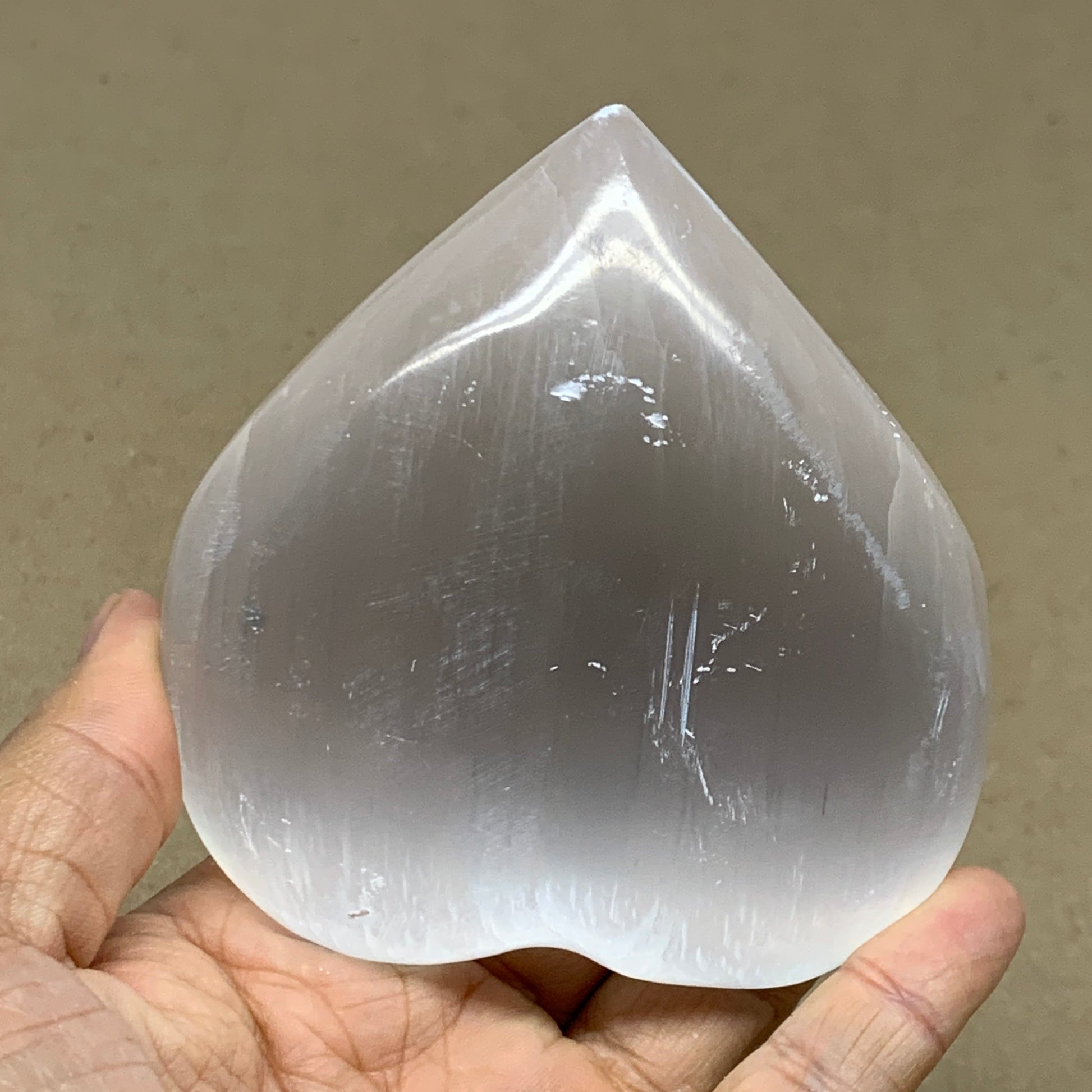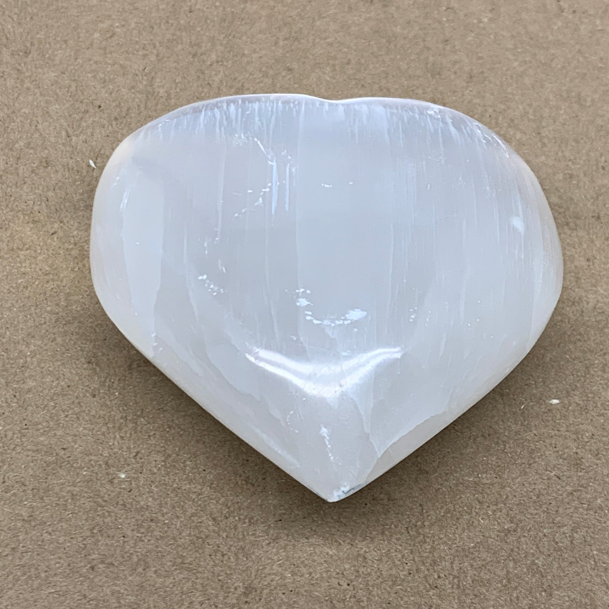 0.74 lbs, 3.7"x3.4"x1.5", Selenite Half Puffy Heart Crystals, Satin Spar, B36572