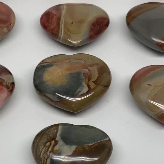 2.54 lbs, 2"-2.4", 10pcs, Polychrome Jasper Heart Polished Crystal, B38078