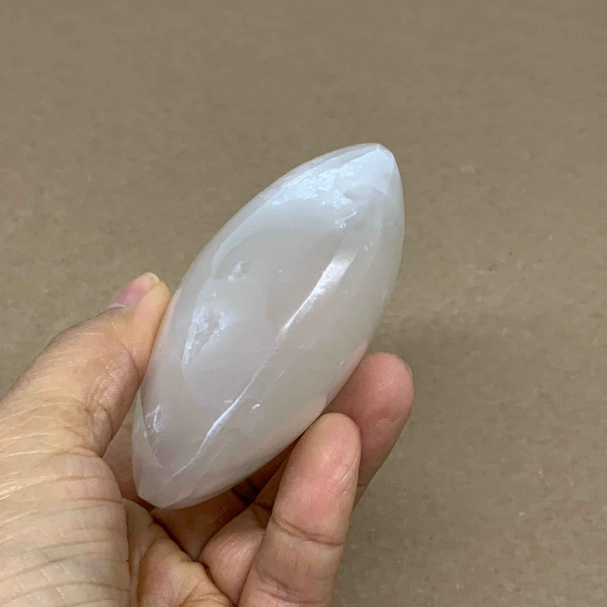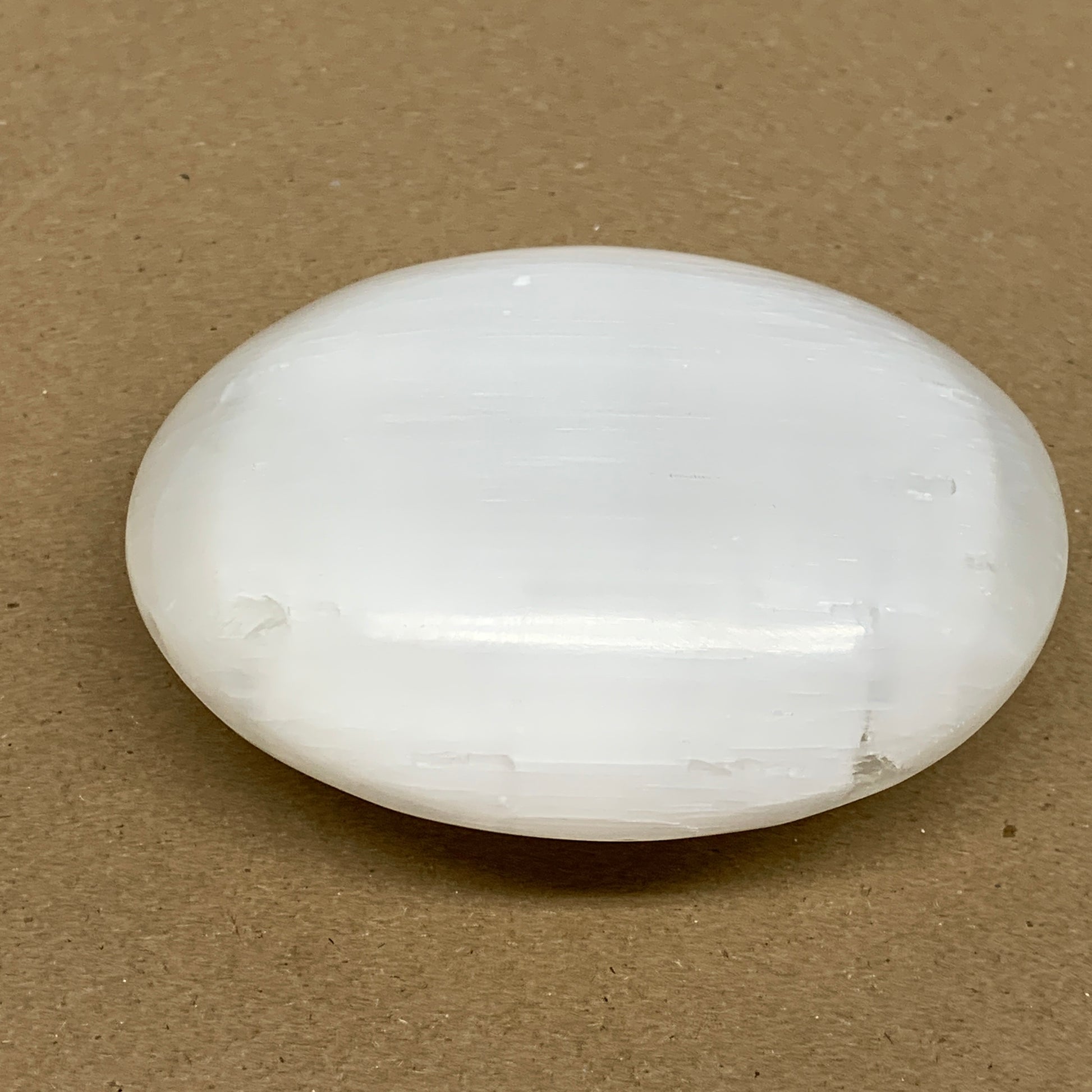 0.77 lbs, 3.9"x3.2"x1.3", White Selenite Palmstone Crystal Pillow Reiki, B36130