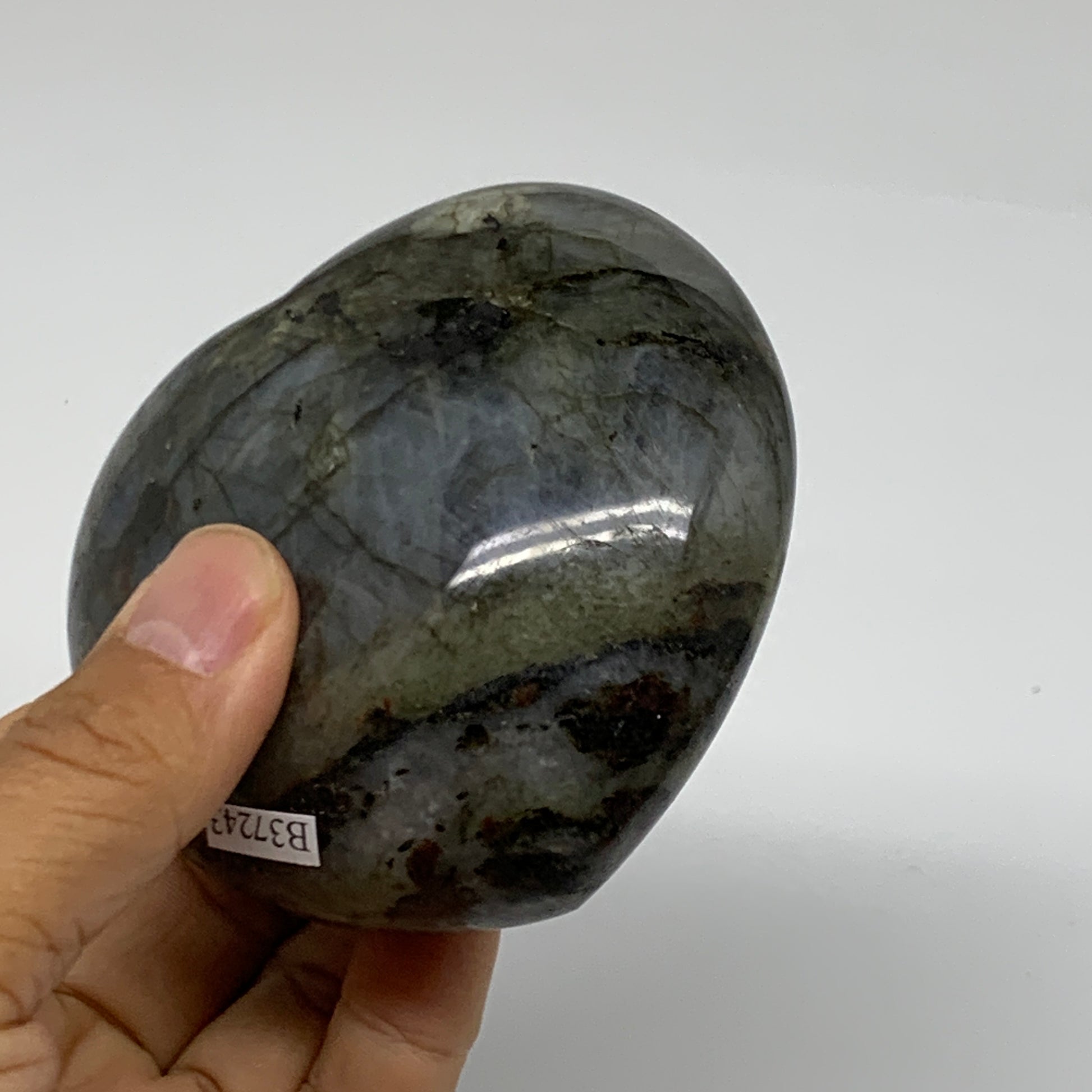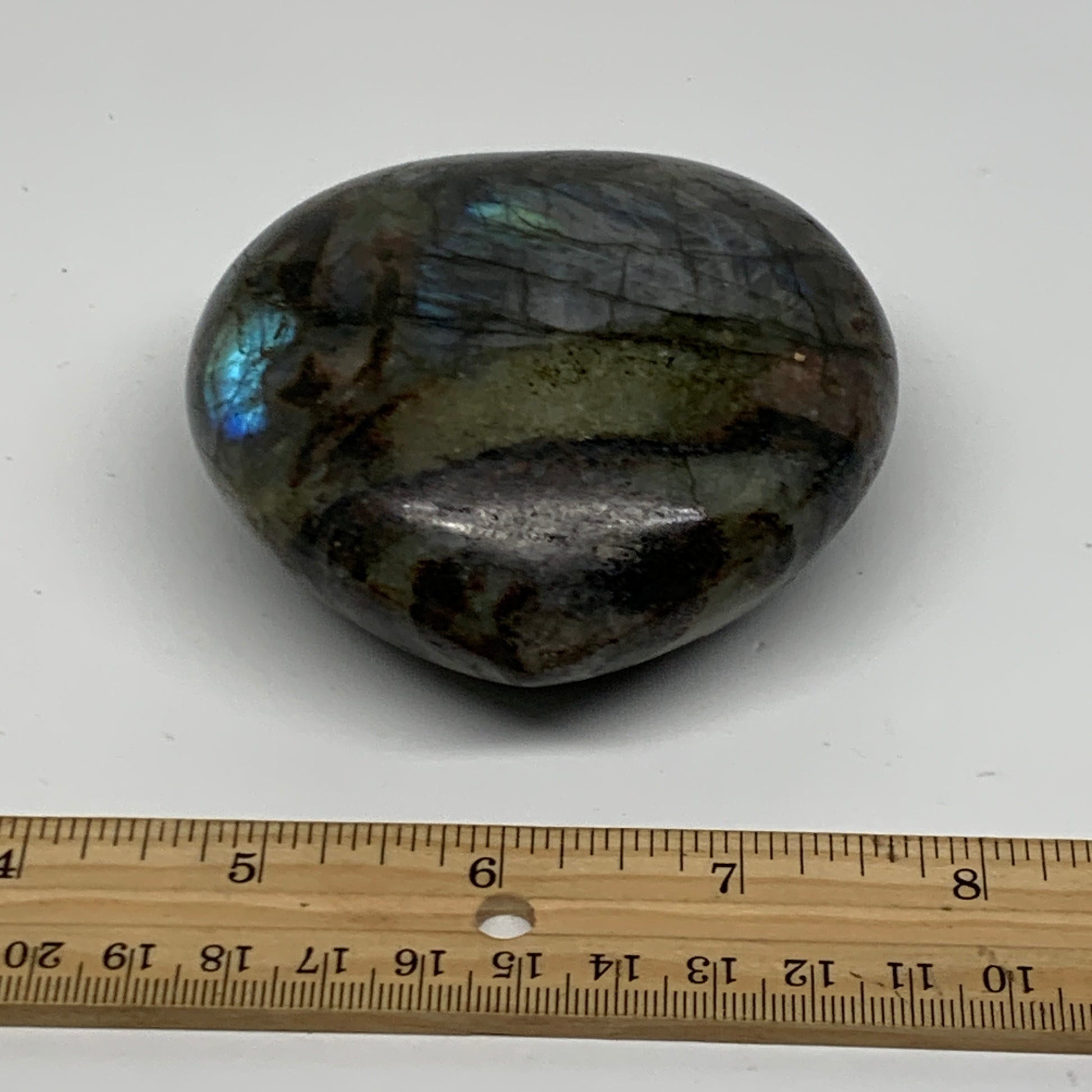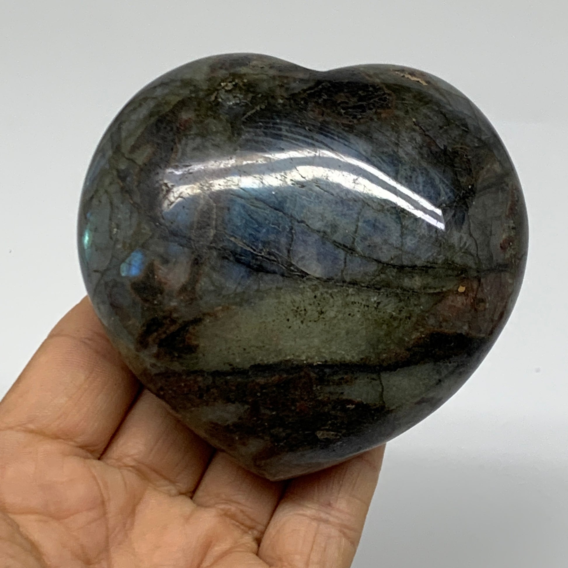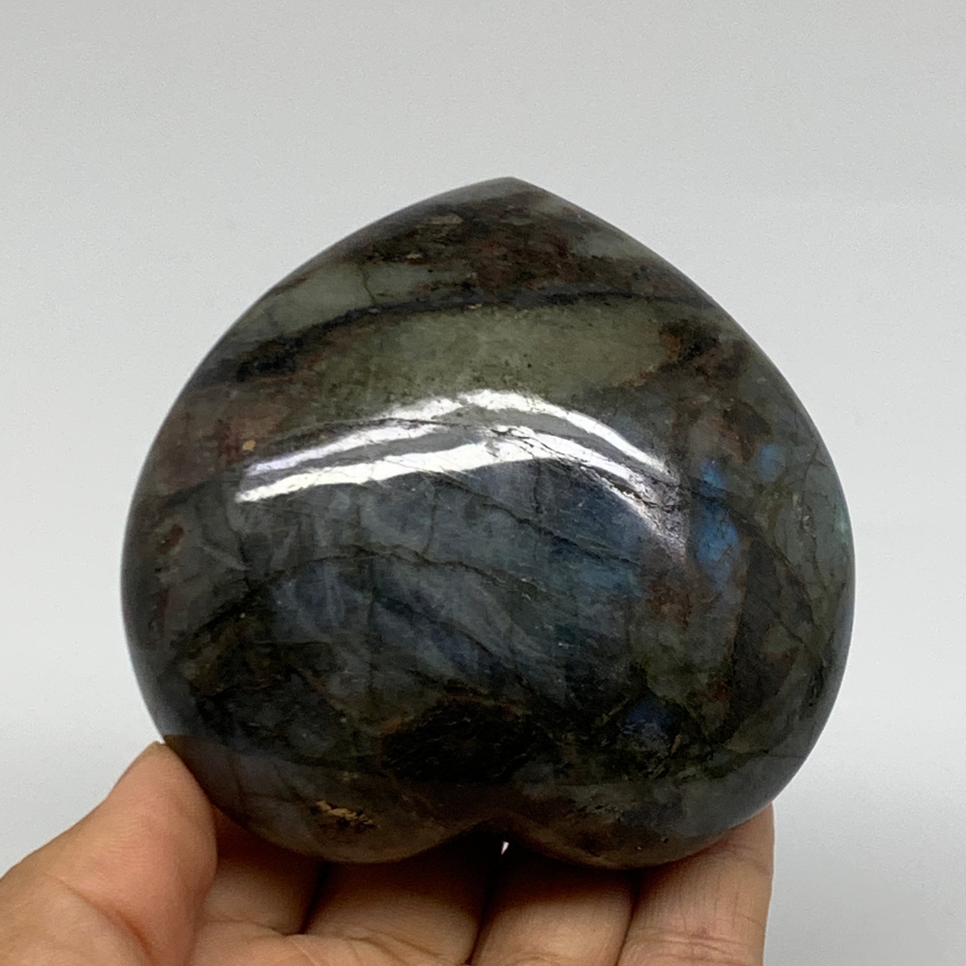 0.8 lbs, 3.1"x3.2"x1.5", Natural Labradorite Heart Polished Crystal, B37243