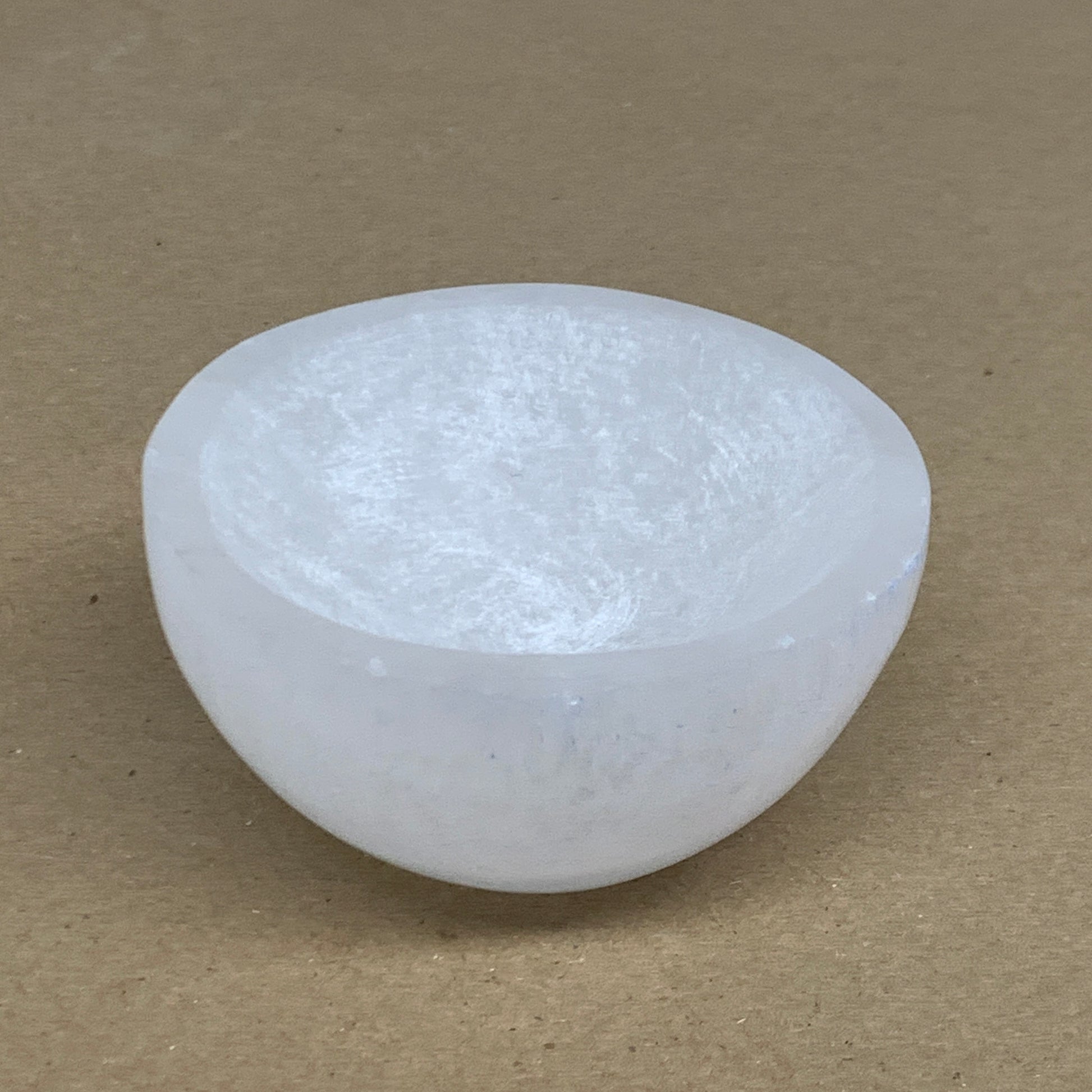 0.8 lbs, 3.3" Natural Round Selenite Bowl Crystals from Morocco, B35934