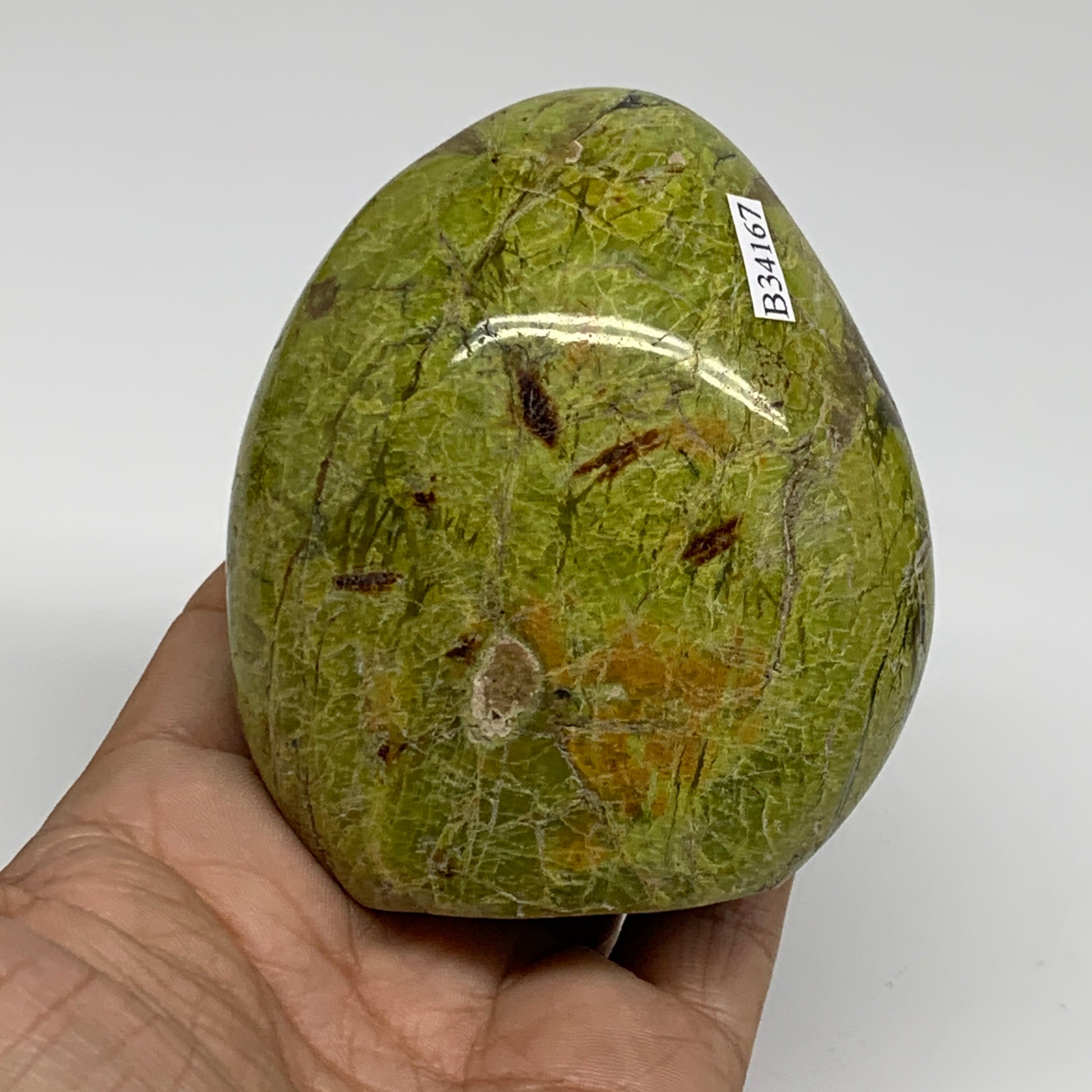 0.81 lbs, 3.2"x2.8"x.2", Green Opal Crystal Freeform Polished Gemstone, B34167