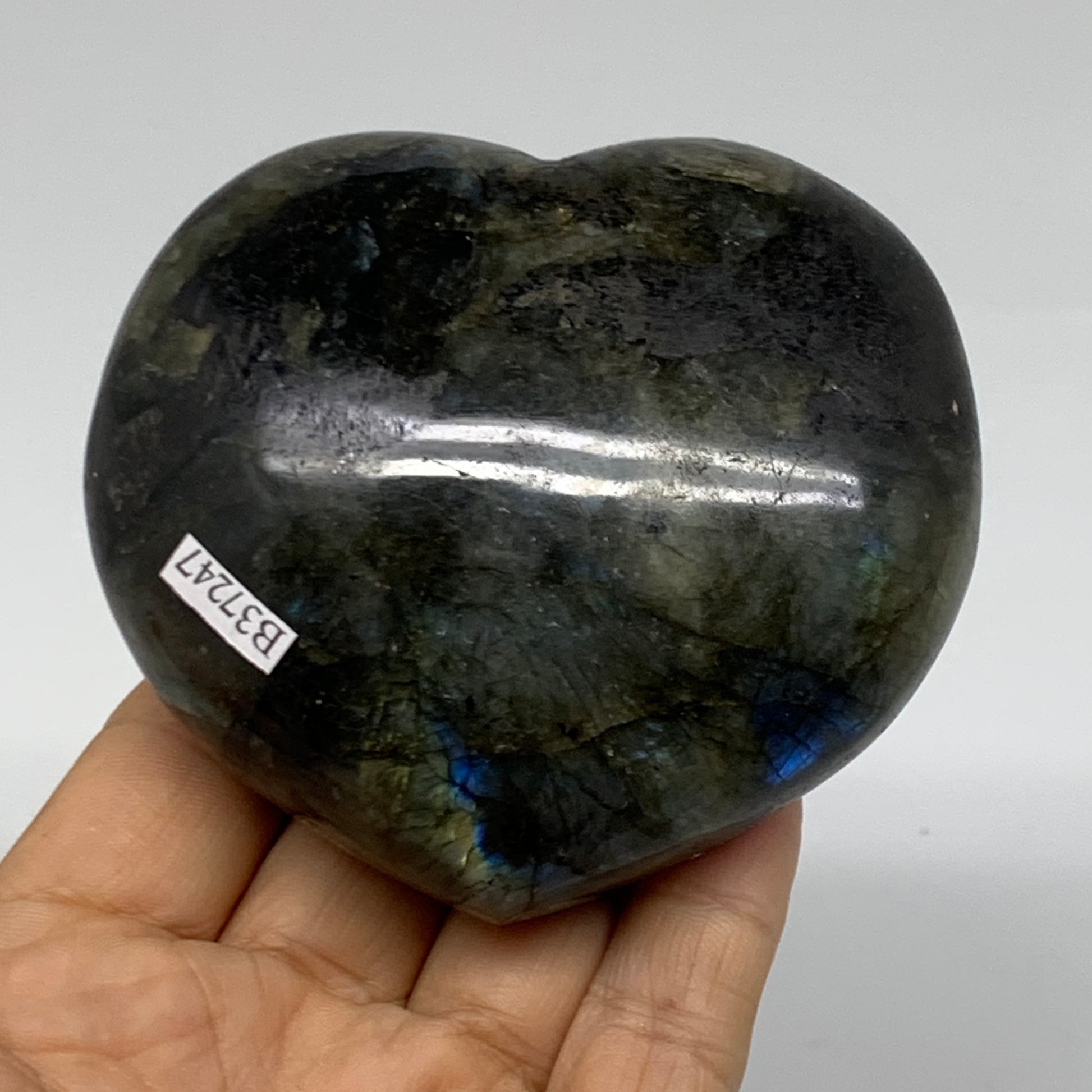 0.81 lbs, 3"x3.3"x1.5", Natural Labradorite Heart Polished Crystal, B37247