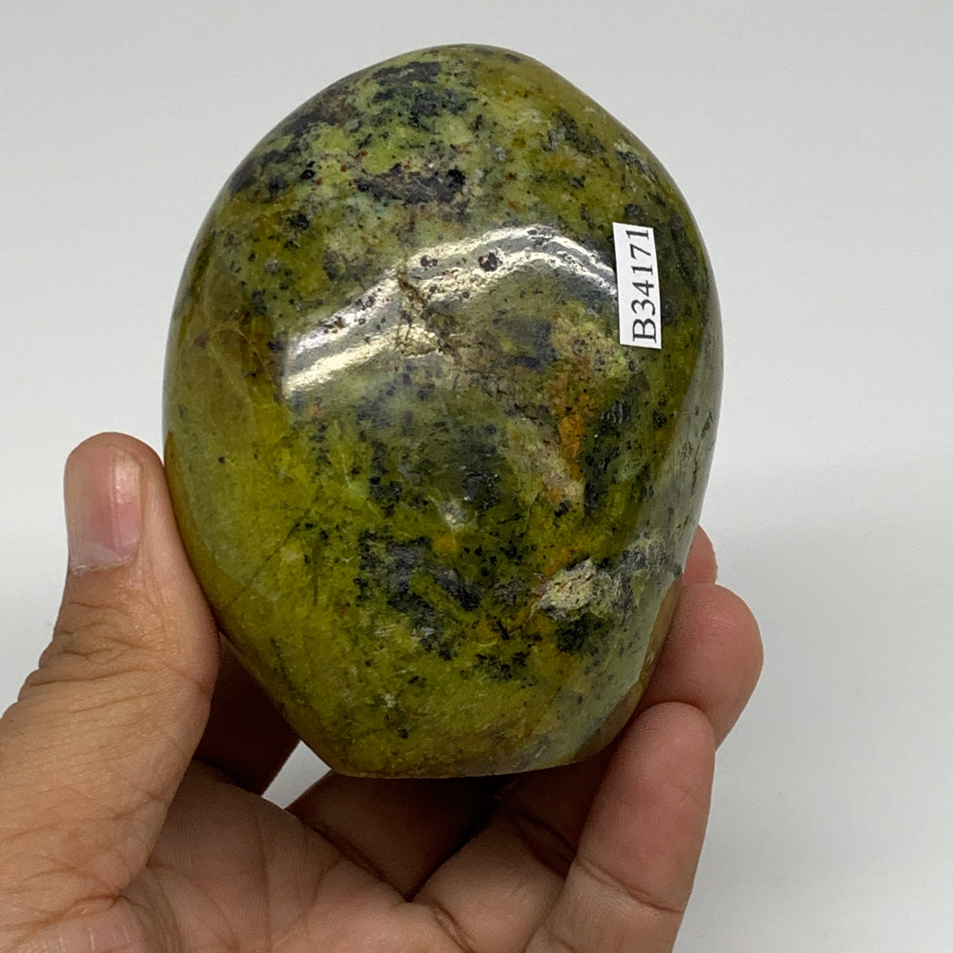 0.82 lbs, 3.1"x2.5"x.2.2", Green Opal Crystal Freeform Polished Gemstone, B34171
