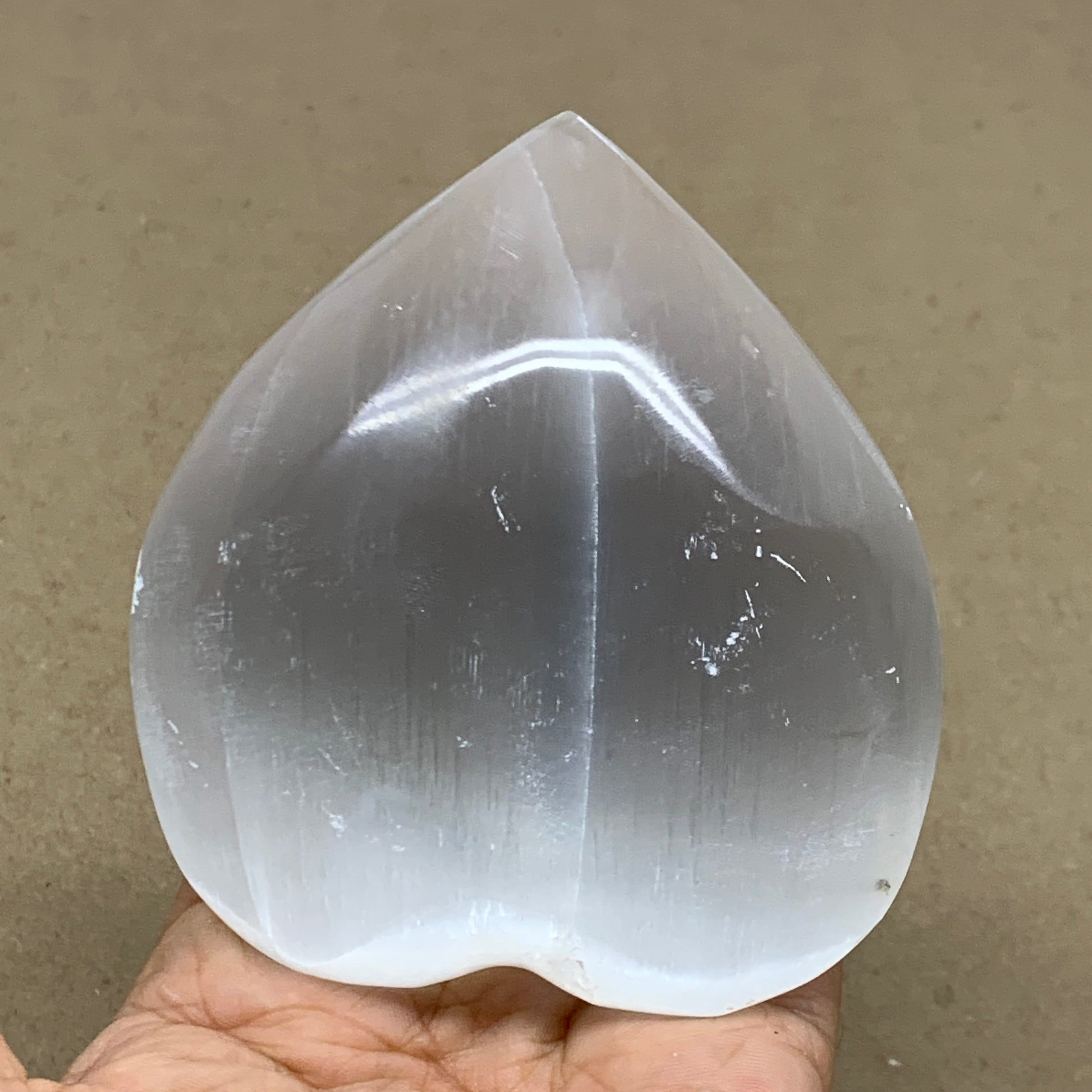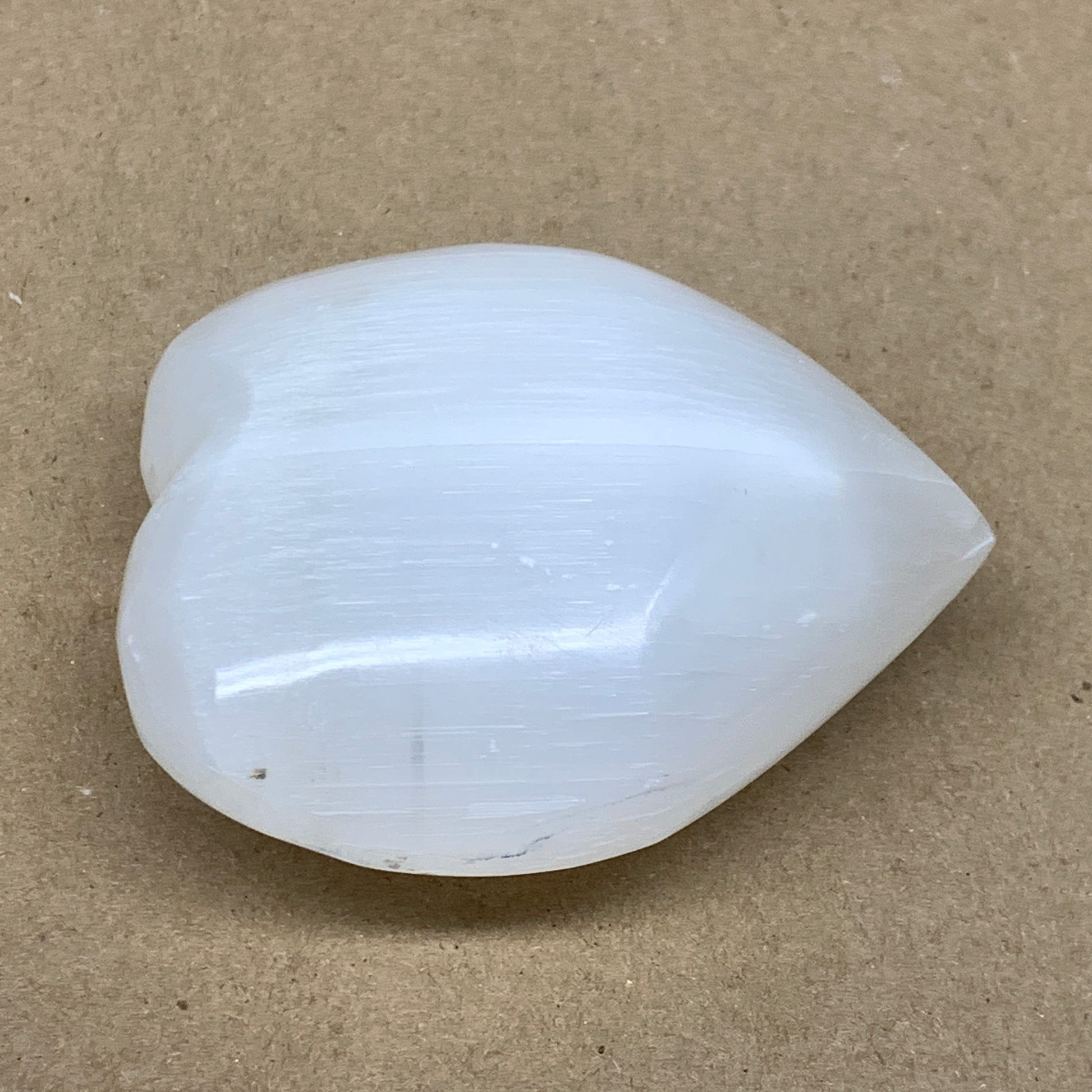 0.84 lbs, 3.8"x3.4"x1.6", Selenite Half Puffy Heart Crystals, Satin Spar, B36576