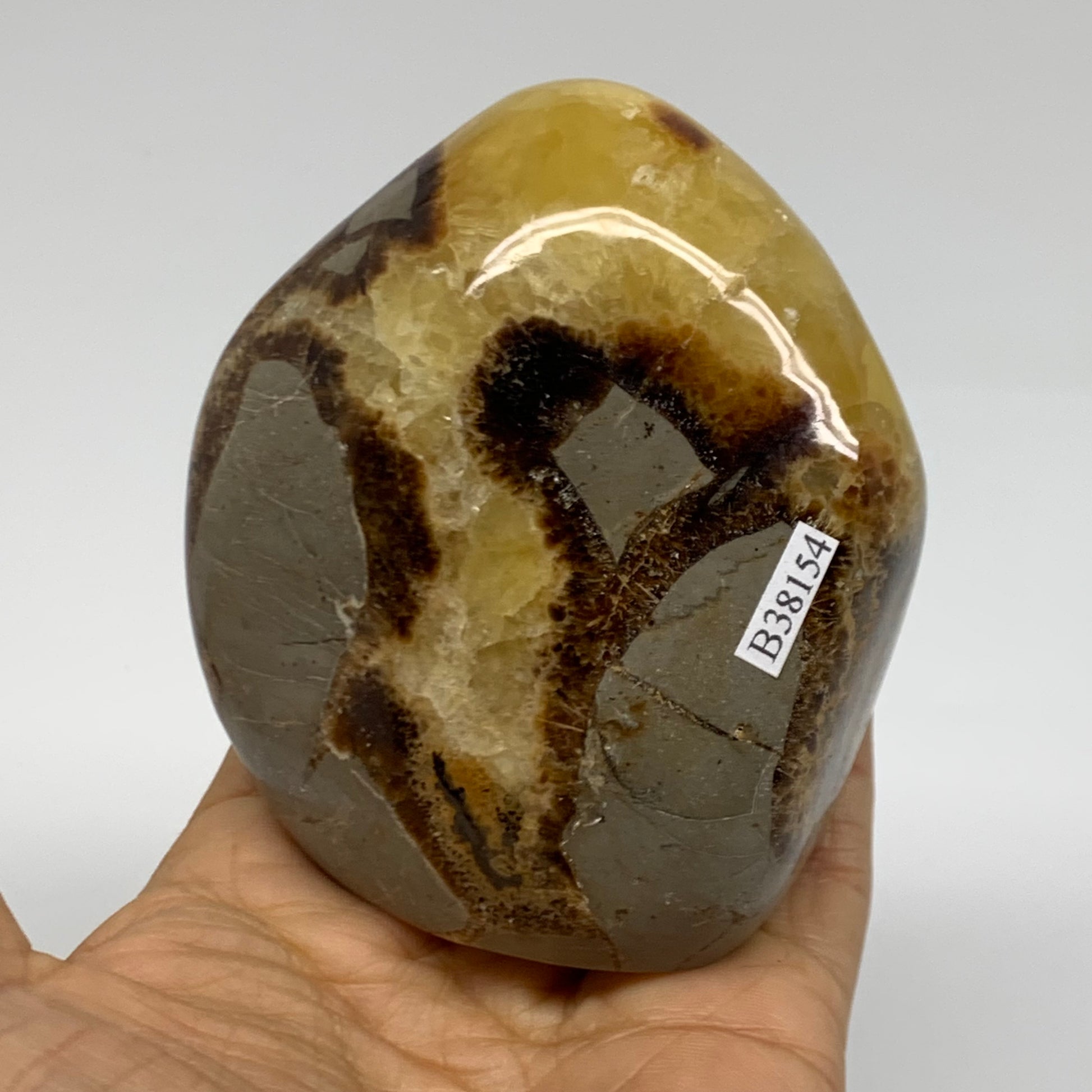 0.85 lbs, 3.3"x3"x1.8", Septarian Nodules Freeform Polished Crystal, B38154