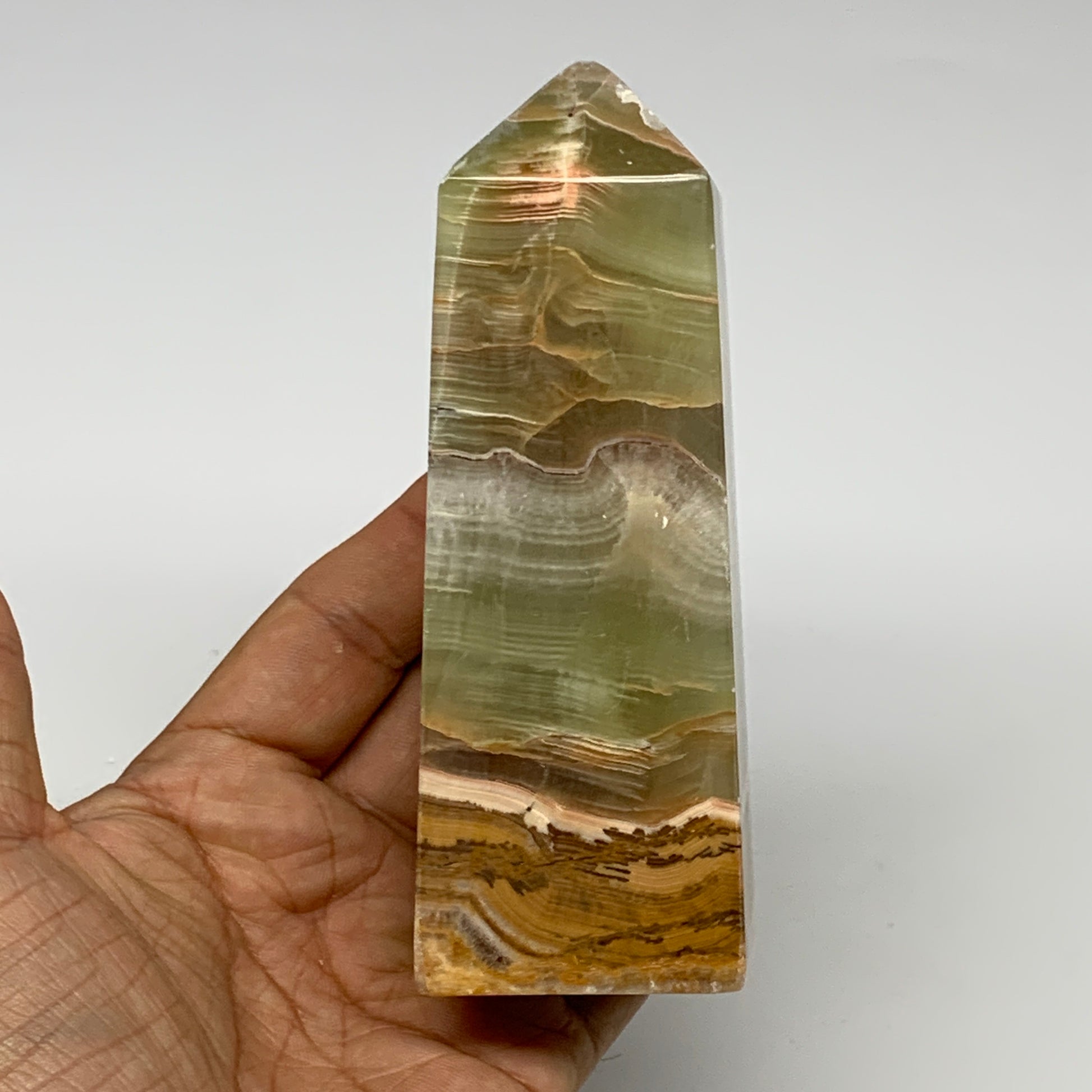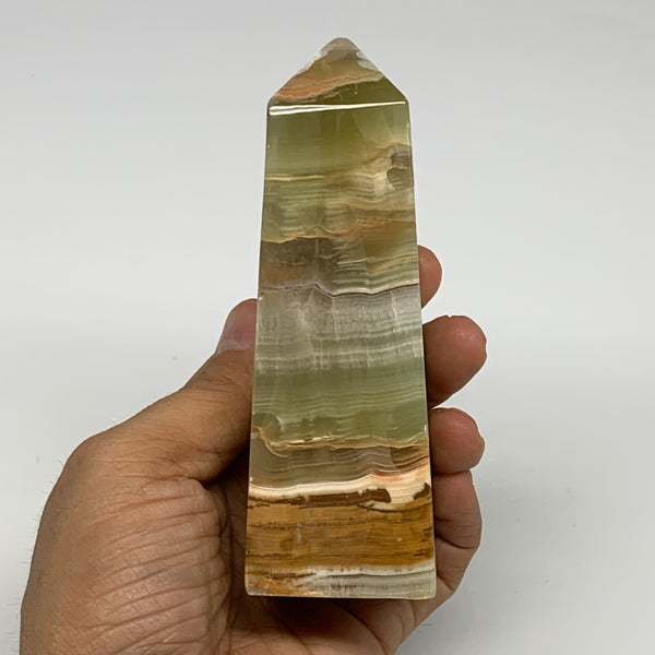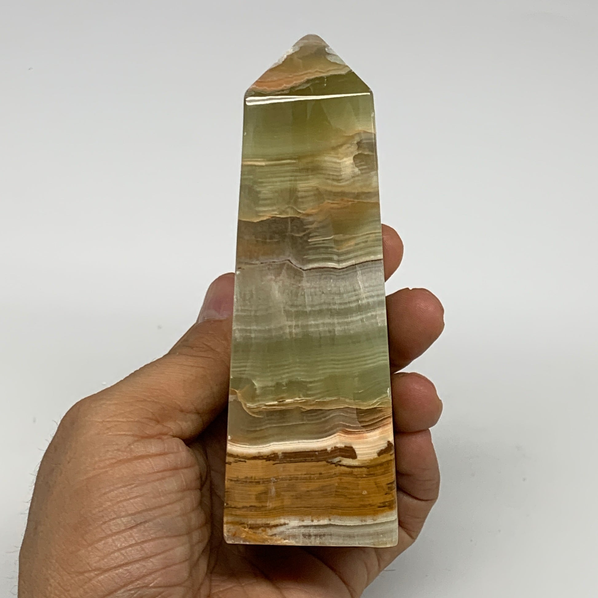 0.87 lbs, 4.7"x1.7"x1.5", Green Onyx Point Tower Obelisk Crystal @Afghanistan, B29662