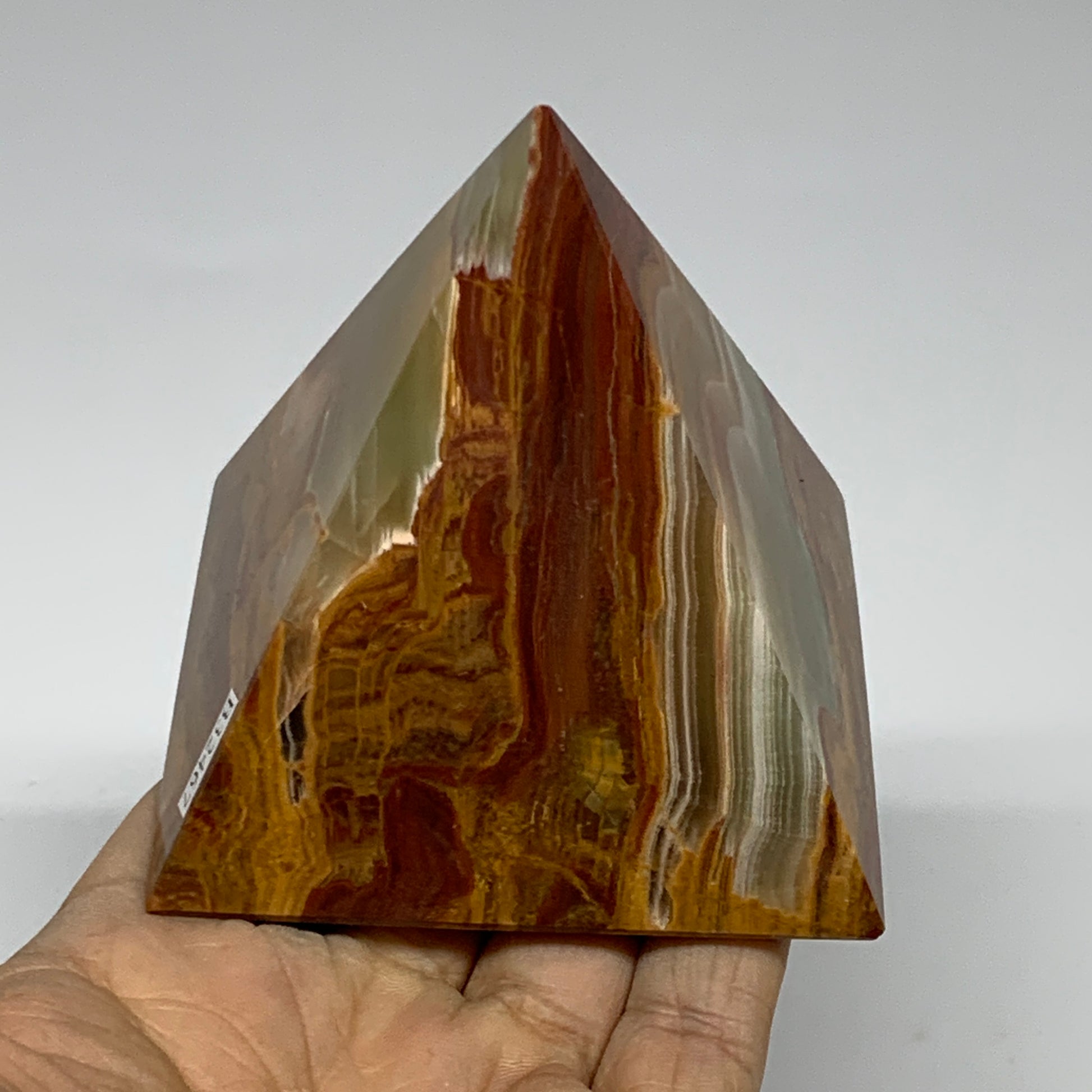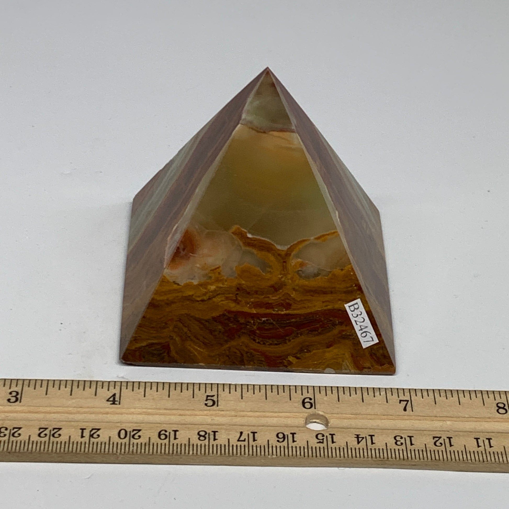 0.89 lbs, 2.8"x2.9"x2.9", Green Onyx Pyramid Gemstone Crystal, B32467