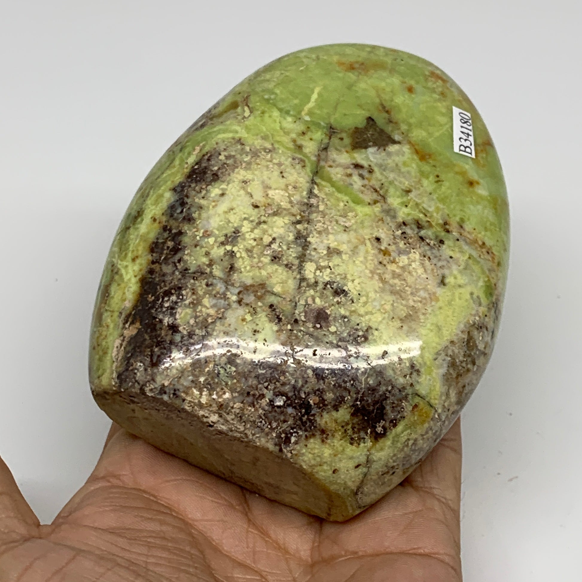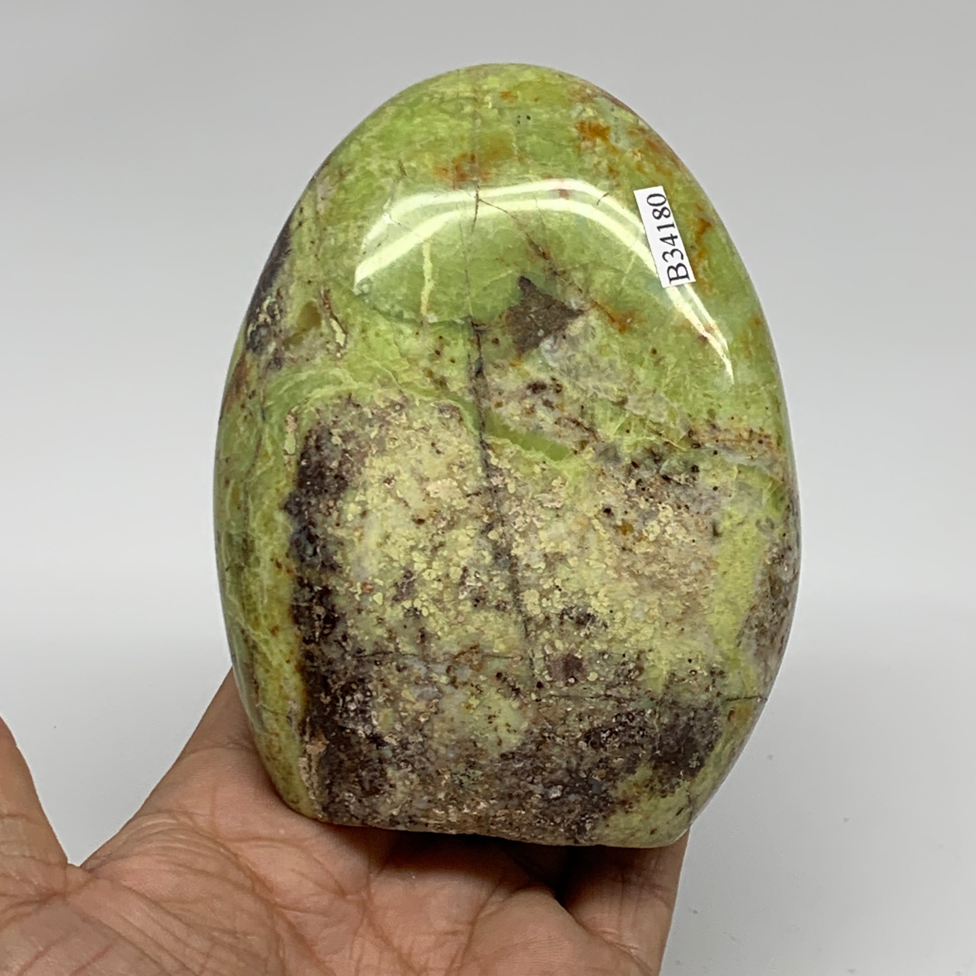 0.9 lbs, 4.1"x3.2"x.1.6", Green Opal Crystal Freeform Polished Gemstone, B34180