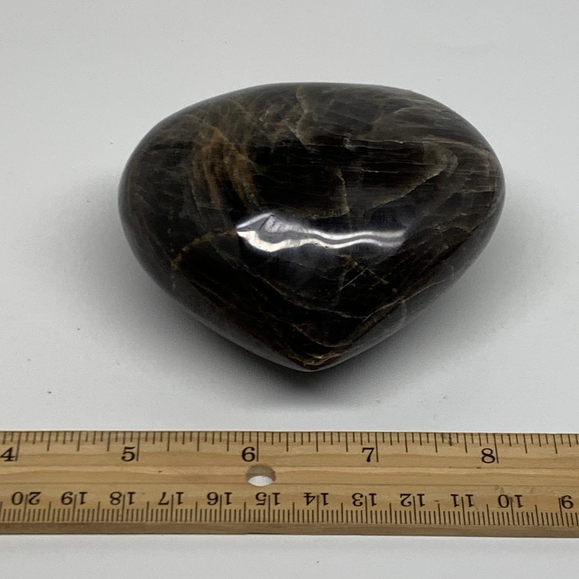 0.91 lbs, 3.3"x3.5"x1.9", Black Moonstone Heart Polished Crystal Decor, B37897