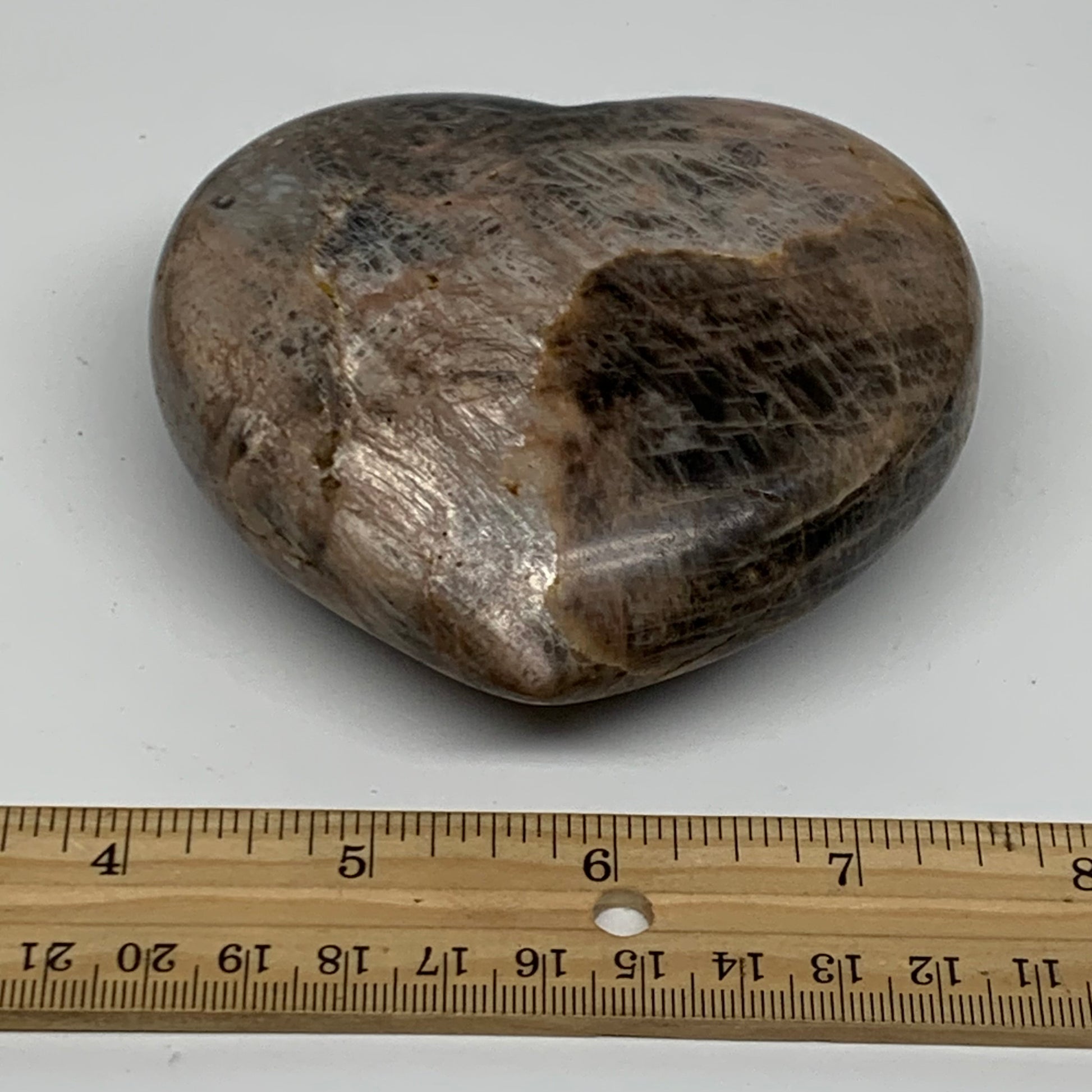 0.91 lbs, 3.3"x3.7"x1.5", Black Moonstone Heart Polished Crystal Decor, B37833