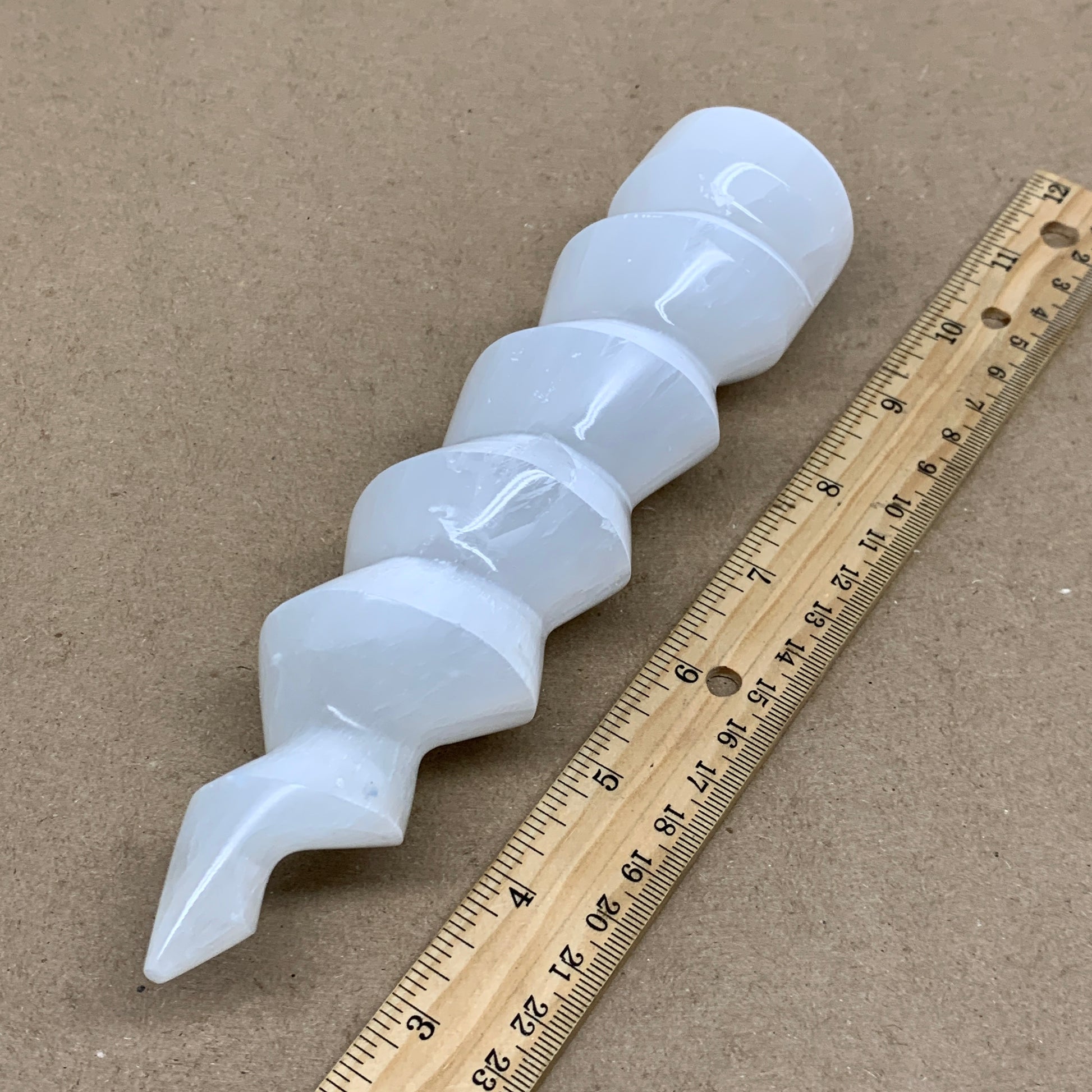 0.94 lbs.,7.25"x1.7", Selenite Spiral Crystal Tower Wand Point, B36609