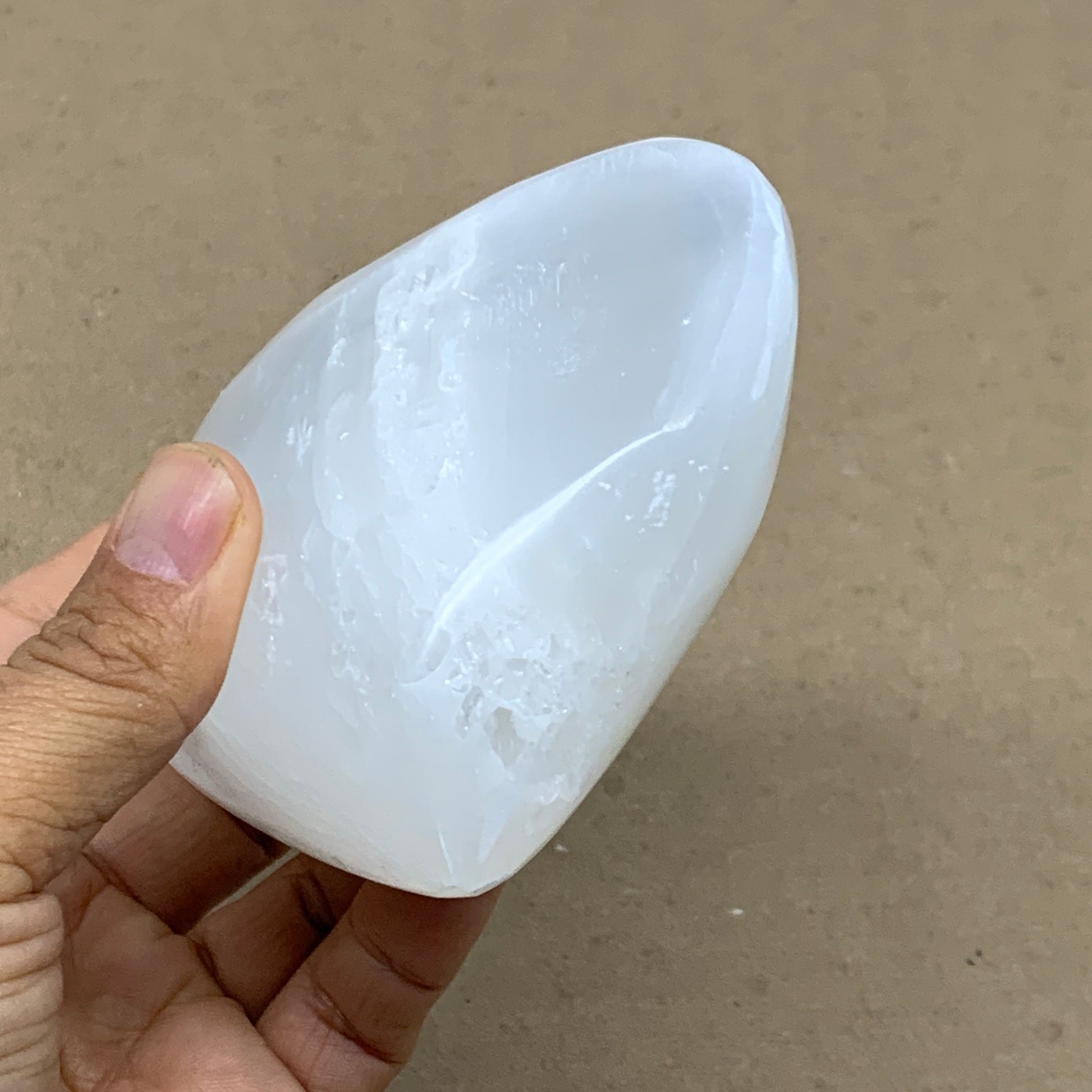 This is a natural product so specification varies from item to item. Due to its soft nature, scratches, chips, dents, Rustics, Crack looking lines, Repairs and fractures looking lines are very common in selenites. Therefore, please expect all Selenite products to have some minor issues & imperfections.