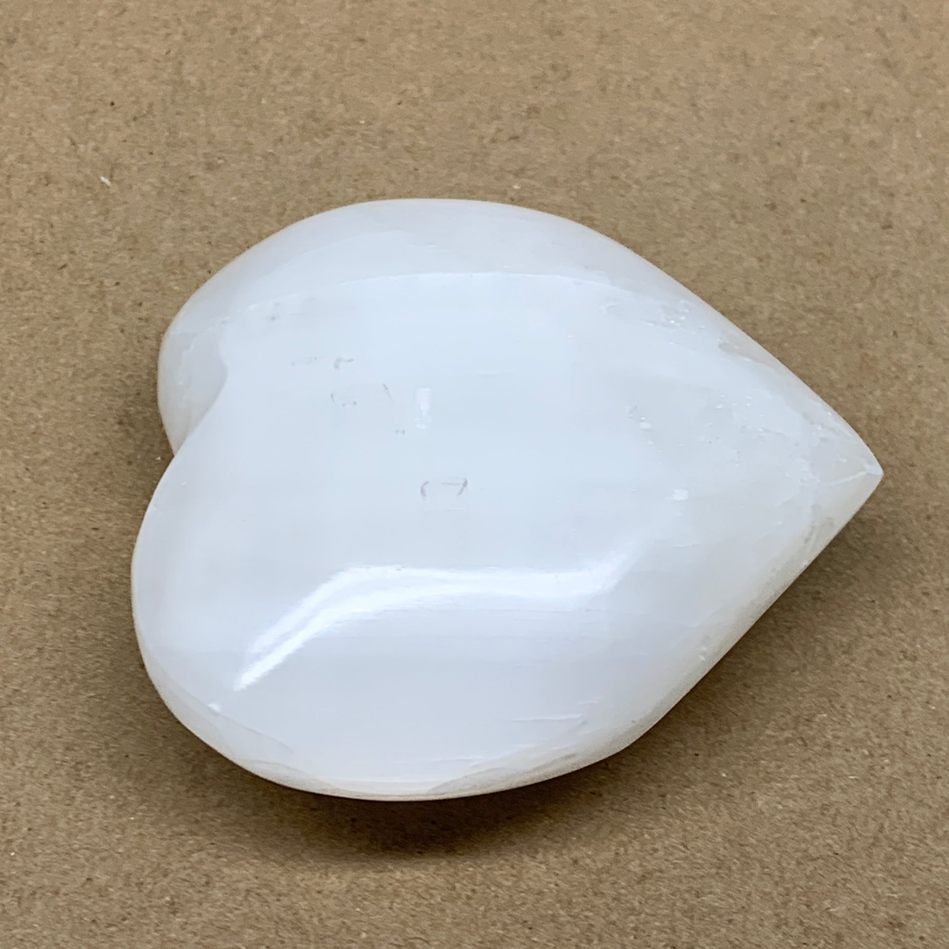 0.97 lbs, 3.8"x3.9"x1.6", Selenite Half Puffy Heart Crystals, Satin Spar, B36577