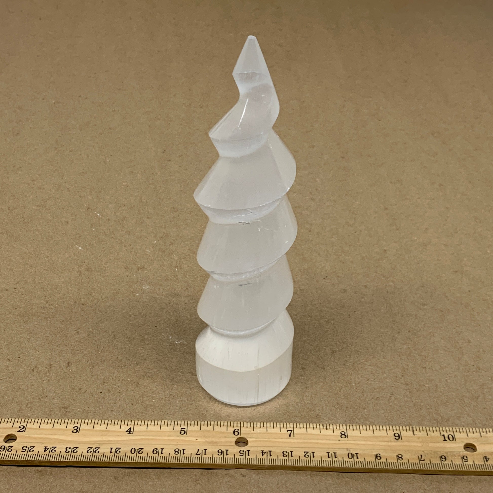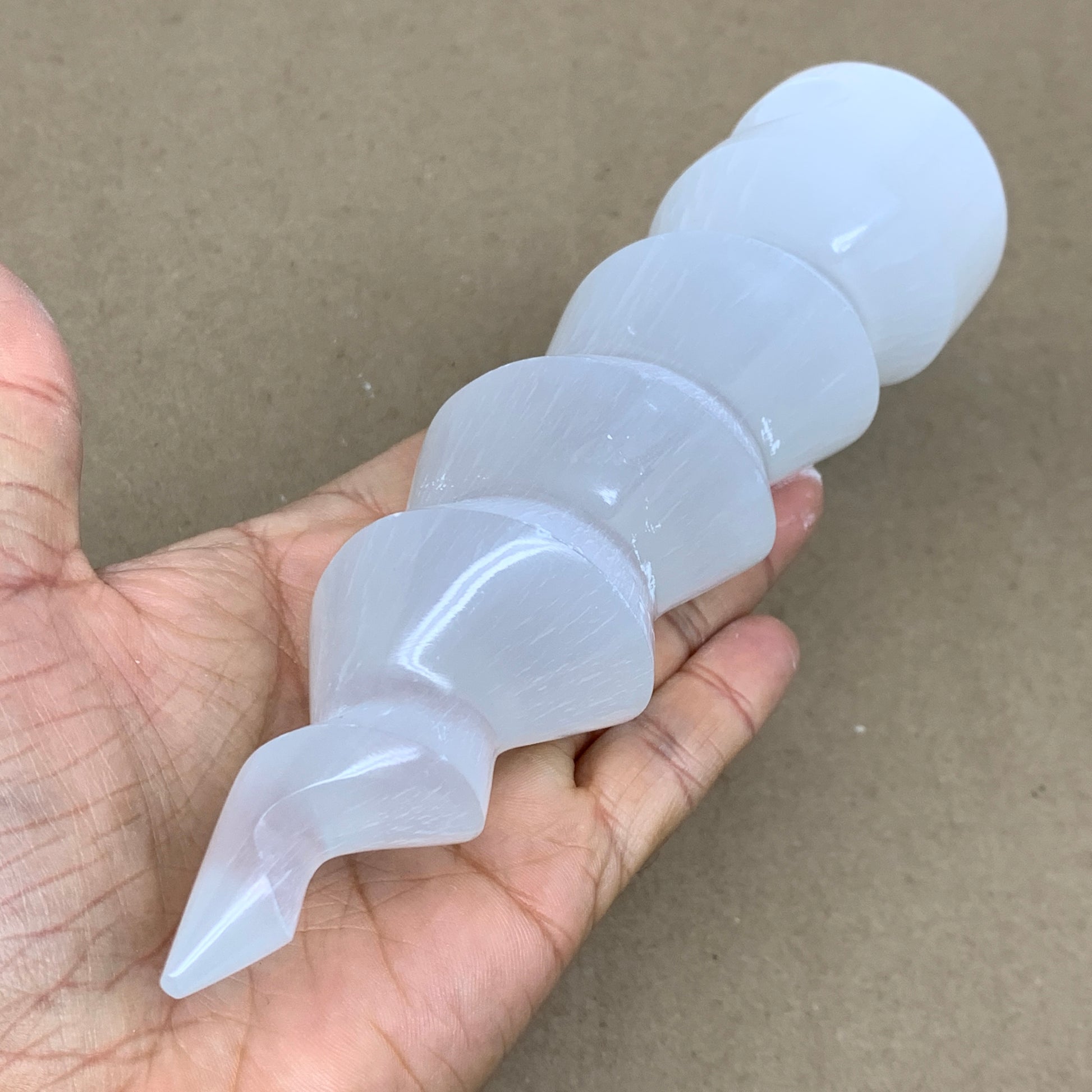 0.98 lbs.,7.25"x1.9", Selenite Spiral Crystal Tower Wand Point, B36614