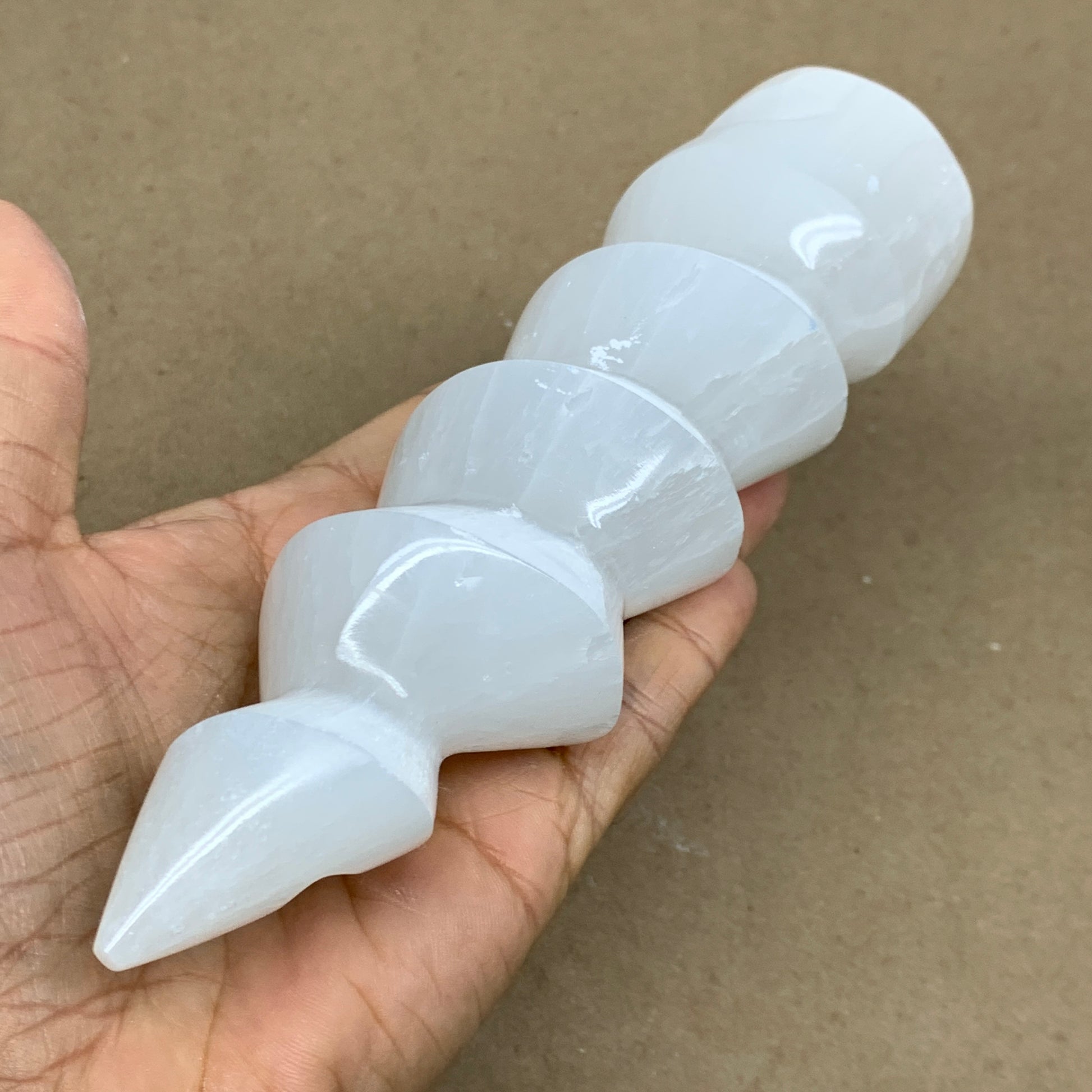 Look at the images carefully before purchasing!This is a natural product so specification varies from item to item. Due to its soft nature, scratches, chips, dents, Rustics, Crack looking lines, and fractures very common in selenites. Therefore, please expect all Selenite products to have some minor issues & imperfections.
