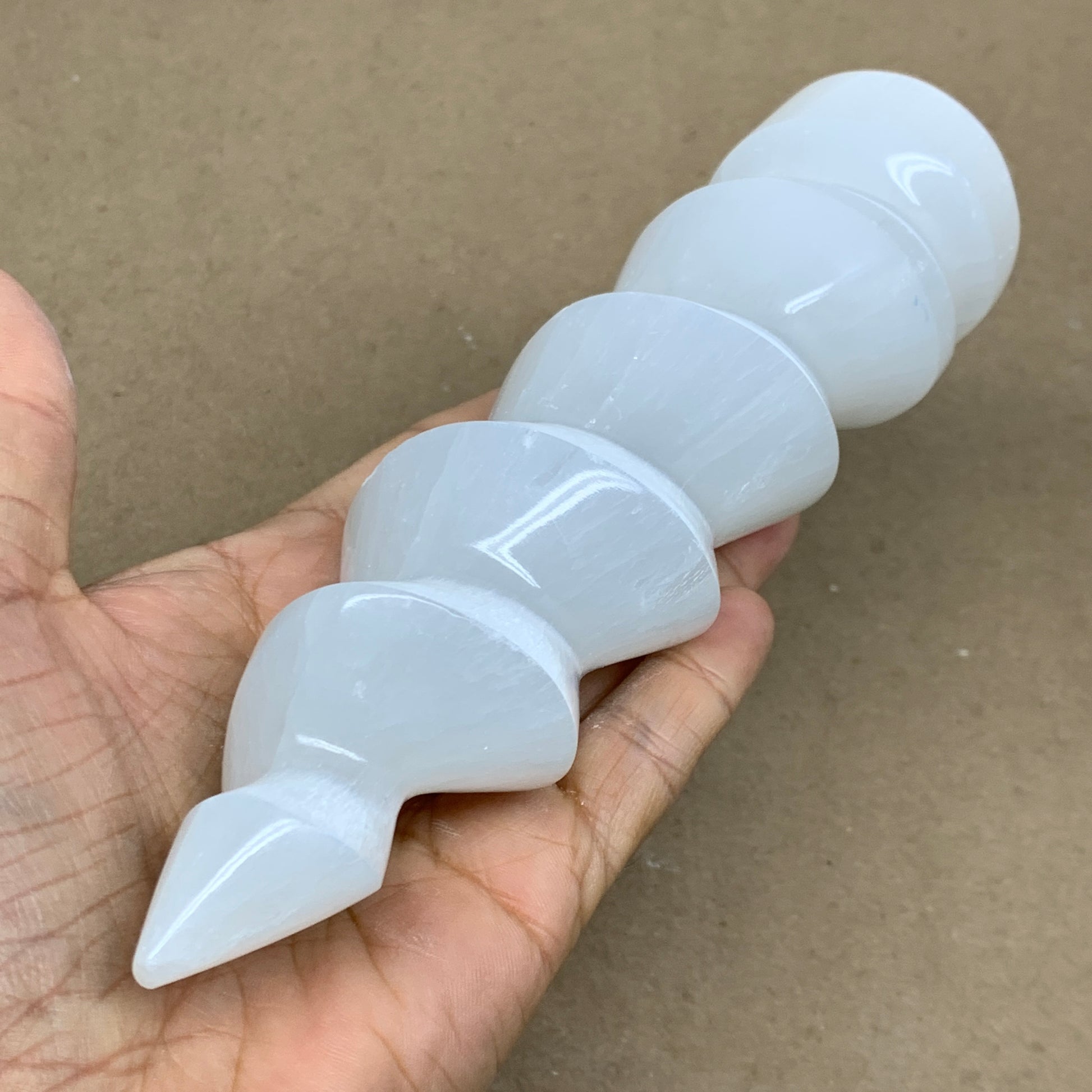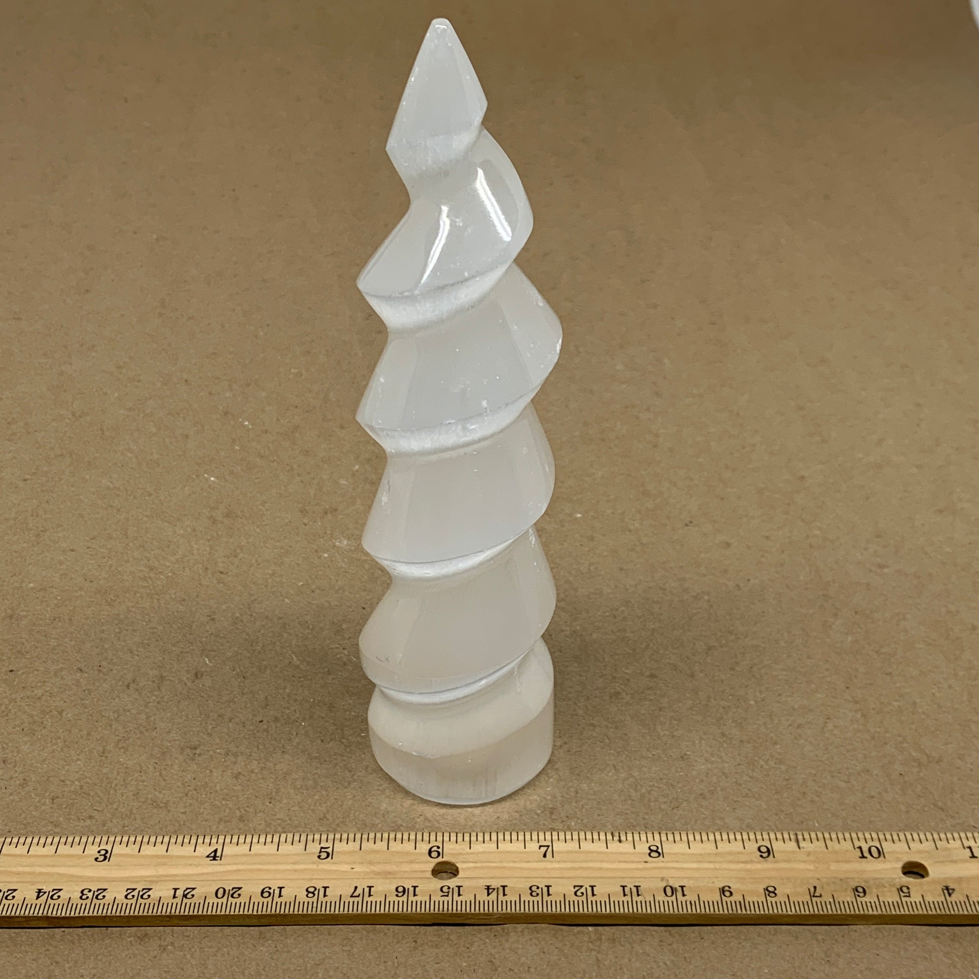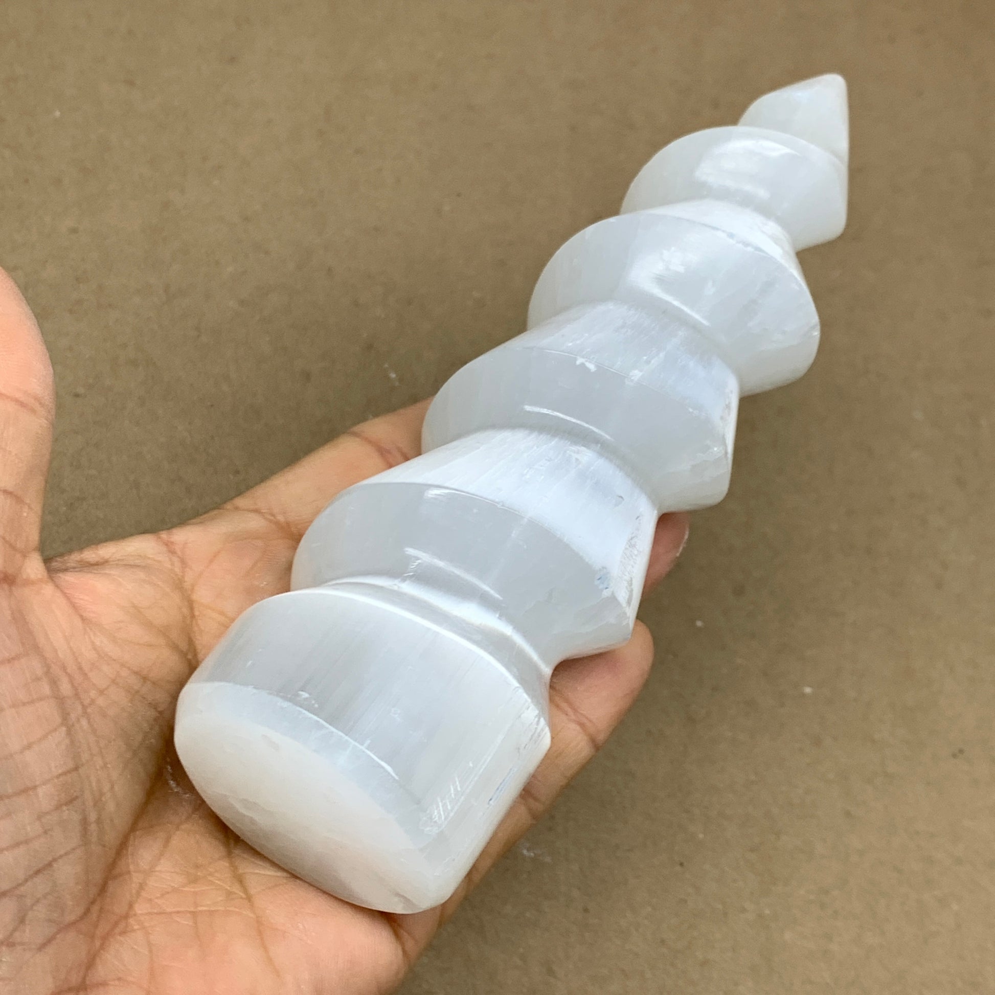 0.98 lbs.,7.25"x1.9", Selenite Spiral Crystal Tower Wand Point, B36620