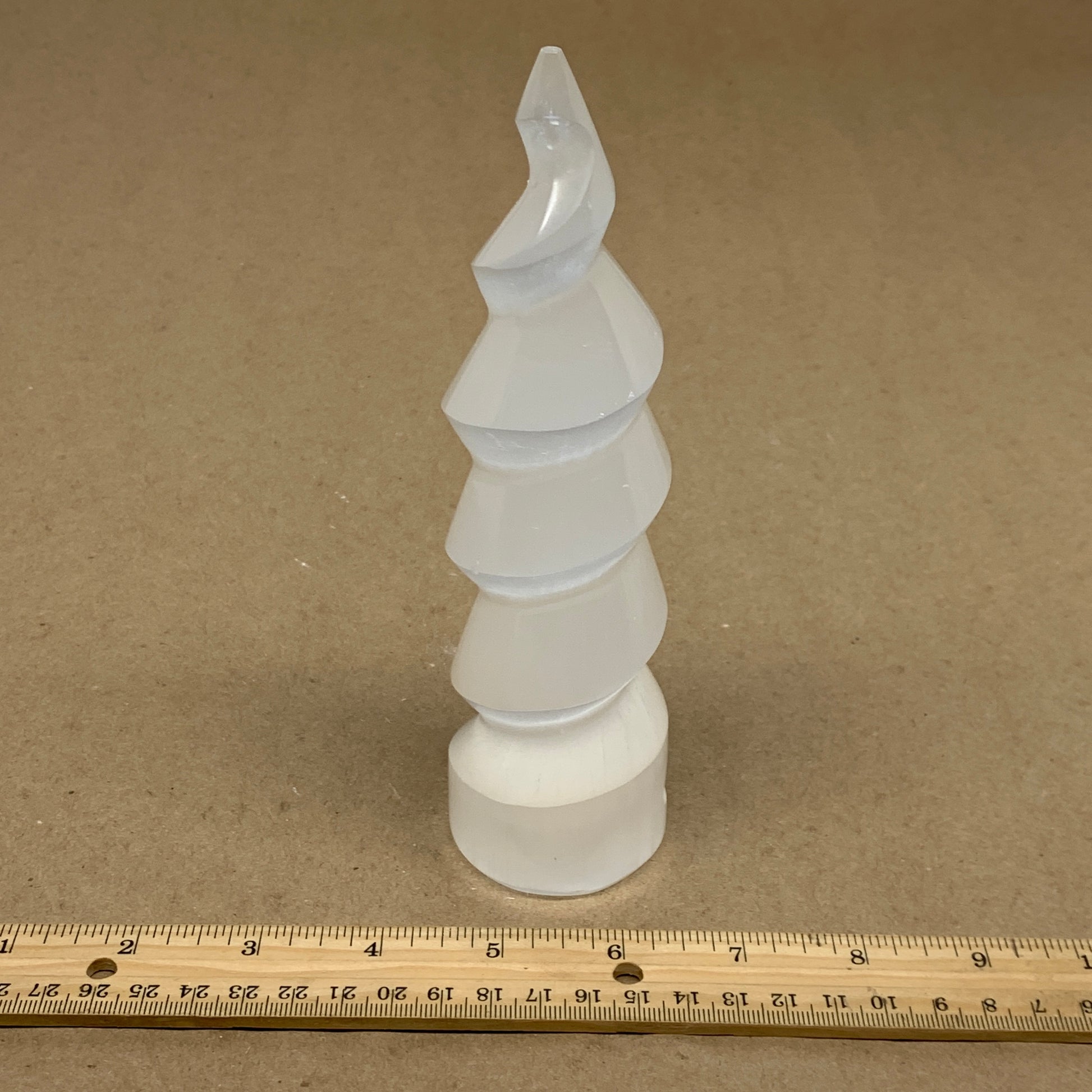 0.98 lbs.,7.25"x2", Selenite Spiral Crystal Tower Wand Point, B36621