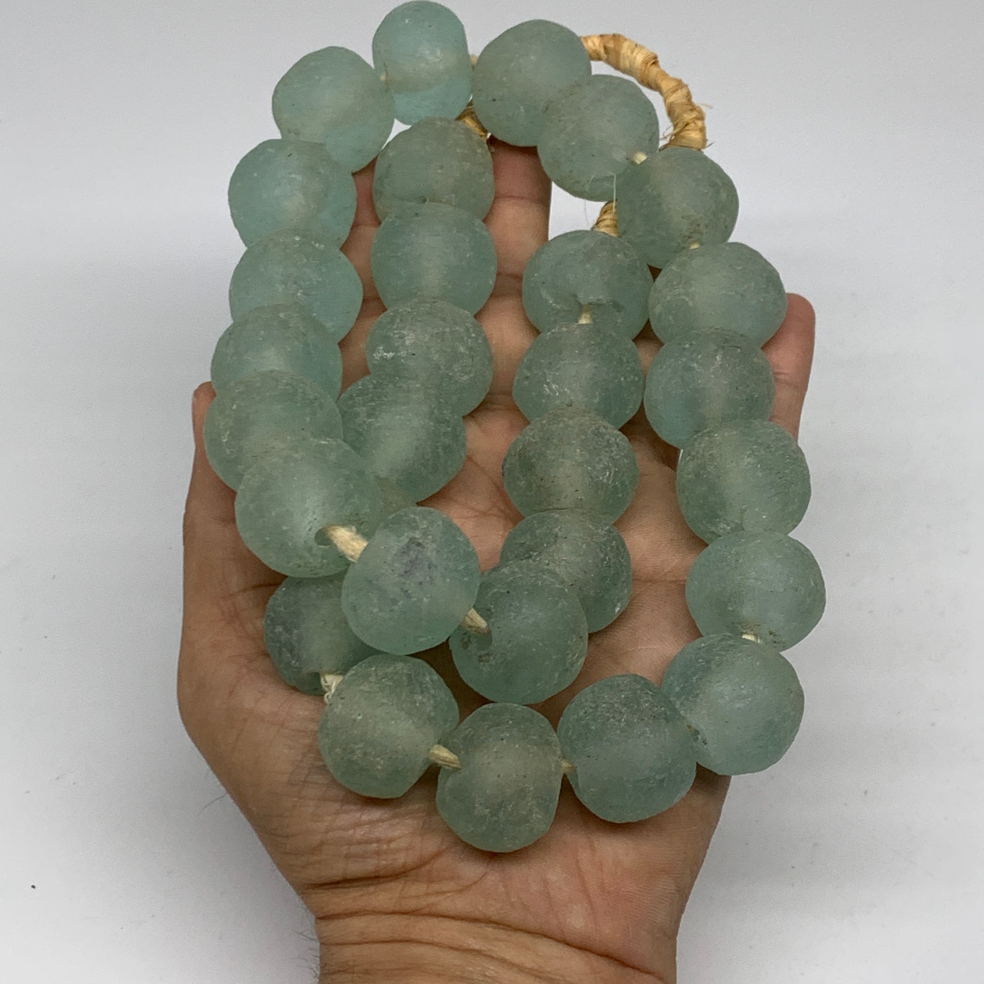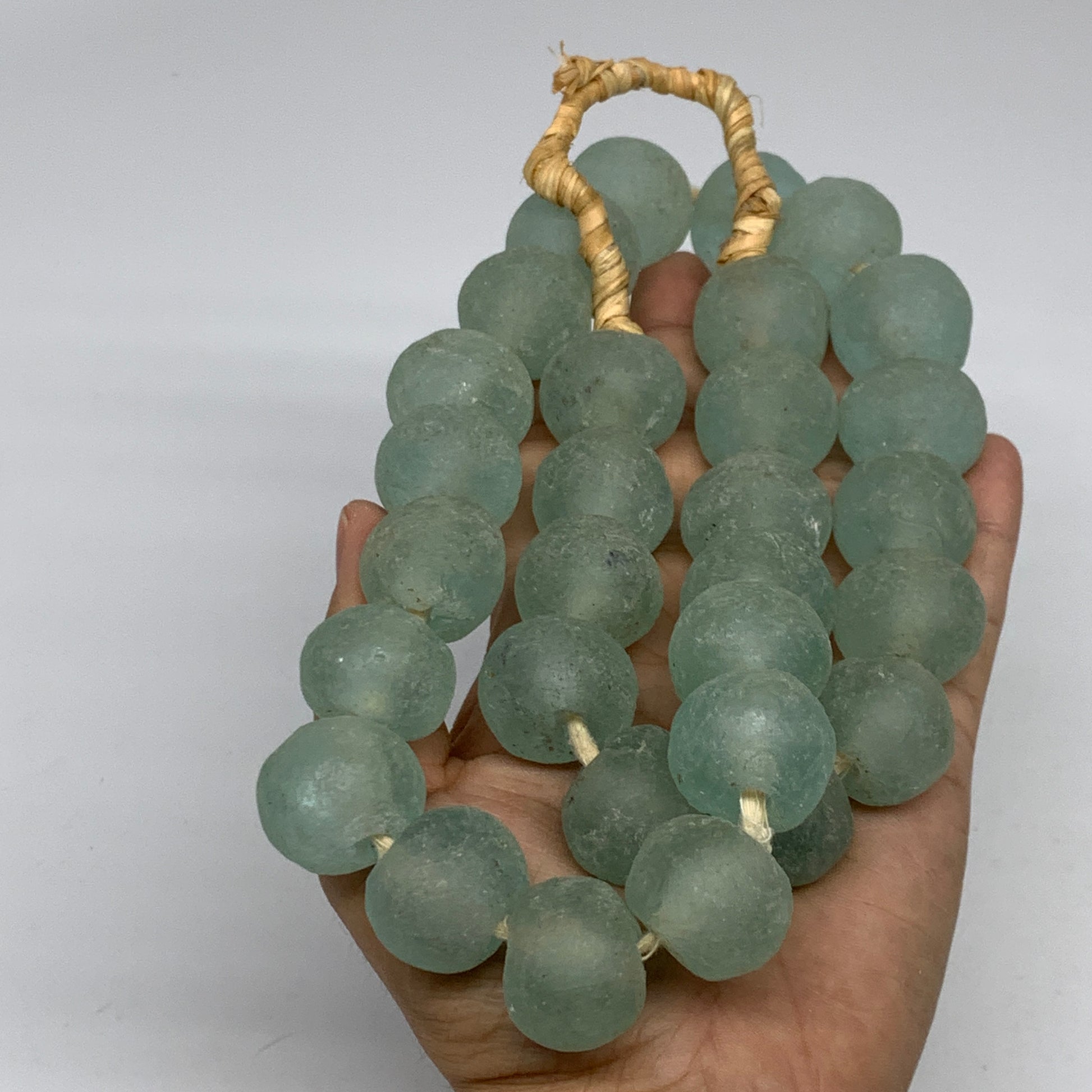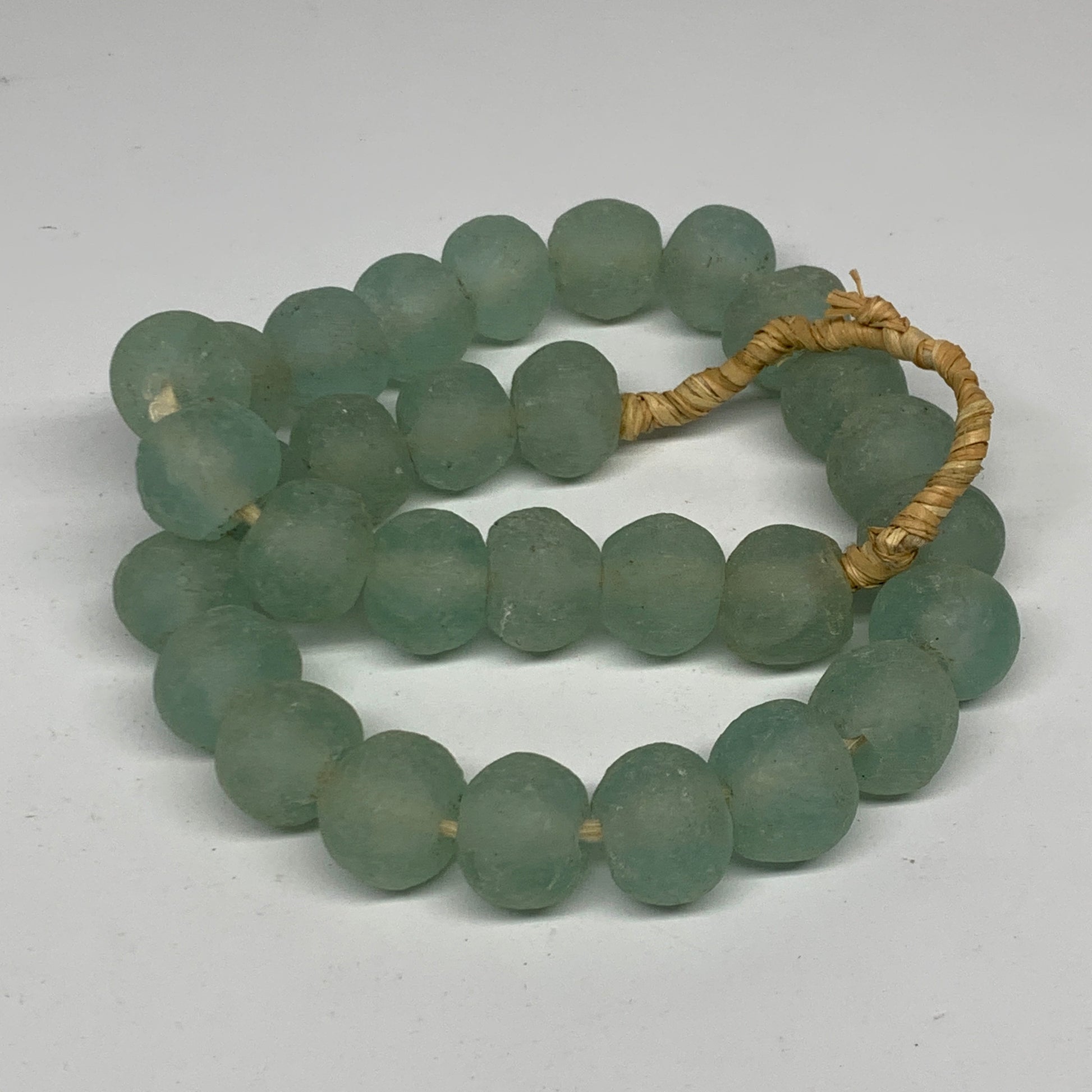 Sea glass from Ghana, Africa is made from recycled glass, such as old bottles, broken windows, and other repurposed glass. The glass is crushed into a powder and then poured into clay molds and baked in a special oven. The Krobo tribe of Ghana is a primary producer of these beads, which are often called "Krobo" beads.