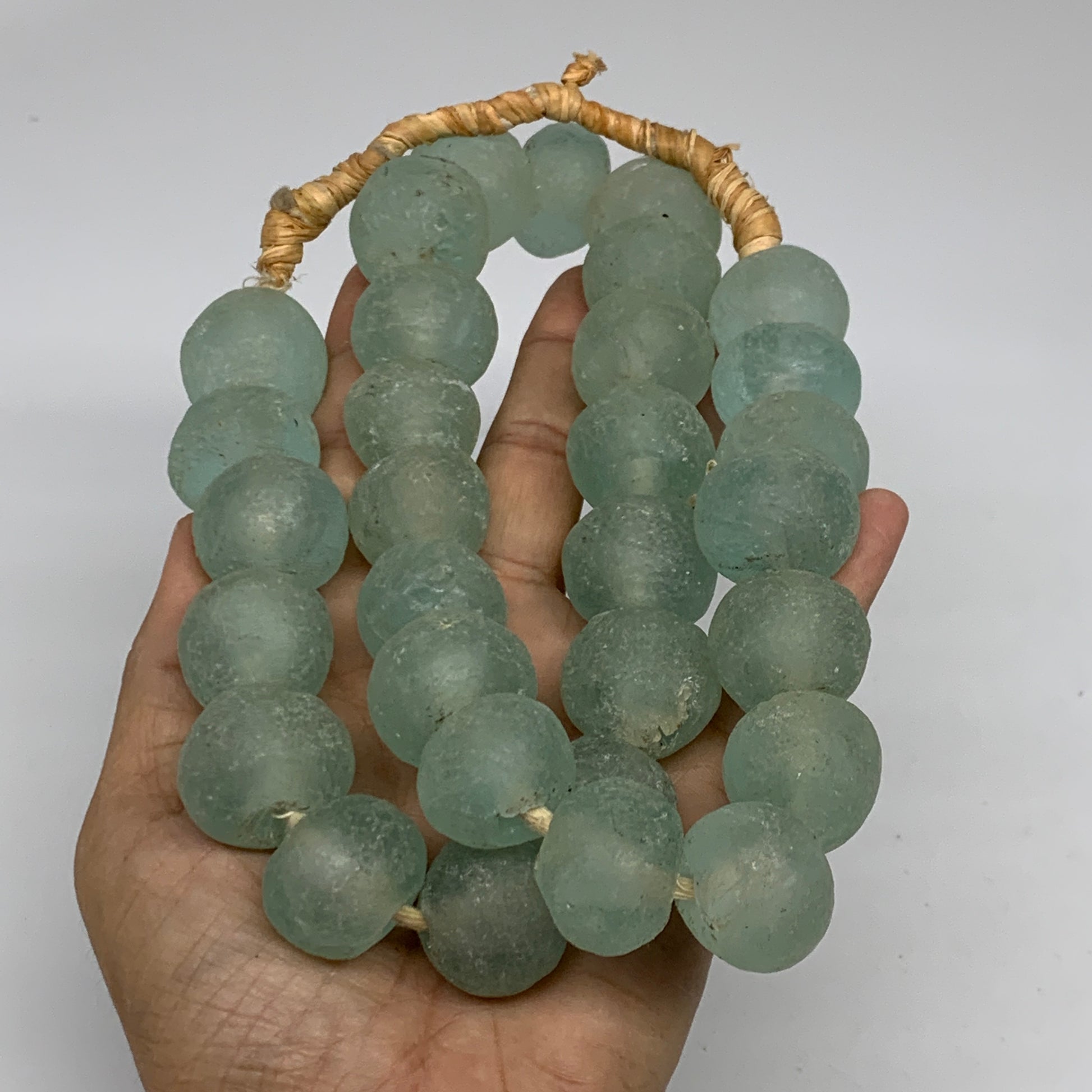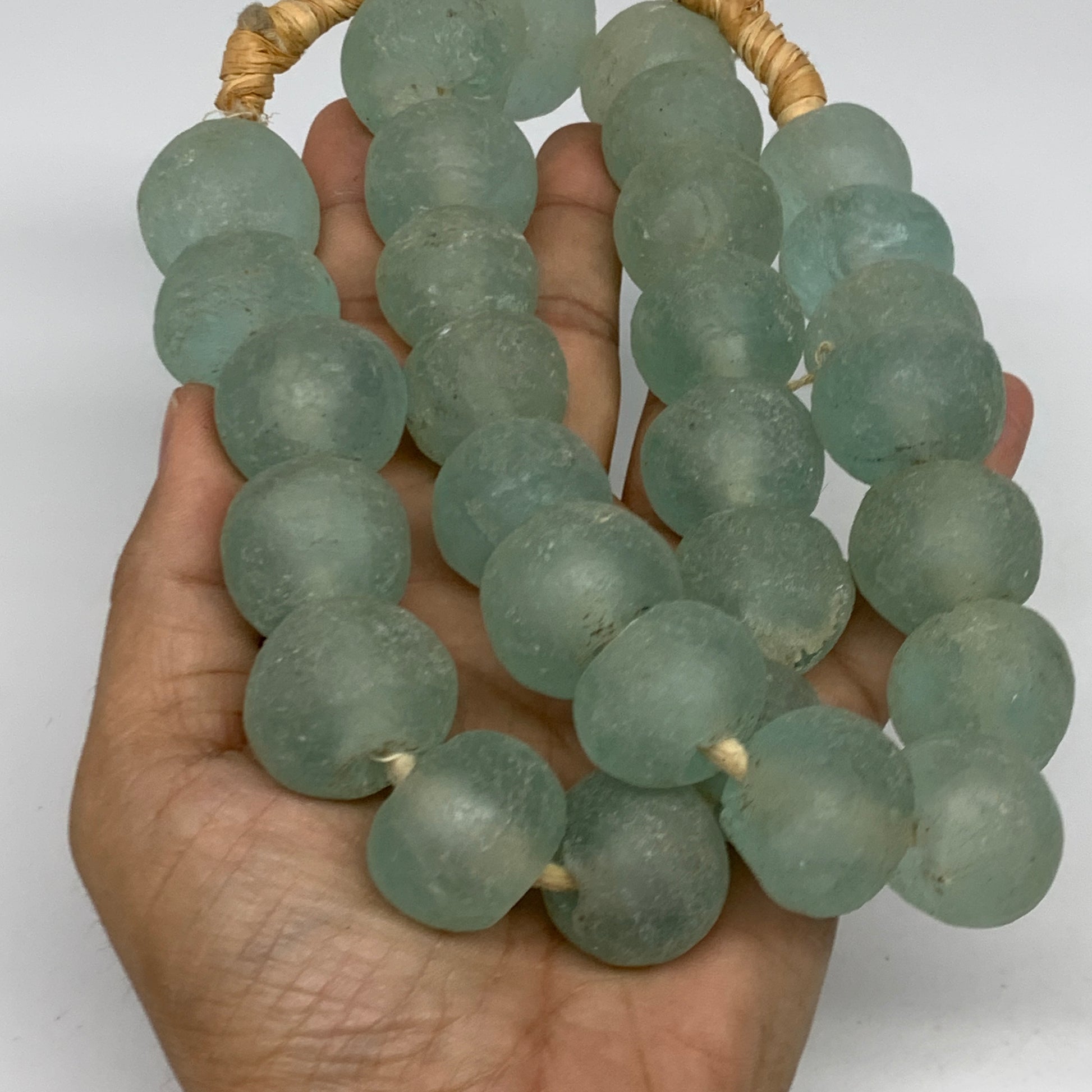 1.06 lbs, 16mm-22mm, 1 Strand, 31 beads, Green/Blue Sea Glass Beads , B35734