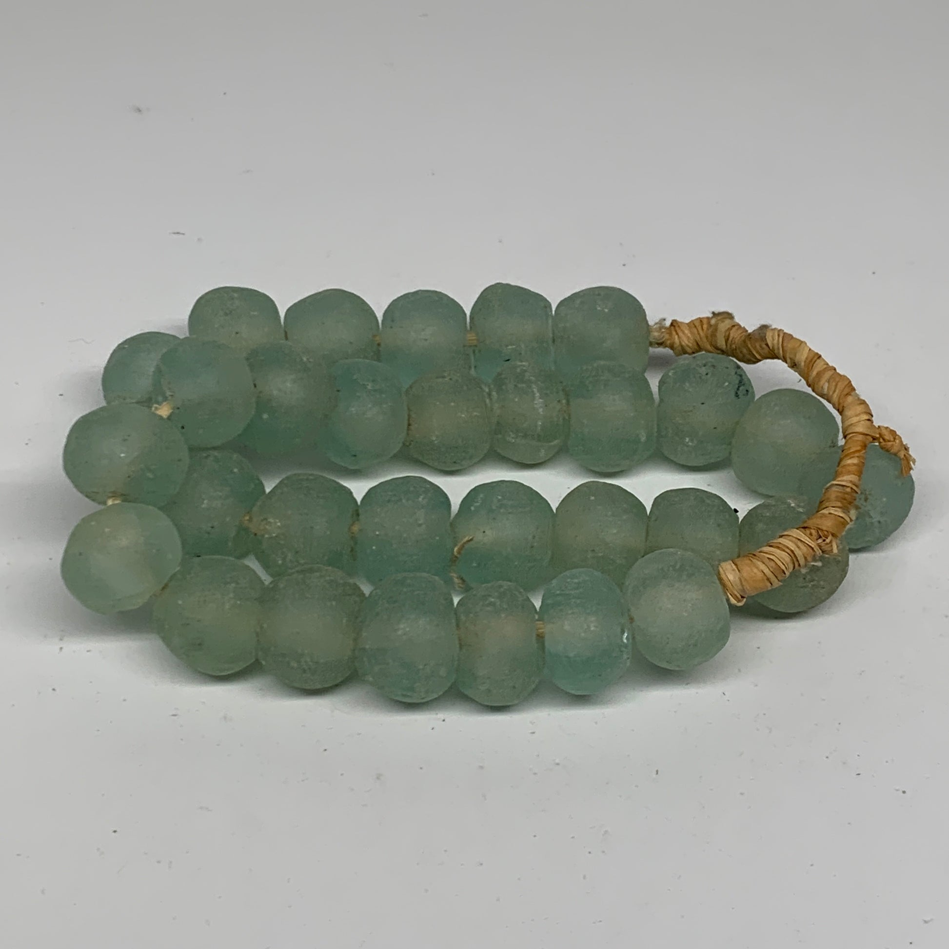 Sea glass from Ghana, Africa is made from recycled glass, such as old bottles, broken windows, and other repurposed glass. The glass is crushed into a powder and then poured into clay molds and baked in a special oven. The Krobo tribe of Ghana is a primary producer of these beads, which are often called "Krobo" beads.