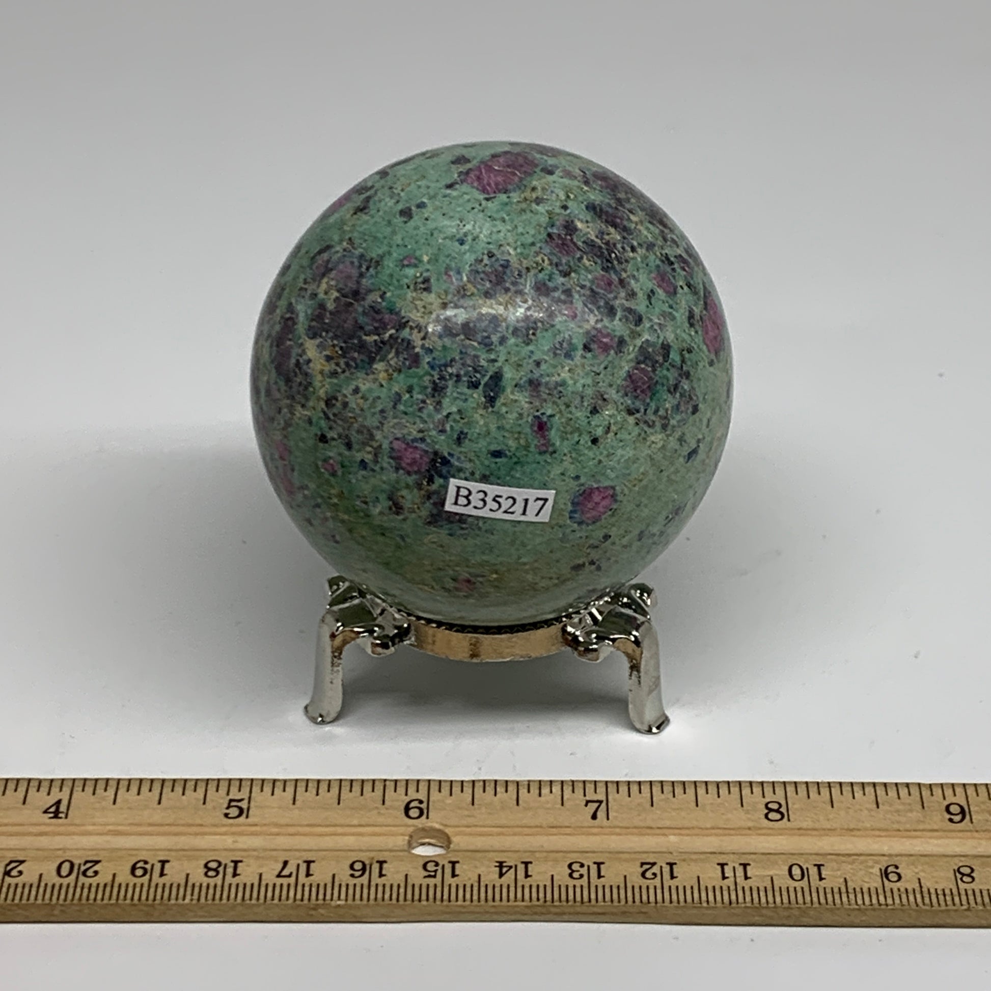 1.13 lbs, 2.7"(70mm), Zoisite with Ruby Sphere Sphere Ball Crystal, B25217