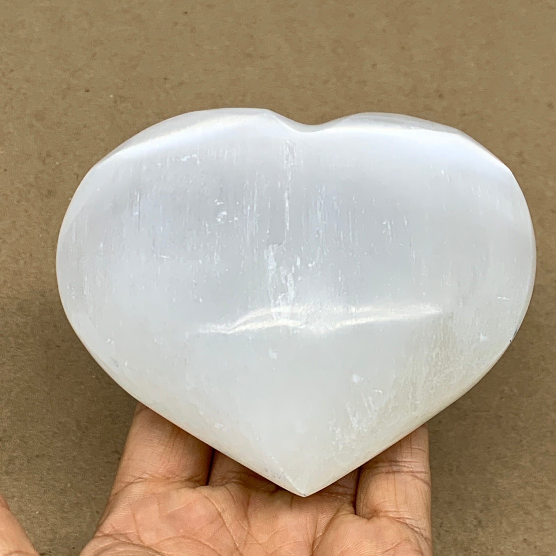 1.15 lbs, 3.9"x4.4"x1.7", Selenite Half Puffy Heart Crystals, Satin Spar, B36446
