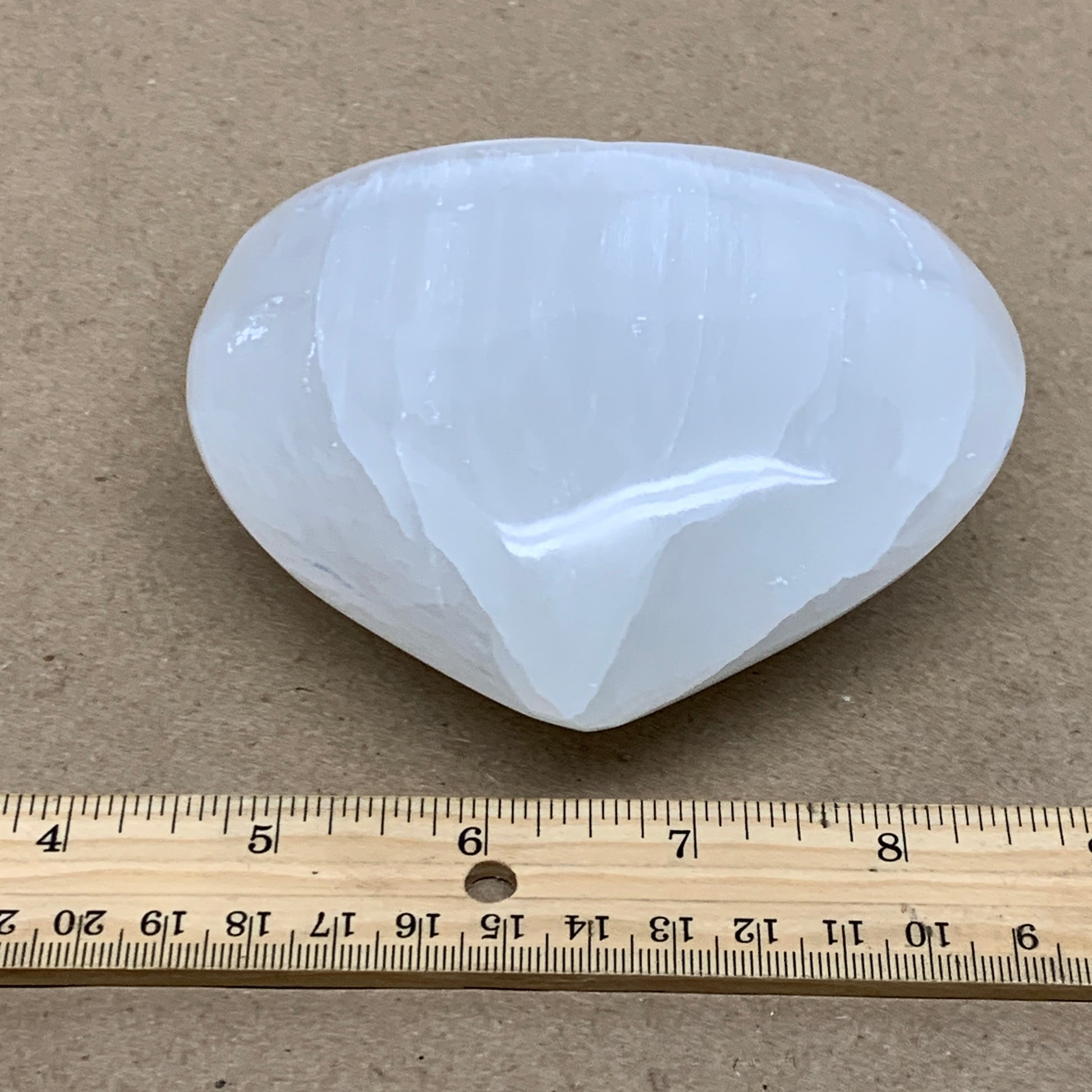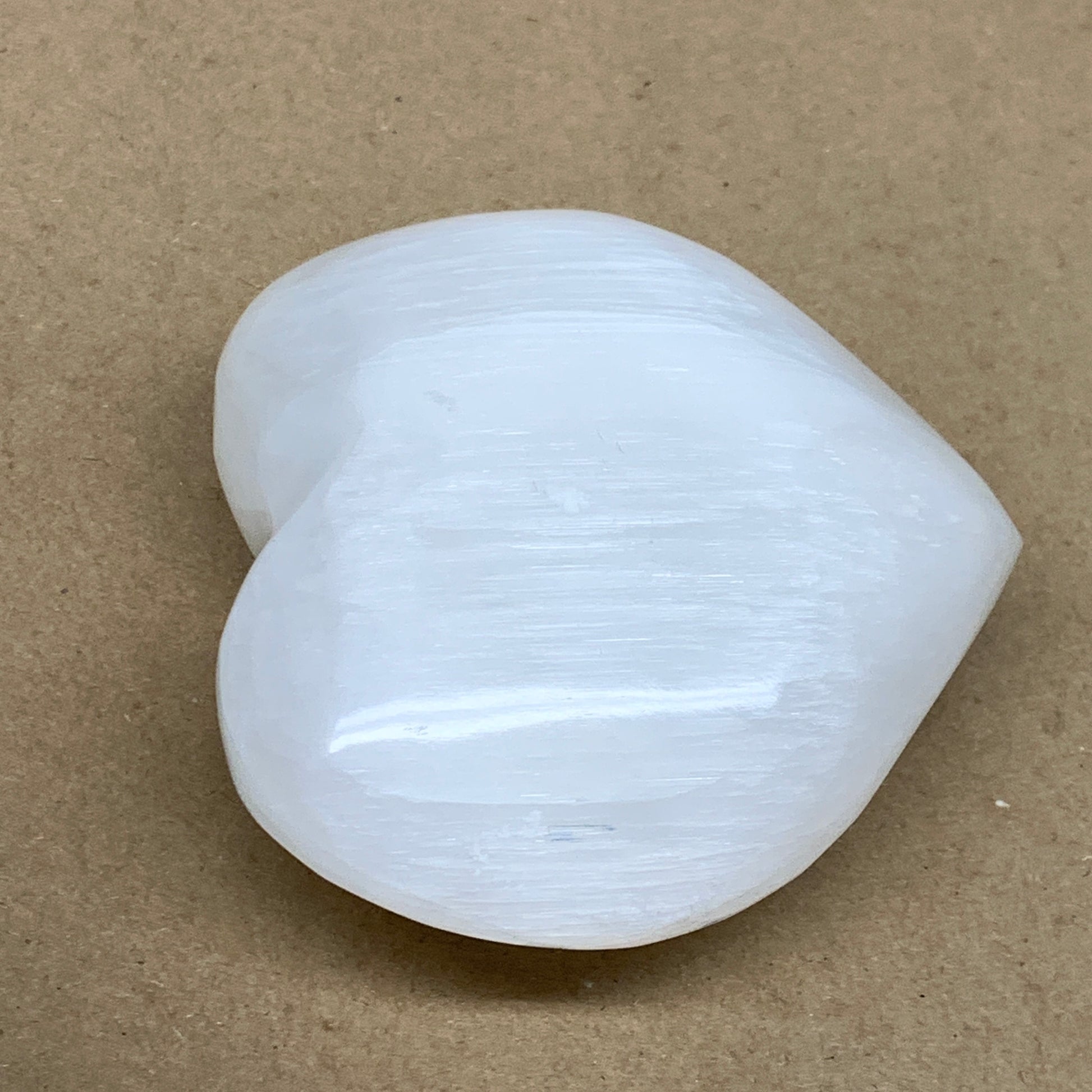 1.2 lbs, 4.1"x4.3"x1.7", Selenite Half Puffy Heart Crystals, Satin Spar, B36439