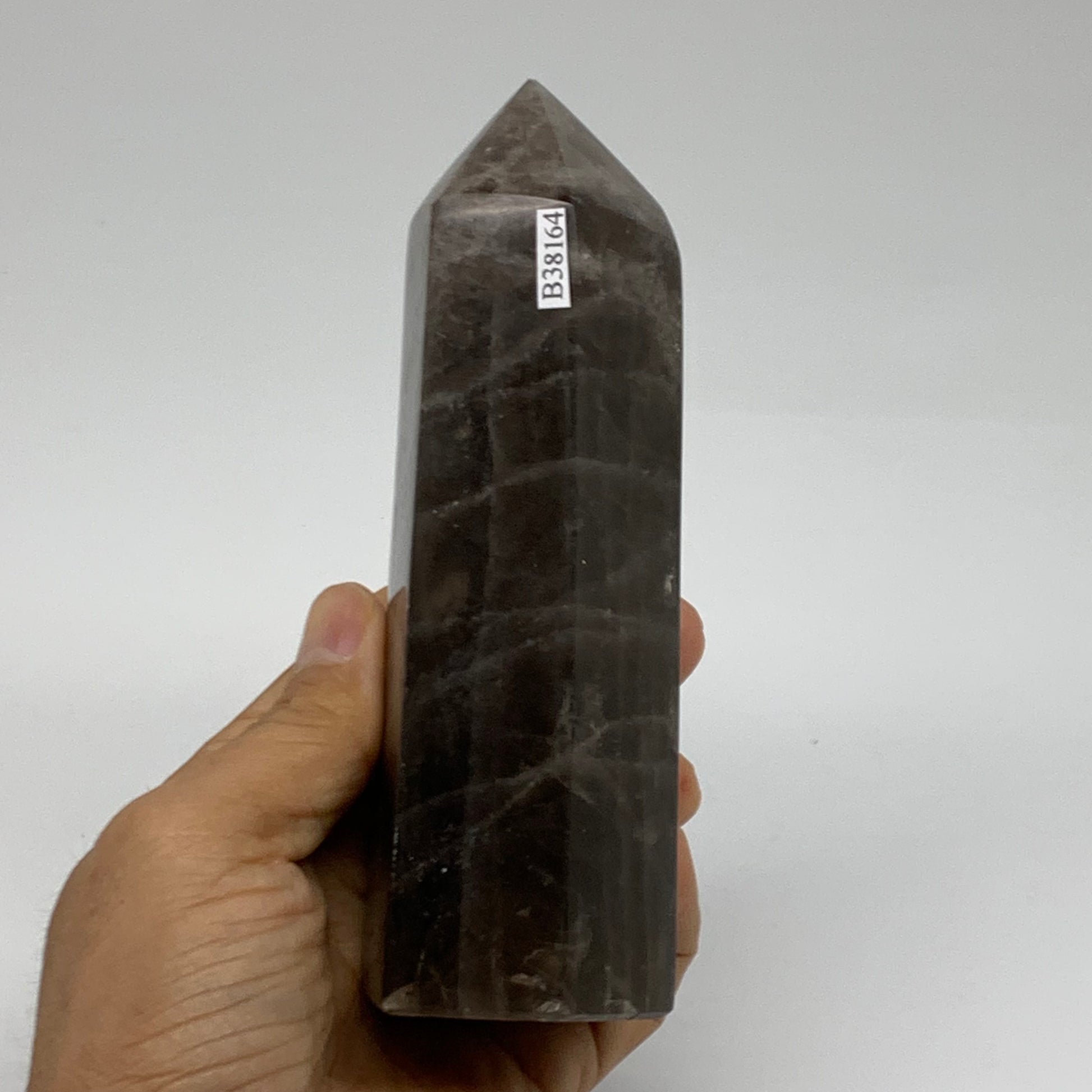 1.2 Lbs, 5.6"x2.2"x1.7", Black Moonstone Tower Obelisk Point Crystal, B38164