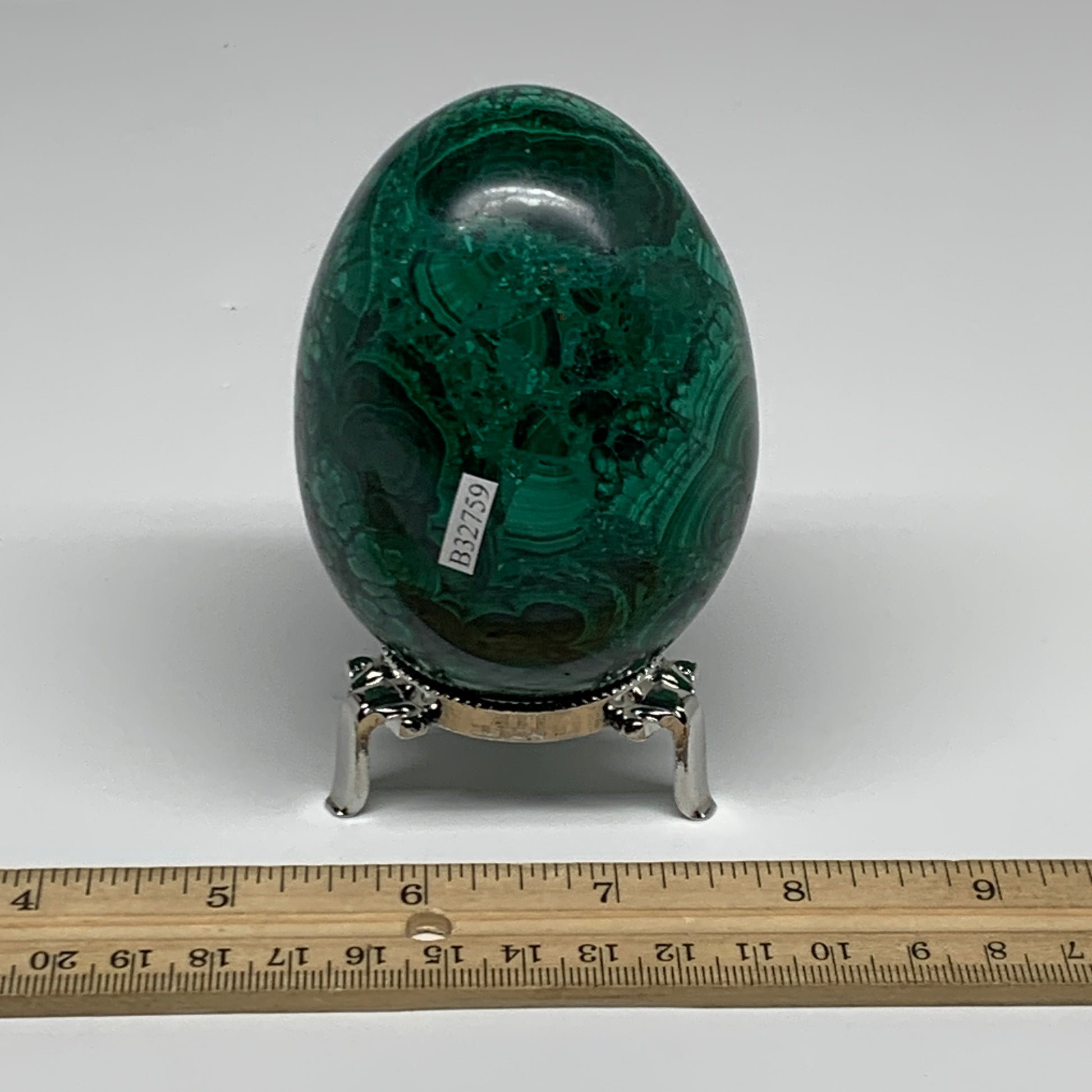 1.34 lbs, 3.4"x2.5", Natural Solid Malachite Egg Polished Gemstone @Congo, B32759