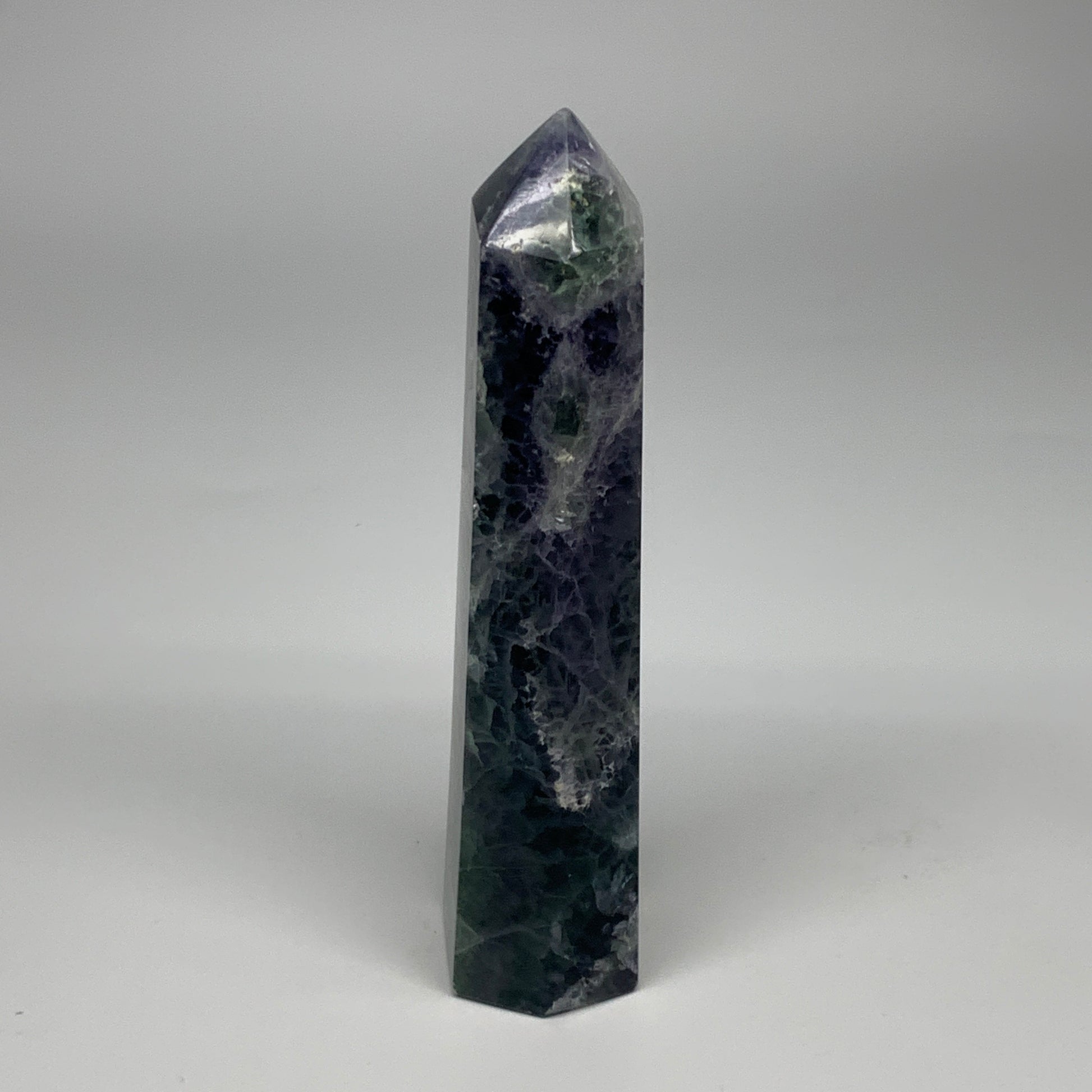 1.57 lbs, 6.4"x1.8"x1.7" Natural Fluorite Tower Obelisk Point Crystal, B29691