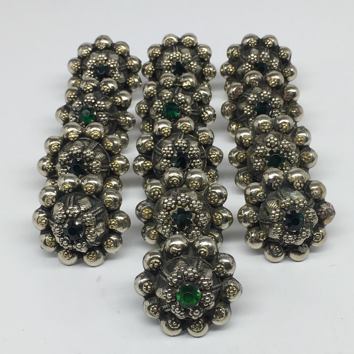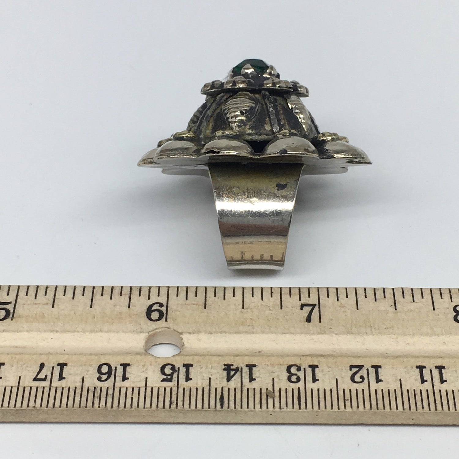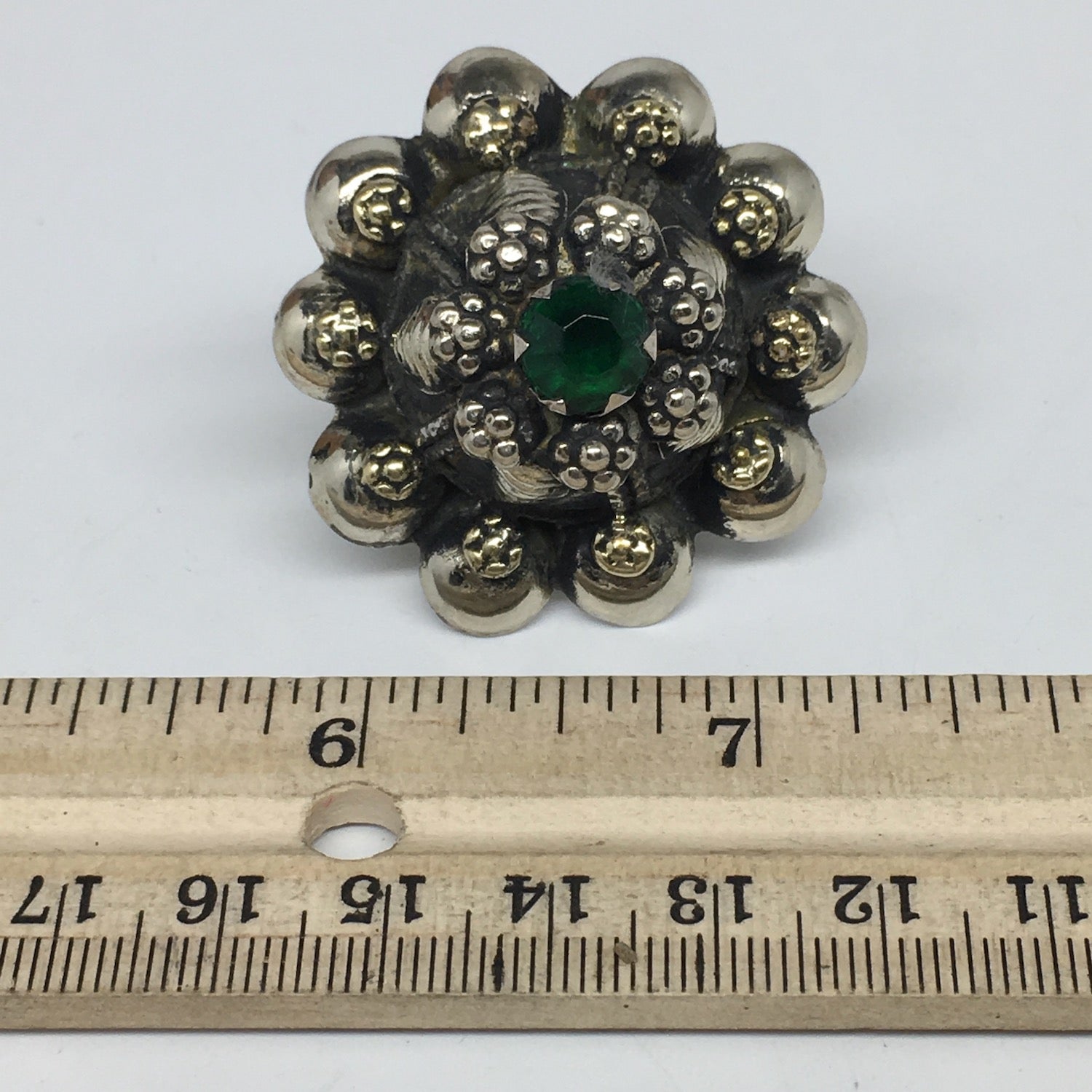 1.6"Antique Tribal Turk/Kuchi Ring Round Green Boho Glass/Plastic,8-9.5,TR196