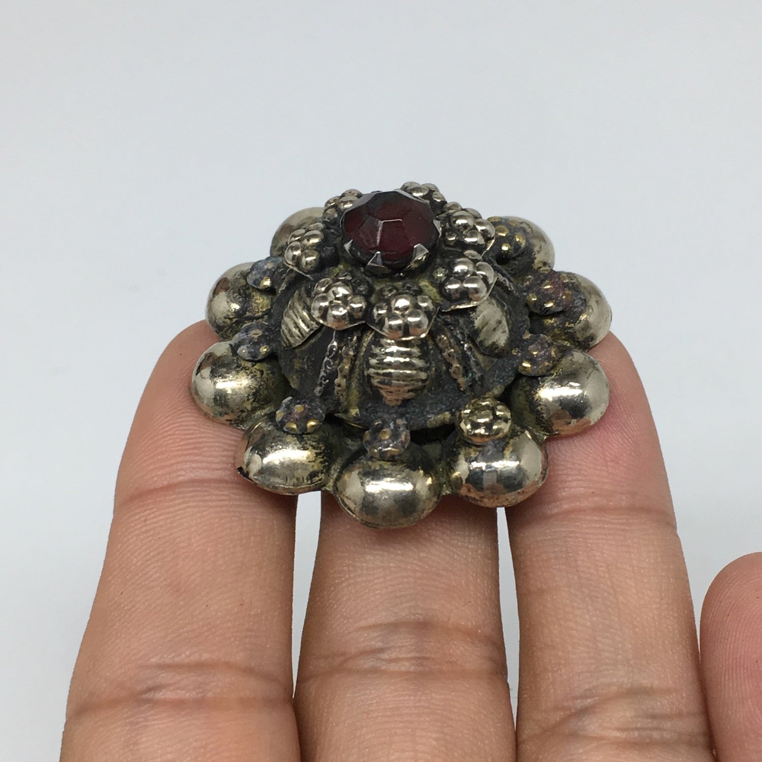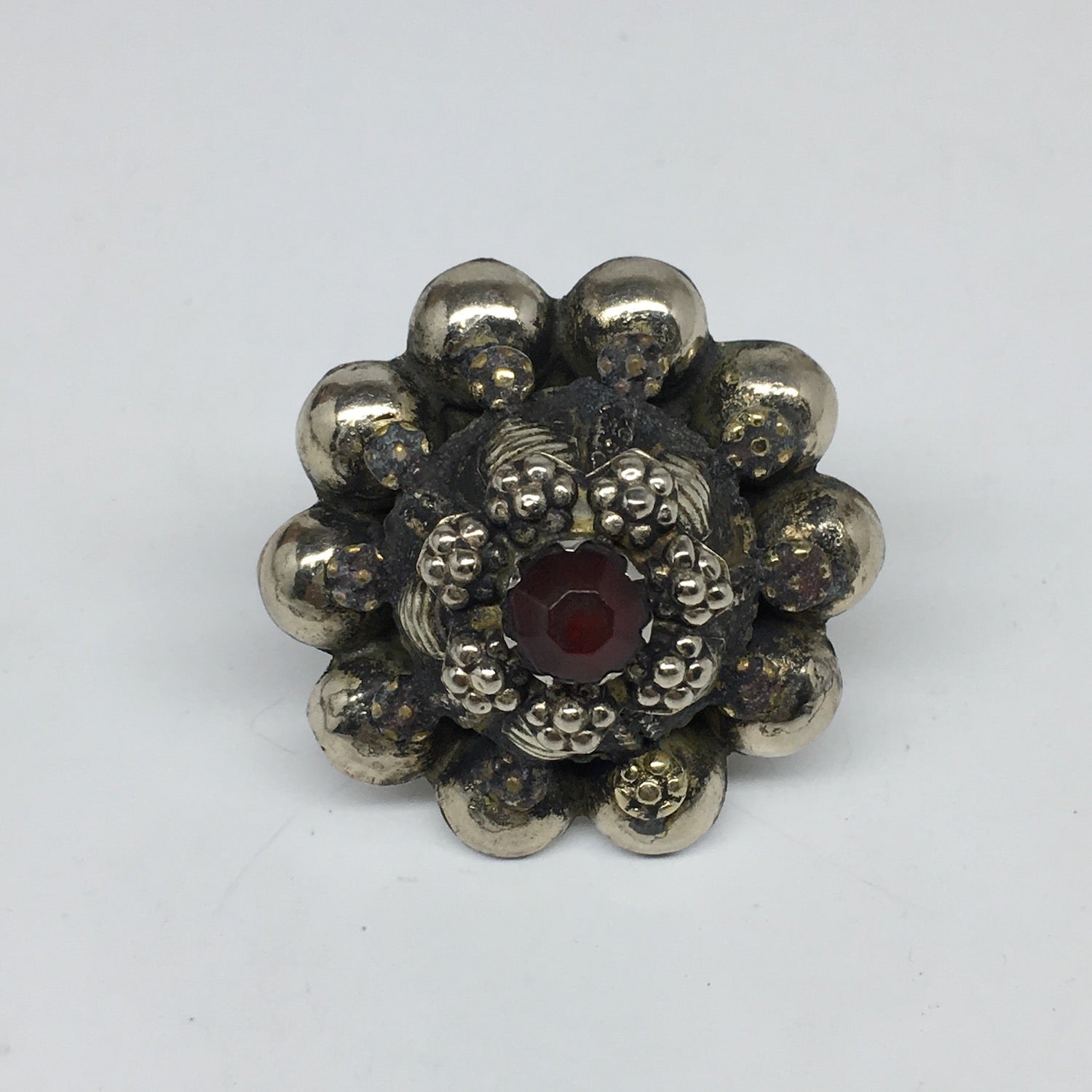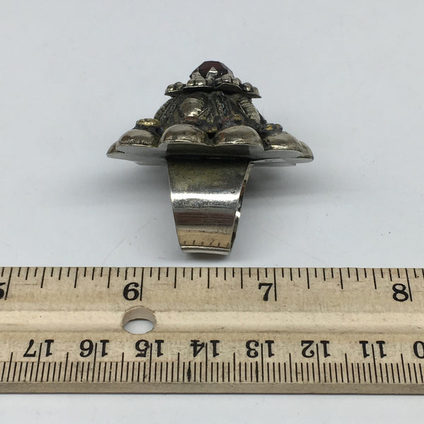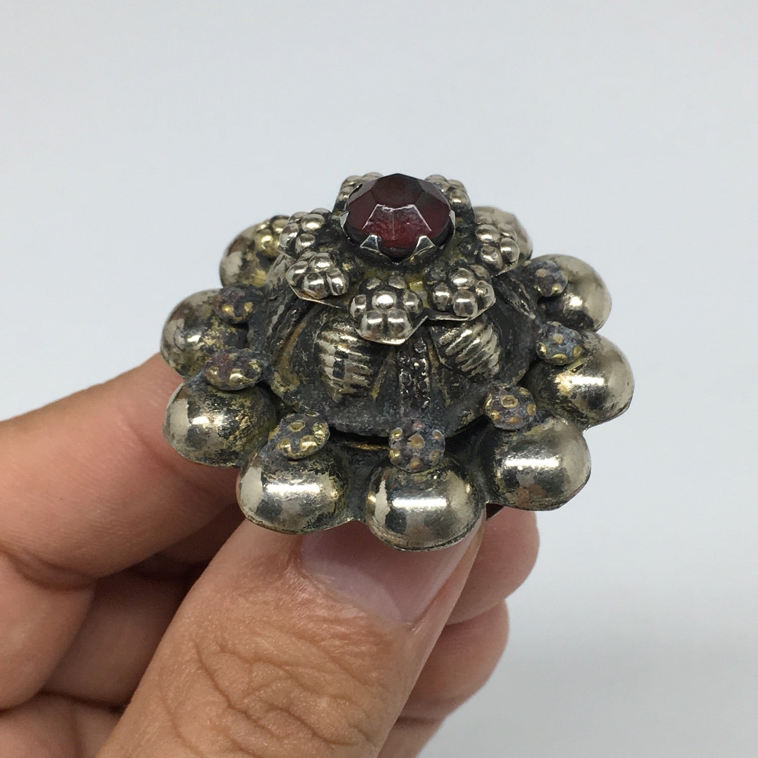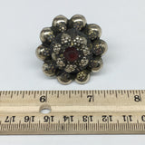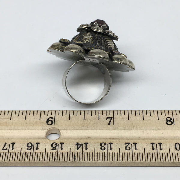 1.6"Antique Tribal Turkmen Kuchi Ring Round Red Glass Plastic Boho,8.5,TR210