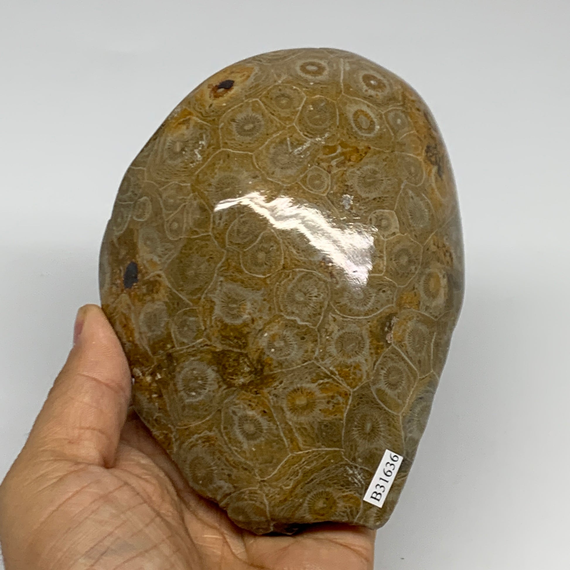 1.79 lbs, 4.9"x3.8"x 2.8", Fossilized Coral Freeform One side Polished @Morocco, B31636