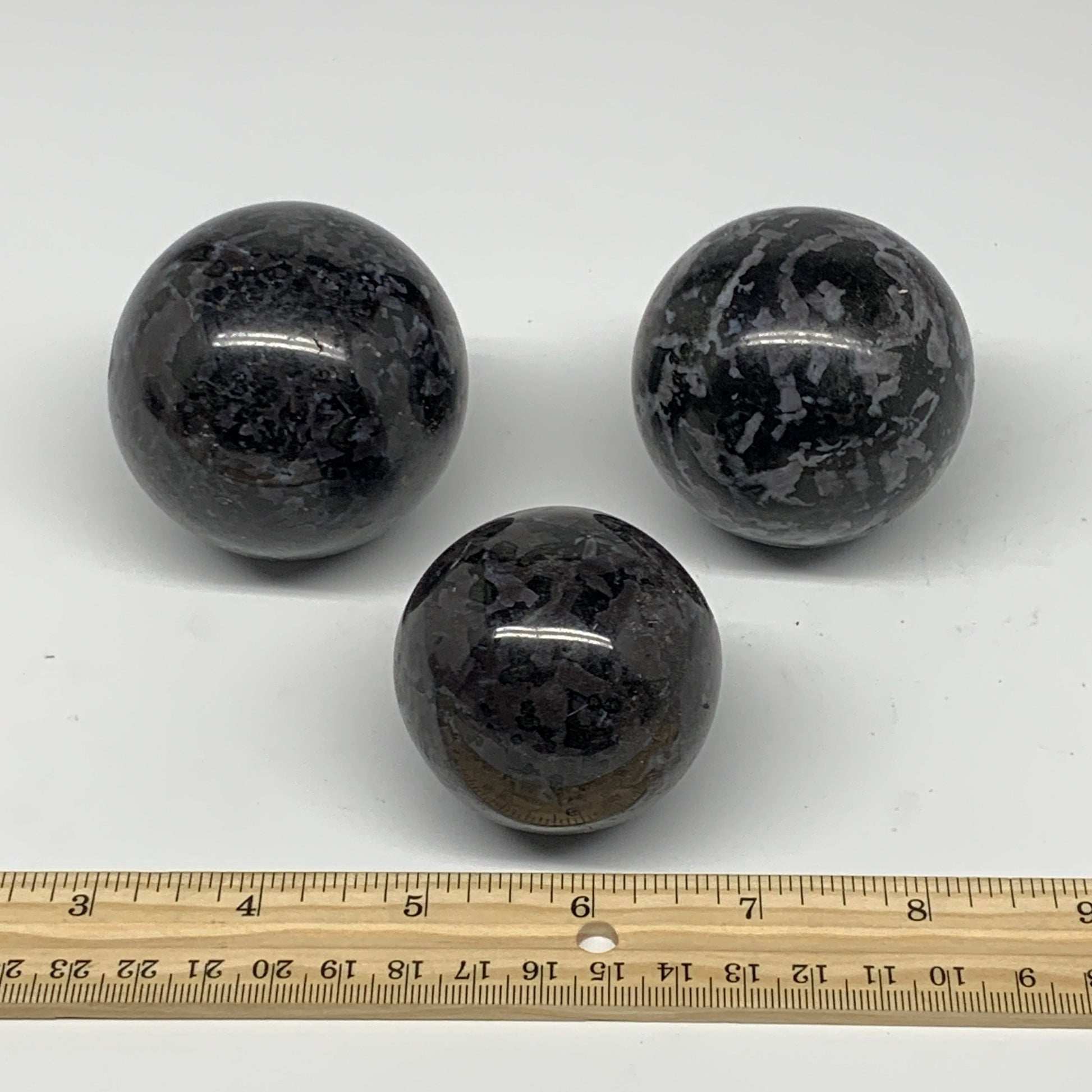 1.89 lbs, 2" - 2.4", 3pcs, Merlinite (Indigo Gabro) Spheres @Madagascar, B25449