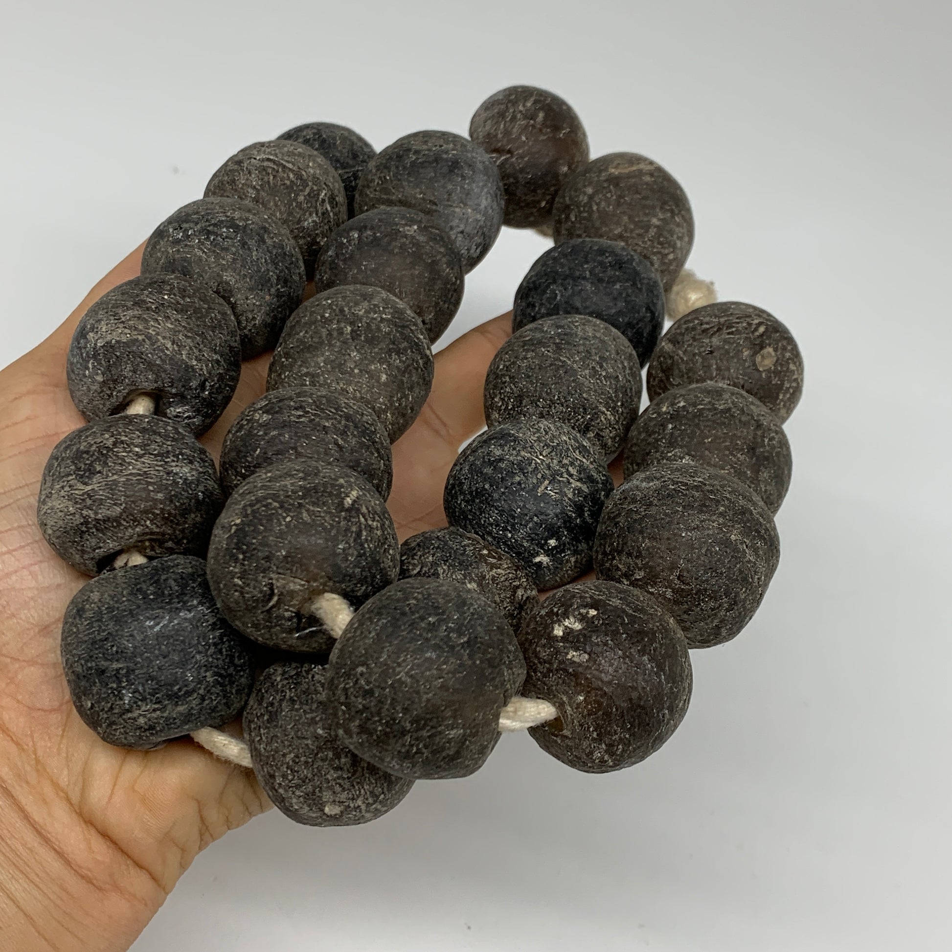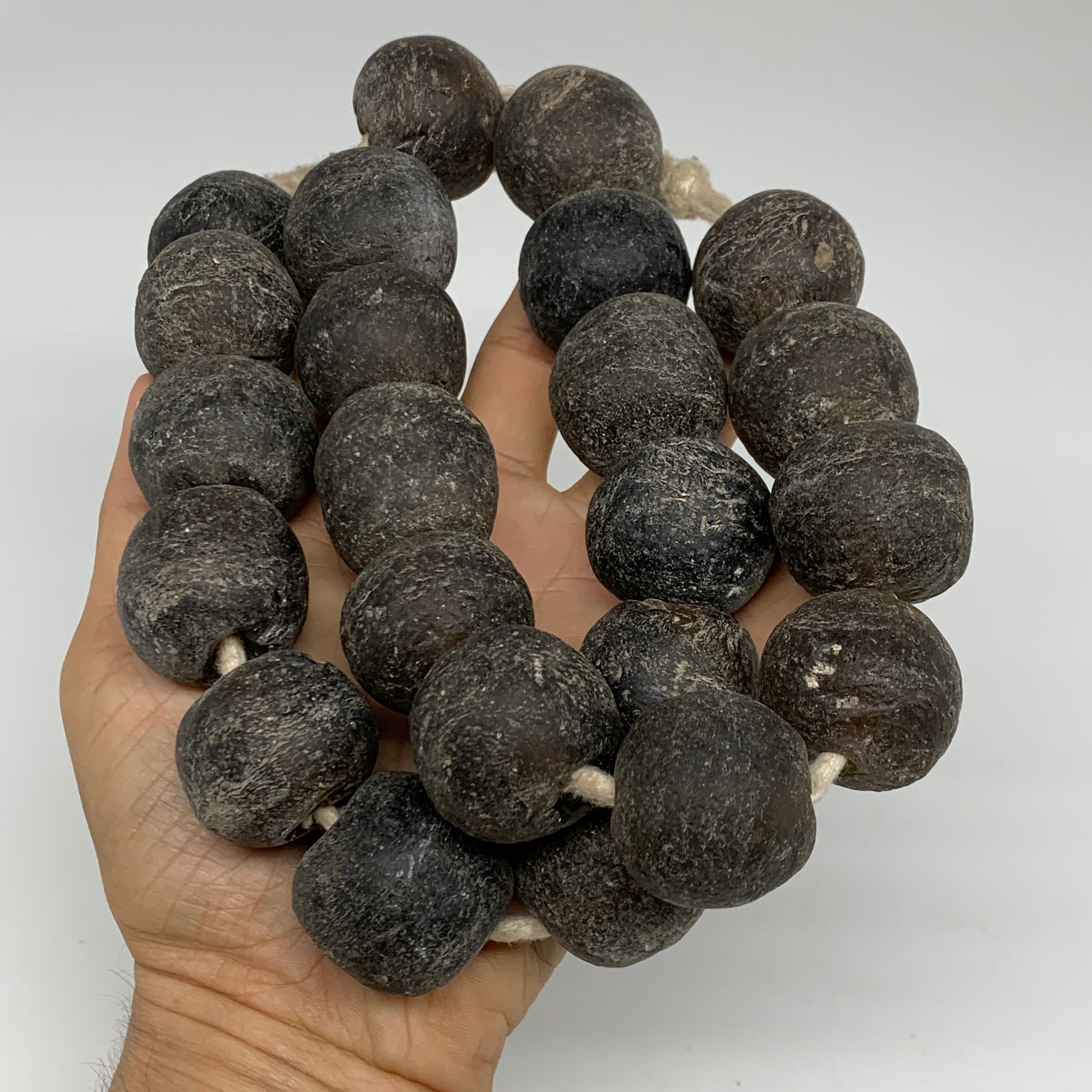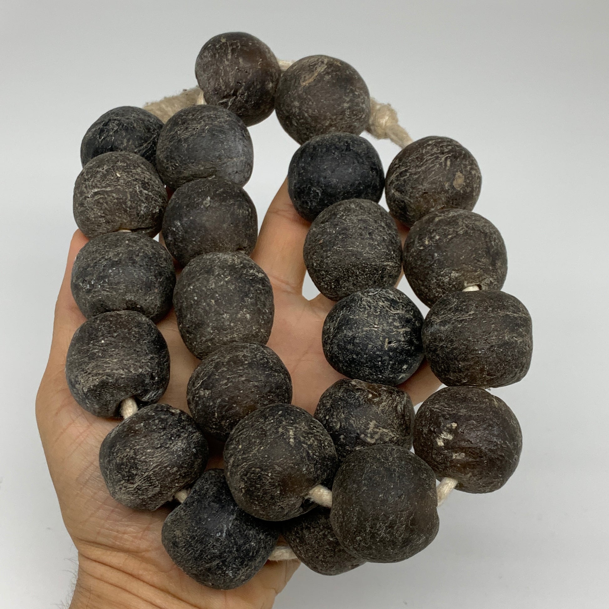 1.89 lbs, 25mm-30mm, 1 Strand, 23 beads, Green/gray Sea Glass Beads, B35696