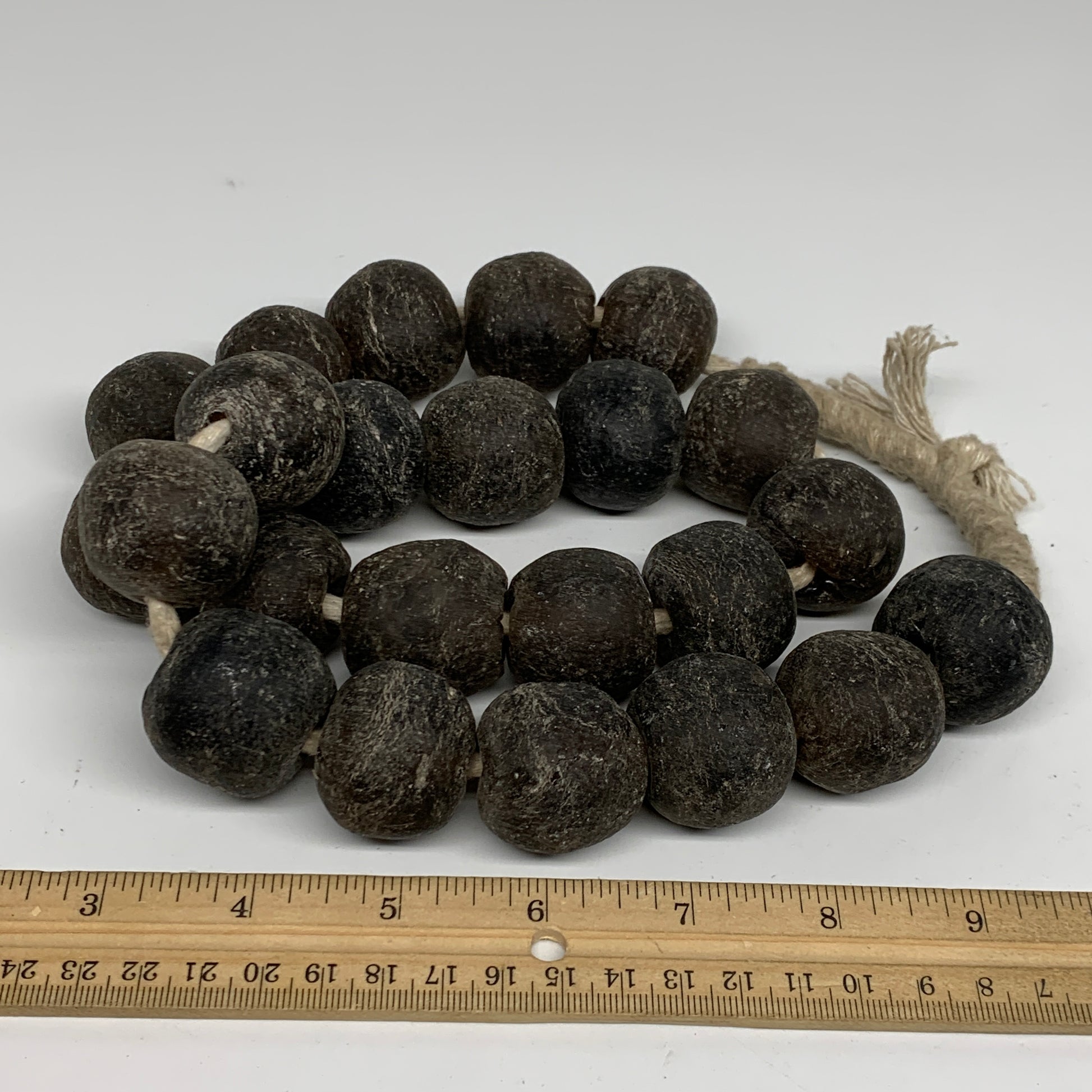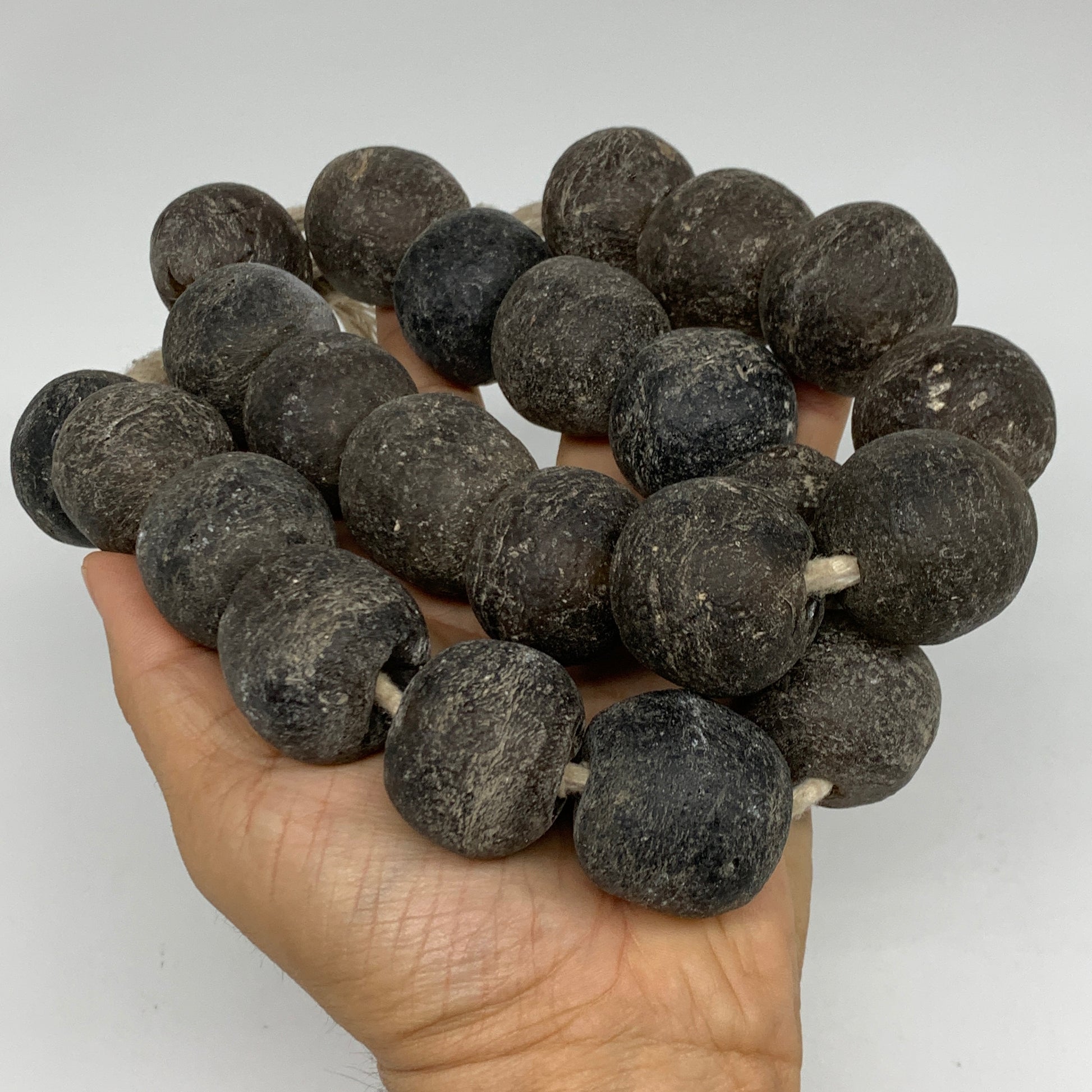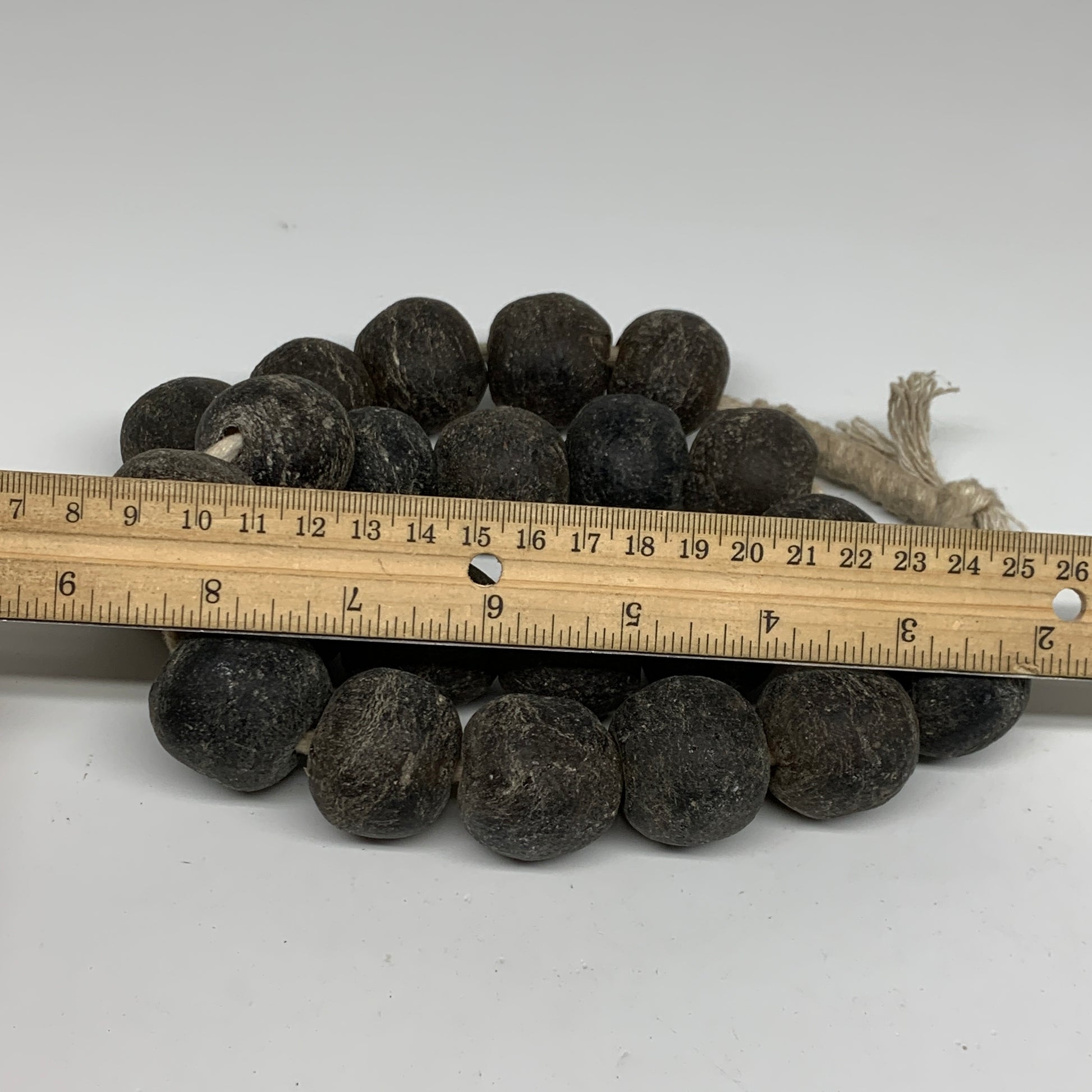1.89 lbs, 25mm-30mm, 1 Strand, 23 beads, Green/gray Sea Glass Beads, B35696