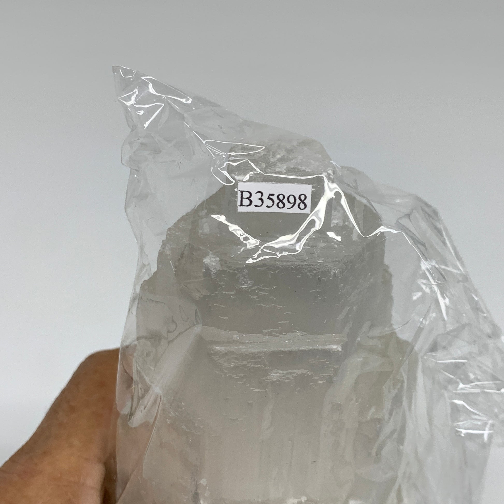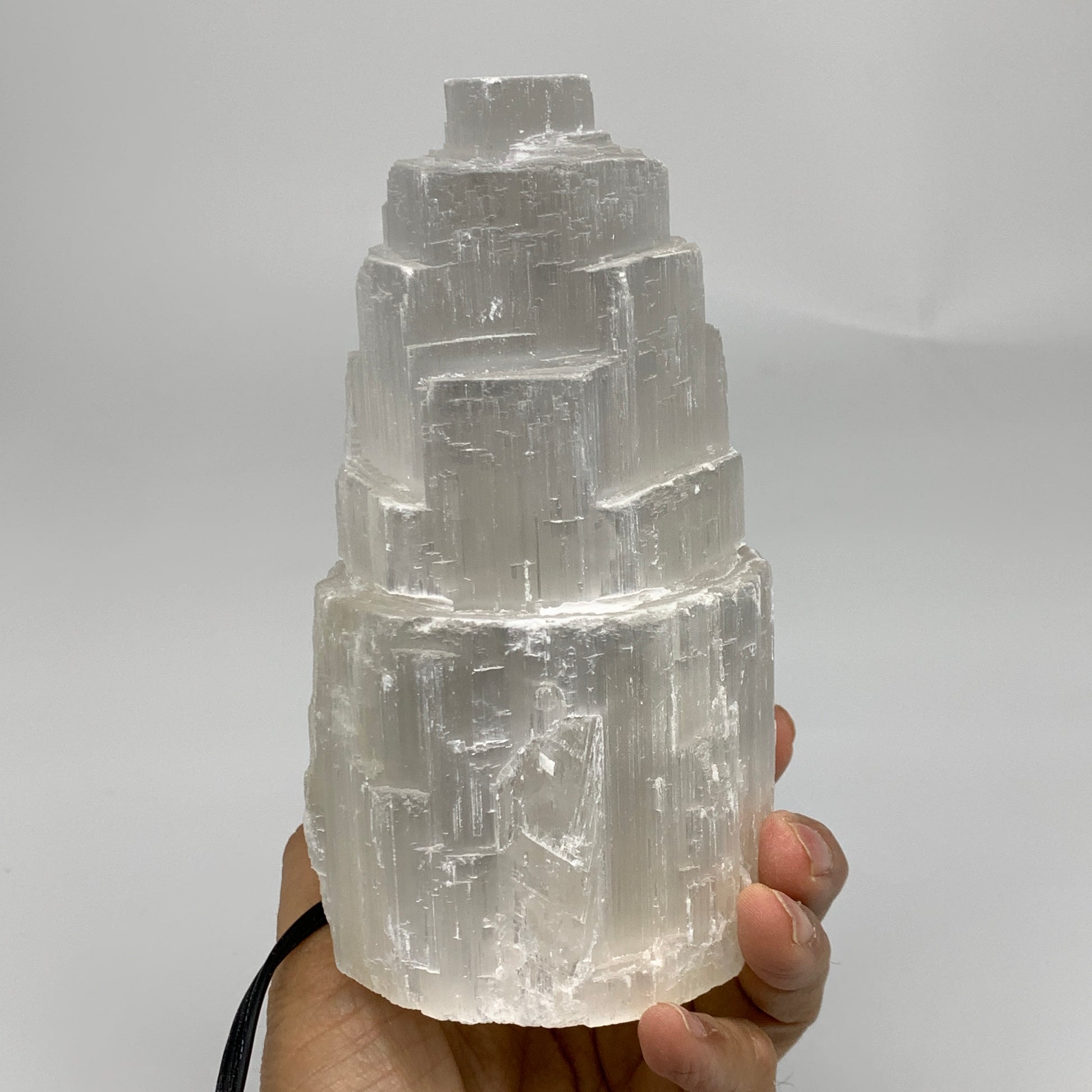 1.9 lbs, 6"x3.1", Raw Rough Selenite (Satin Spar) Lamp Tower, 6ft Chord, B35898