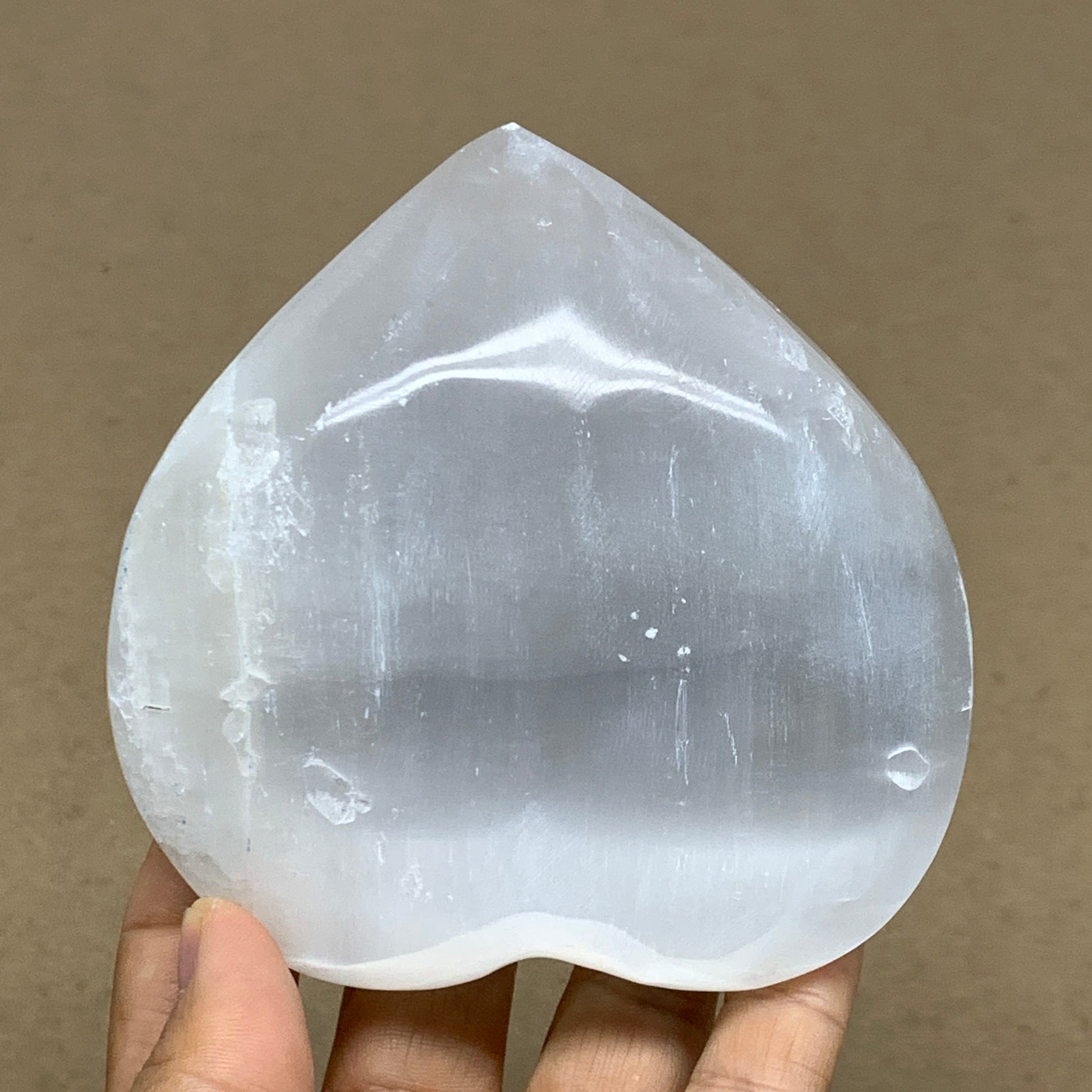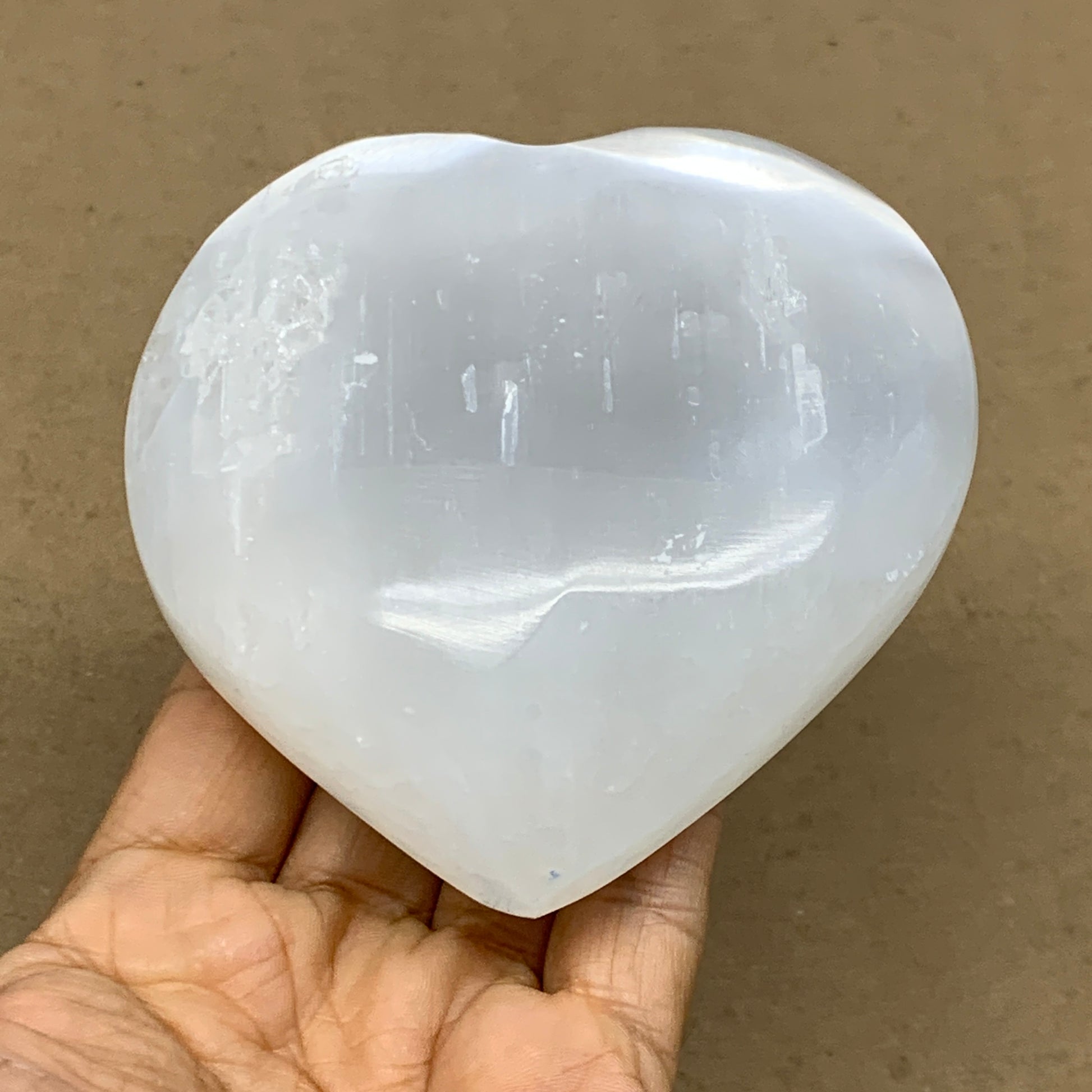 1 lbs, 4"x3.8"x1.6", Selenite Half Puffy Heart Crystals, Satin Spar, B36452