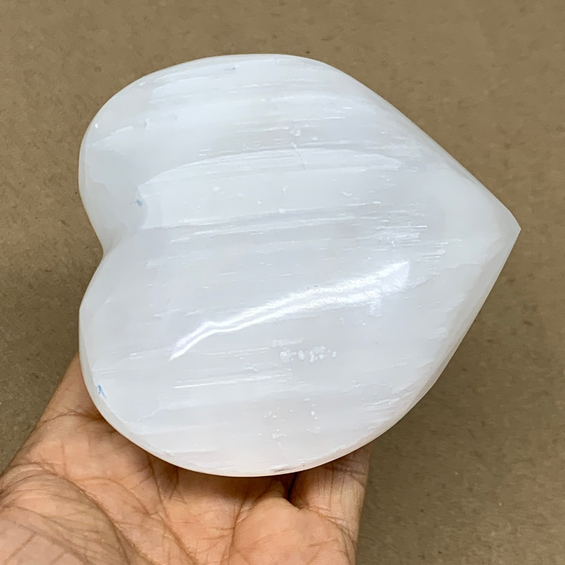 1 lbs, 4"x4.2"x1.8", Selenite Half Puffy Heart Crystals, Satin Spar, B36444