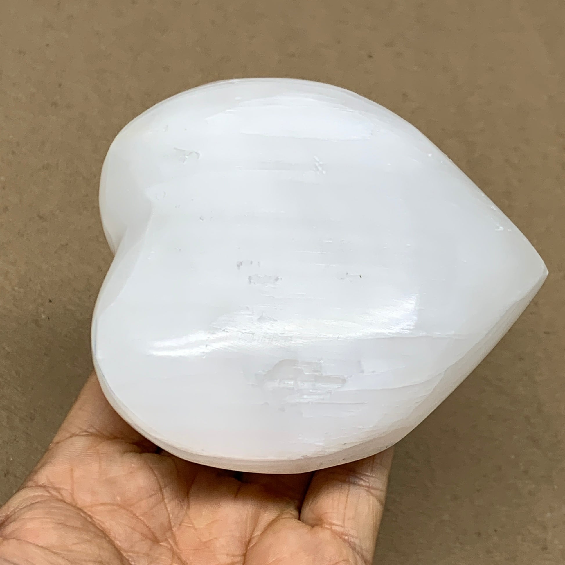 1 lbs, 4"x4"x1.6", Selenite Half Puffy Heart Crystals, Satin Spar, B36441