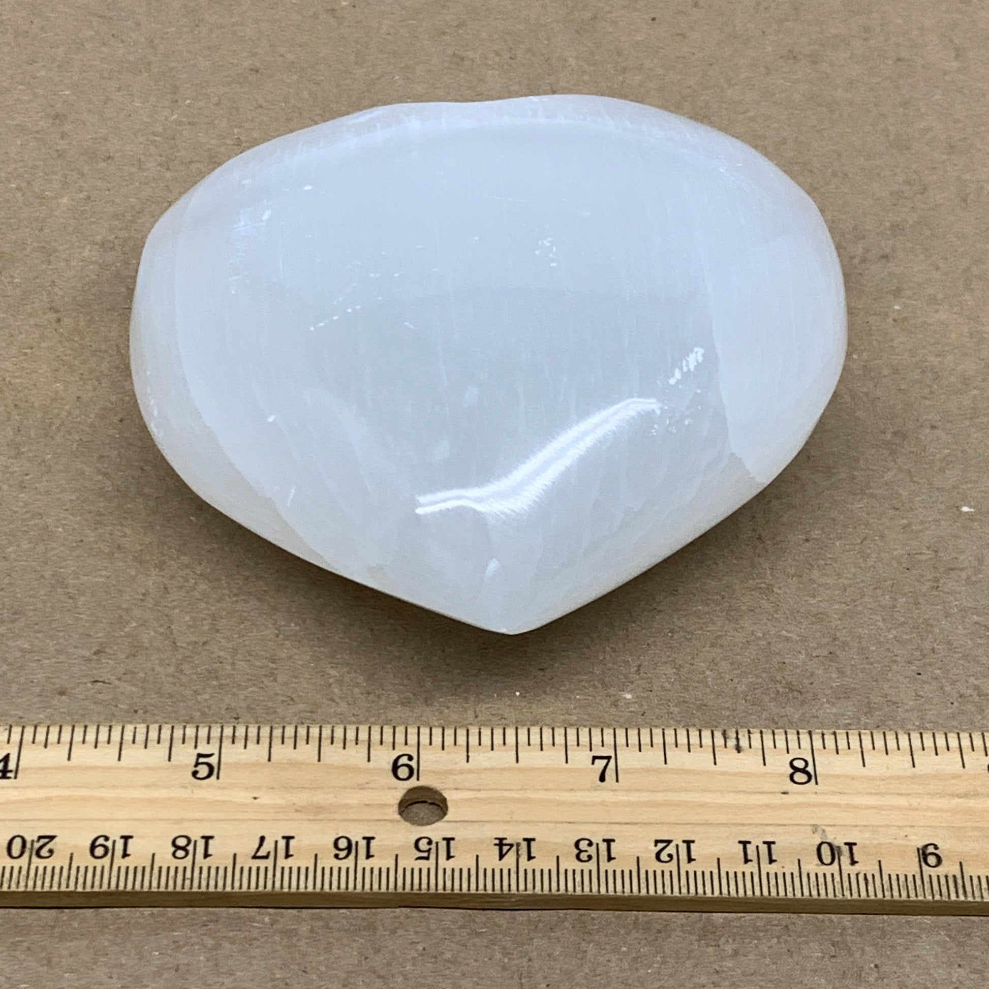 1 lbs, 4"x4"x1.6", Selenite Half Puffy Heart Crystals, Satin Spar, B36453