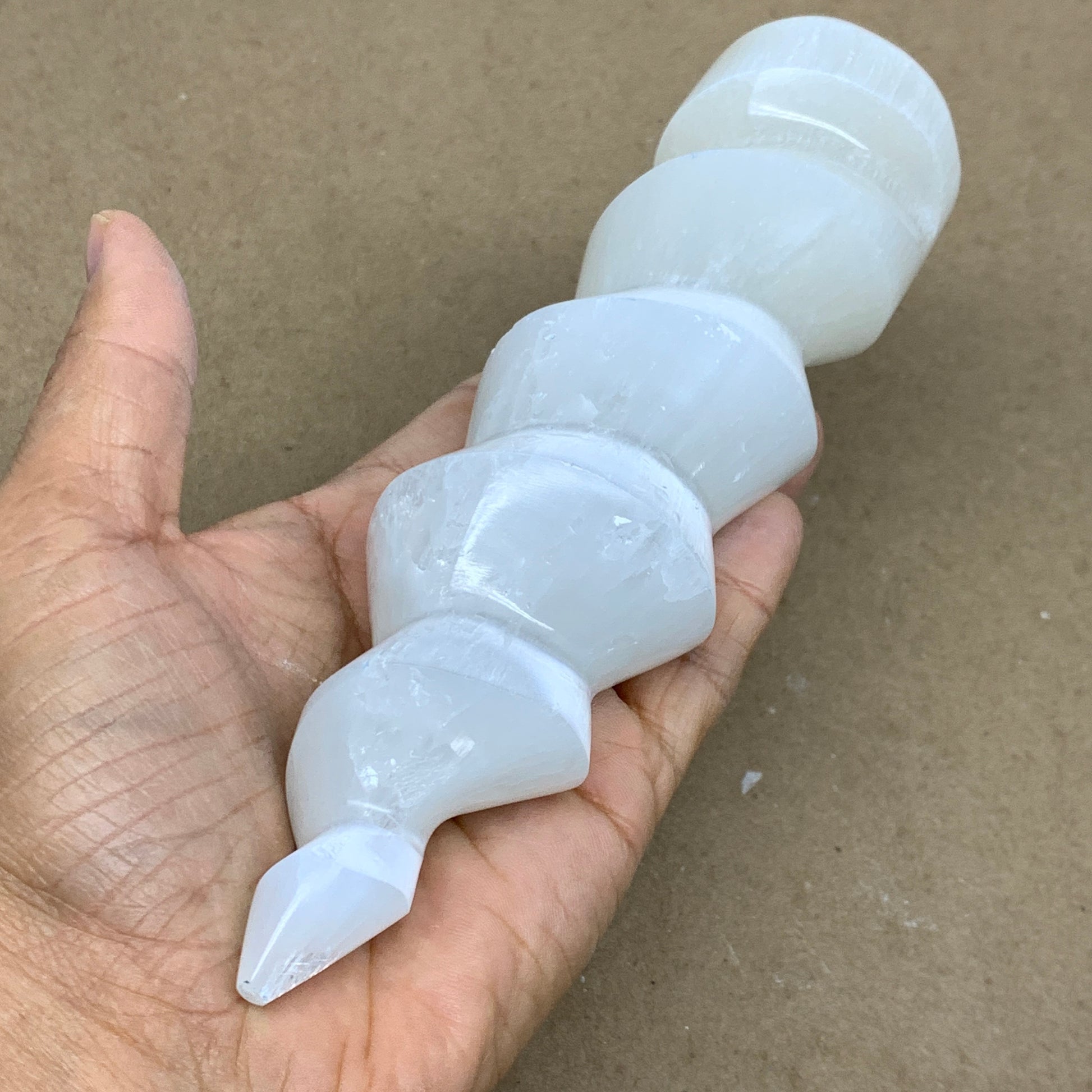 Look at the images carefully before purchasing!This is a natural product so specification varies from item to item. Due to its soft nature, scratches, chips, dents, Rustics, Crack looking lines, and fractures very common in selenites. Therefore, please expect all Selenite products to have some minor issues & imperfections.
